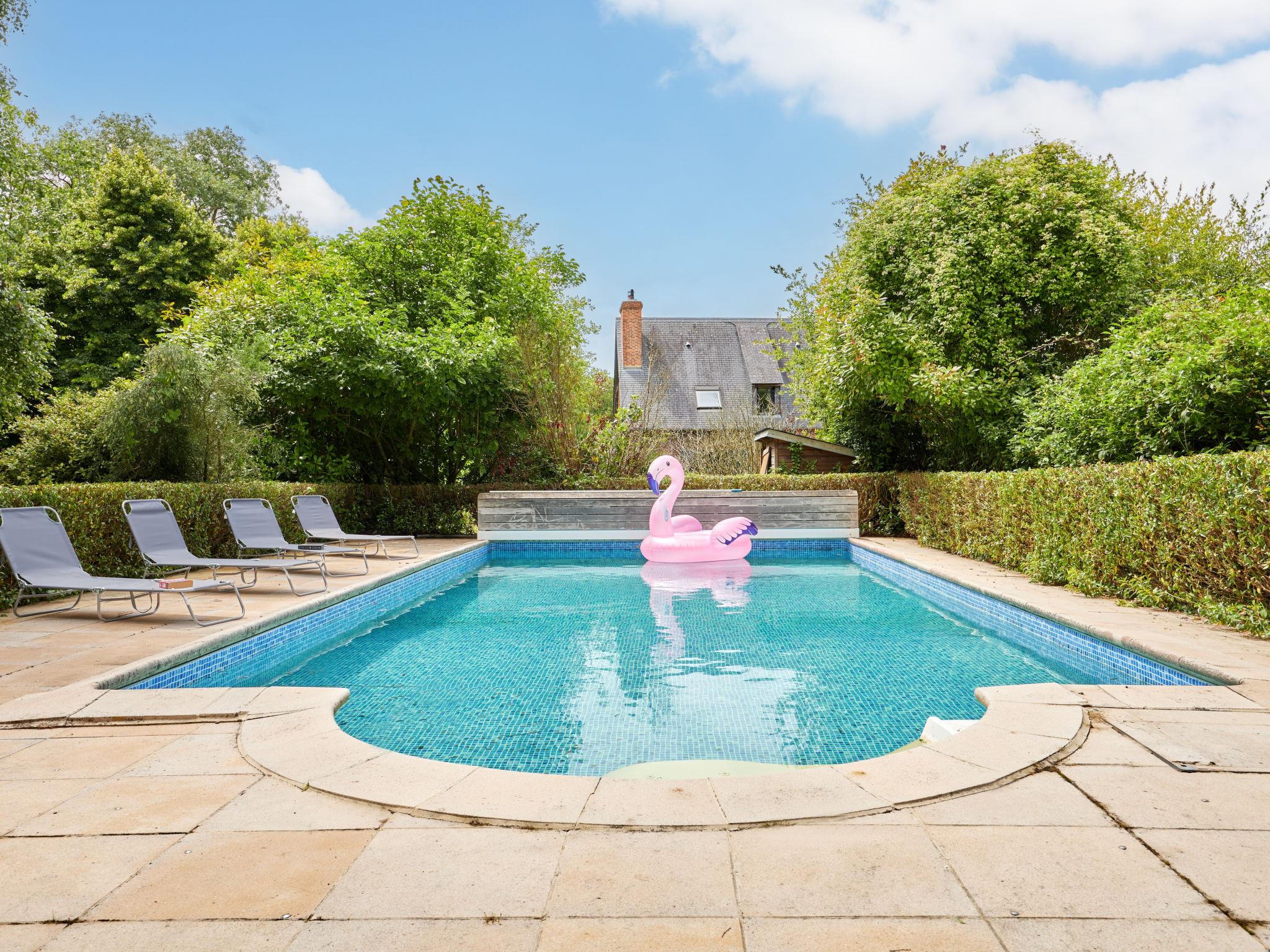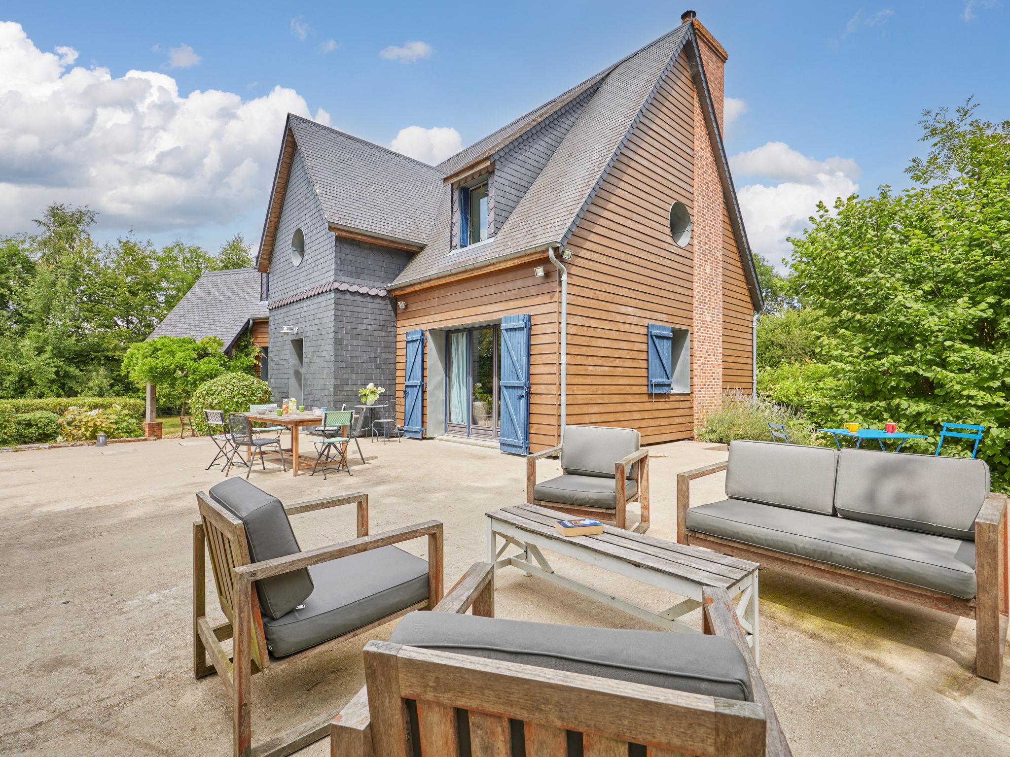 Single-family house, 2 storeys. In the resort, in a quiet position, 4 km from the sea, 4 km from the beach. Private: property 1'500 m2, swimming pool (5 x 10 m, seasonal availability: 15.Jun. - 15.Sep.) with shutter cover. Parking (for 4 cars). Shop 2 km, supermarket 3 km, restaurant 2 km, bakery 2 km, bus stop 2 km, railway station "Honfleur" 4 km. Sports harbour 4 km, golf course (18 hole) 9 km. Nearby attractions: Deauville 18 km, Pont-L'Evêque 14 km, Pont Audemer 31 km, Cabourg 45 km, Caen 65 km.