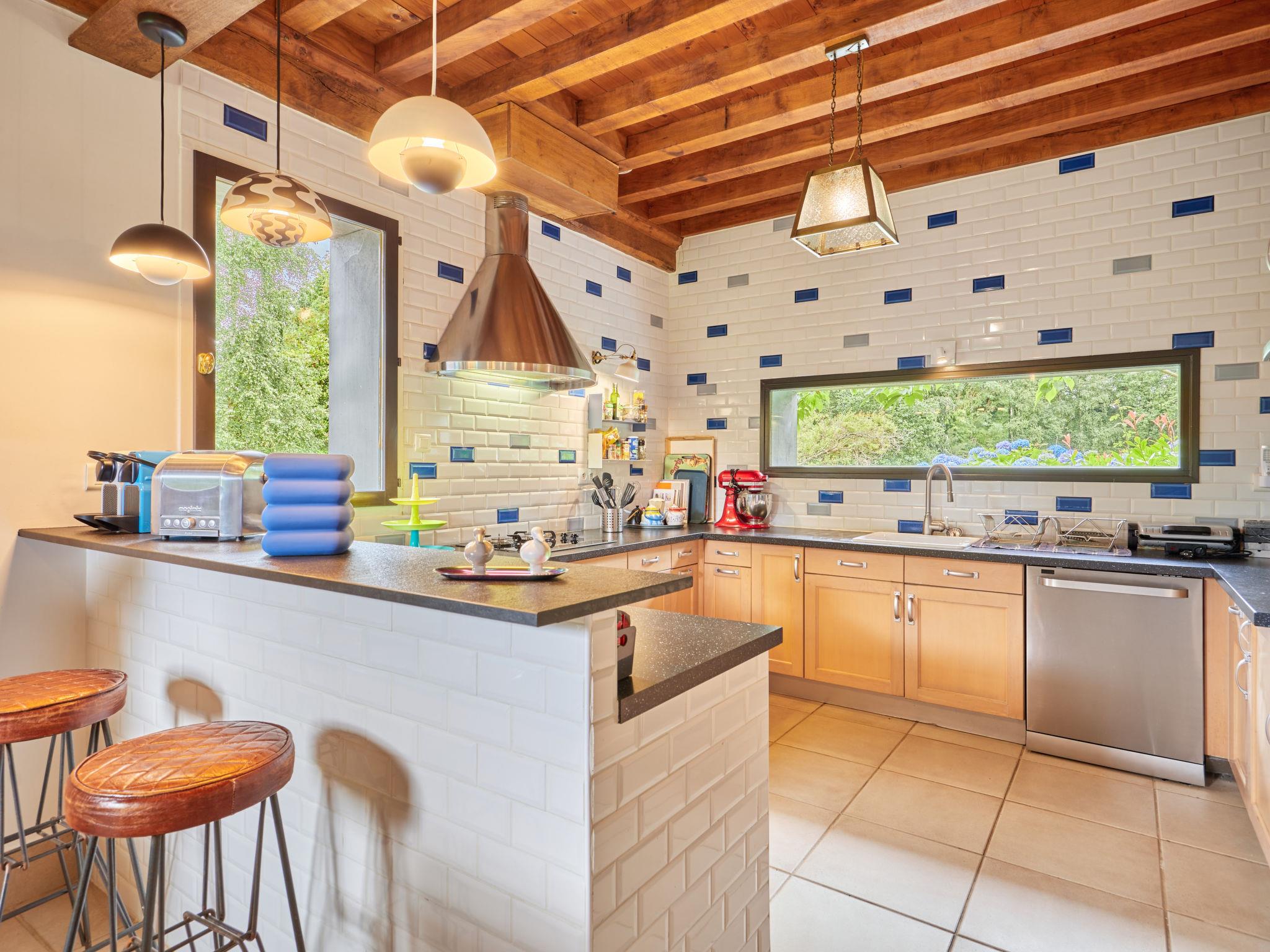 "Villa Honfleur", 6-room house 160 m2 on 3 levels. Living/dining room with panoramic window with open-hearth fireplace (only for decoration), TV (flat screen). Exit to the terrace. Open kitchen (oven, dishwasher, 2 ceramic glass hob hotplates, 2 gas rings, toaster, kettle, microwave, electric coffee machine, Capsules for coffee machine (Nespresso) extra). Electric heating. On the lower ground floor: 1 room with shower/WC. Upper floor: 3 rooms, each room with 1 french bed (160 cm, length 200 cm). 1 room with 1 french bed (160 cm, length 200 cm), shower. Sep. WC. Terrace 40 m2. Terrace furniture. Facilities: washing machine, dryer. Offer by a private individual according to Art. 155, IV of CGI.