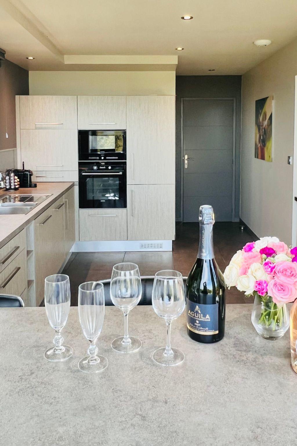 After you have arrived and parked your car in front of the house in the private car park. Enter into a beautiful entrance area with a large cloakroom - through the glass front you can see your Jacuzzi and steam bath in the SPA area flashing. Continue either by stairs; or comfortably - by lift; to the living area on the first floor. The sea view from here is simply marvellous - no matter where you are in the living room / or the kitchen - the sea is at your feet! Incidentally, the most beautiful fine sandy beach (and the dunes of Keremma) is not far from the house. The living area is very open and spacious - a large well-equipped kitchen (of course, as already mentioned, with the great sea view) - is connected to the dining area / dining table for 6 people and the living room area with sofas. And opposite the sea view is a large garden (fully fenced) - and if you open the large sliding glass doors you are in front of your sun loungers, the garden furniture (incl. garden table) and your "Weber" barbecue. Facing the sea again, there is also a small sea view bar in the kitchen next to the dining table with its own sea view terrace access. The large master bedroom with its own garden access and en-suite bathroom (shower) is also located on this floor. Each bedroom has a small office corner (or practical as a make-up corner) its own TV - with international satellite programmes - the wardrobe should not be missing, this master bedroom has its own bathroom with shower and private toilet. On the first floor there is also a spacious guest WC (wheelchair accessible).