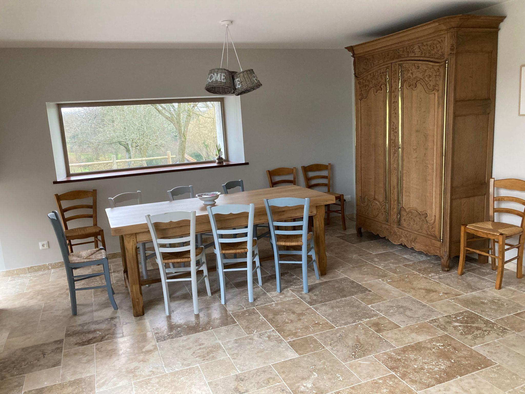 Surrounded by greenery, La Maison de Léontine is an address remarkable for its comfort and the quality of its materials. Everything has been carefully thought out for your relaxation and your holidays. You can enjoy your meals outside, with a choice of the XXL picnic table or the covered courtyard. In terms of leisure activities, the children can let off steam on the trampoline and enjoy a lively game of football on the lovely green space available. The gîte is also a great place to relax, with spacious bedrooms and a net hanging over the living room, the perfect place for a nap or a spot of reading! The gîte is the starting point for a number of beautiful walks and mountain bike trails, offering stunning views over the Normandy bocage and the Vire valley.