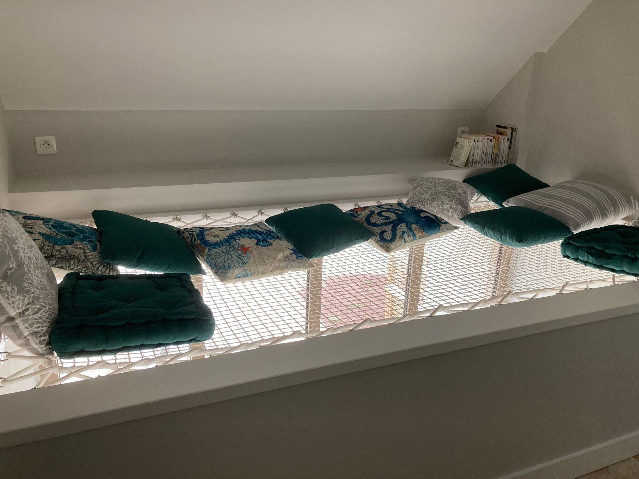 Detached house. Entrance hall. Shower room. WC. Bedroom 1 (bed 140x190). Living room with open-plan kitchen (central island, oven, fridge with freezer, dishwasher, microwave). Sitting room (TV, fibre internet, connected speaker). Upstairs (stairs from kitchen) bedroom 2 (bed 140x190), bedroom 3 (bed 140x190 + 2 beds 90x190), bathroom with shower and wc. Upstairs (stairs from living room) bedroom 4 (bed 140x190) and shower room with wc. Baby facilities. Central heating included. Bed linen provided. Towels not provided. Cleaning service extra. Unenclosed private grounds. Terrace. Picnic table. Awning with garden furniture. Barbecue. Deckchairs. Trampoline. Petanque pitch. Football goals for children. Laundry room (washing machine, tumble dryer). Car park.