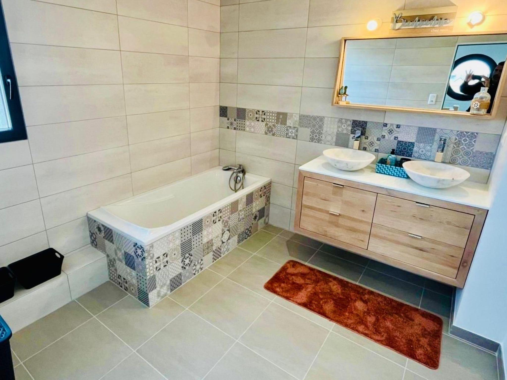 Inside, the house shines through with a layout designed with your comfort in mind. The kitchen, equipped with the latest appliances, is designed to facilitate your culinary preparations, with a central island as its centrepiece. The elegantly furnished living room, with its soft sofas and friendly atmosphere, is the ideal cocoon for those special moments of relaxation. The bedrooms, meanwhile, are peaceful retreats offering comfortable beds and soothing decor, promising a restful night's sleep.