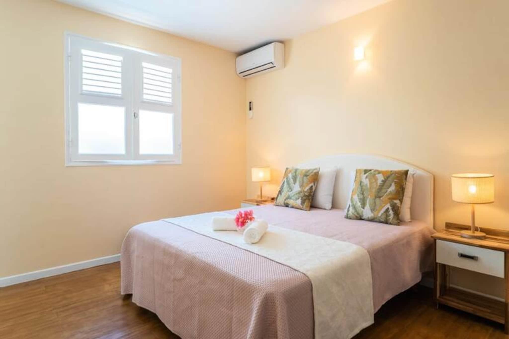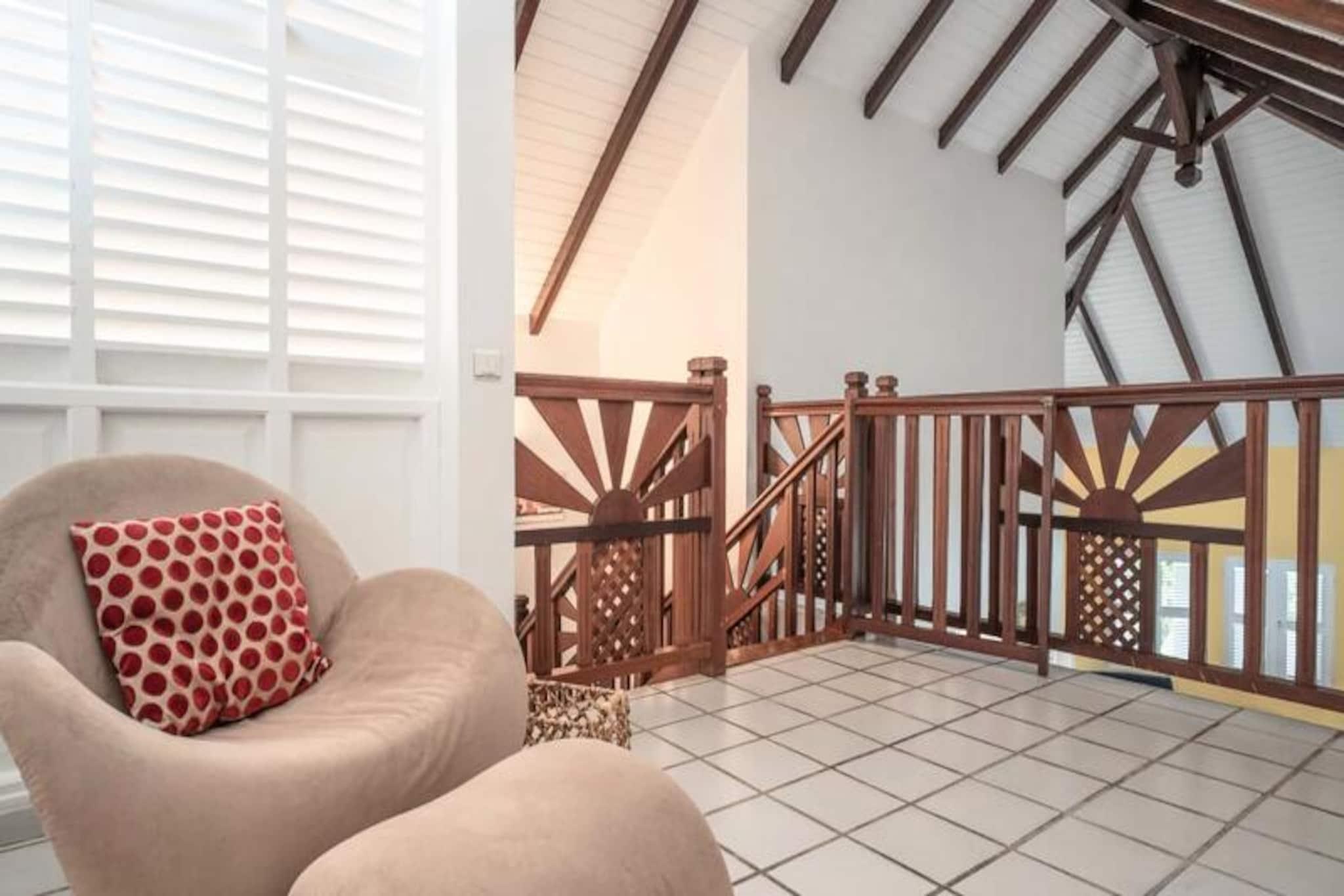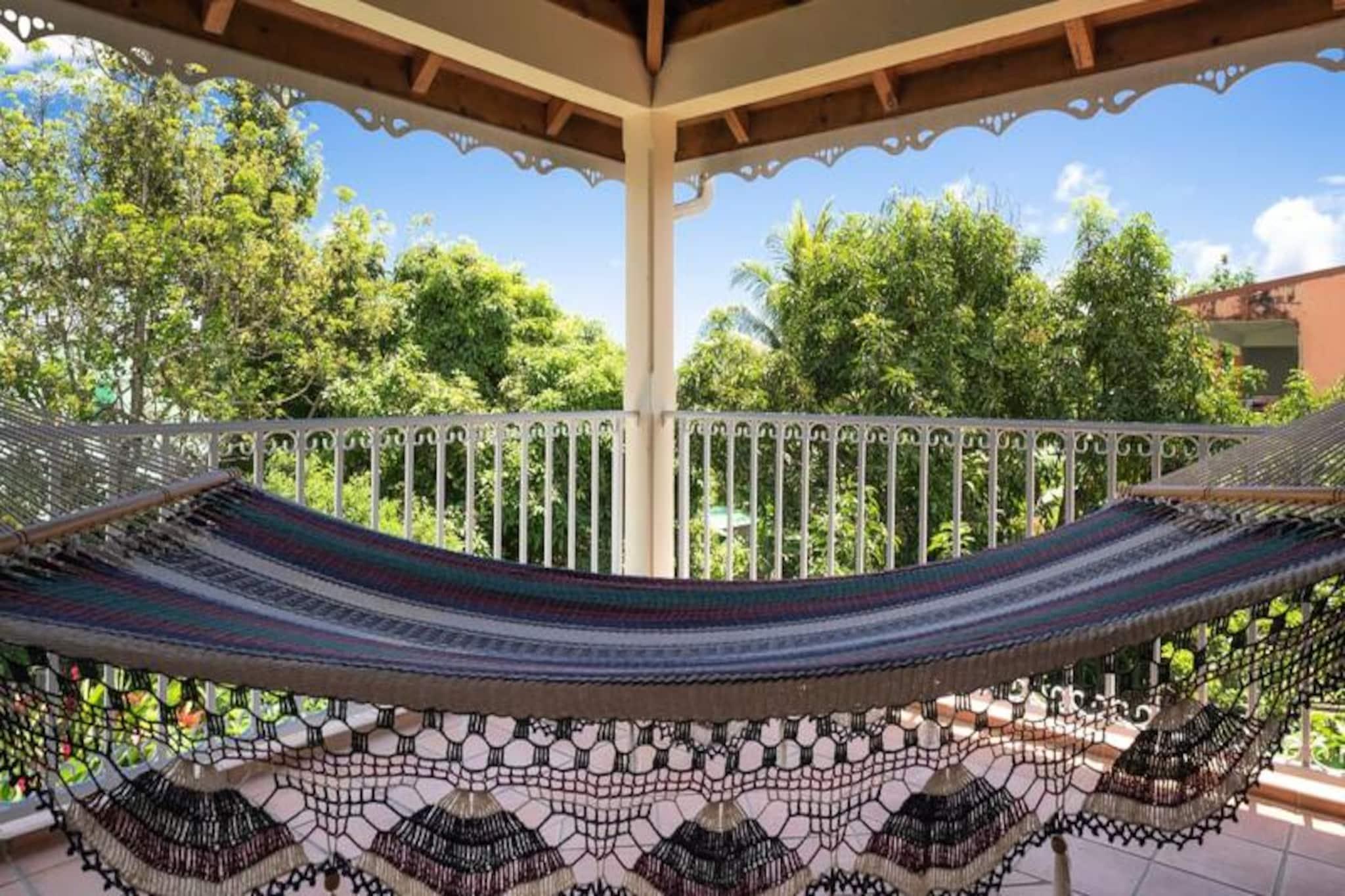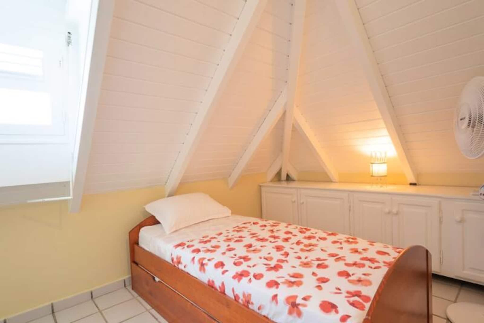 Denne rummelige 3-stjernede villa (250m²) har plads til op til 7 personer. Det tilbyder 3 soveværelser med aircondition (en master suite med 160 cm seng og badeværelse, to soveværelser med 140 cm senge, hvoraf det ene har et ventileret soveområde), en privat swimmingpool og en udendørs carbet. Alle værelser er udstyret med myggenet. Fester er ikke tilladt. Villaen ligger i Goyave (Basse-Terre), 10 minutter fra strandene (Roseau-stranden) og tæt på naturområder (Bras de Fort-vandfaldet, Moreau-vandfaldet). Byens centrum (bagerier, markeder) ligger 5 minutter væk i bil, og havnen i Trois-Rivières (udflugter til øerne) er 30 minutter væk. Villaen har et fuldt udstyret køkken, en terrasse med grill og to badeværelser. Internetadgang, aircondition (undtagen i soveværelset), sengelinned og håndklæder er inkluderet. Der er et vandreservesystem. Rengøring er inkluderet. En velkomstcocktail og dedikeret concierge er til rådighed. Der kræves et depositum.