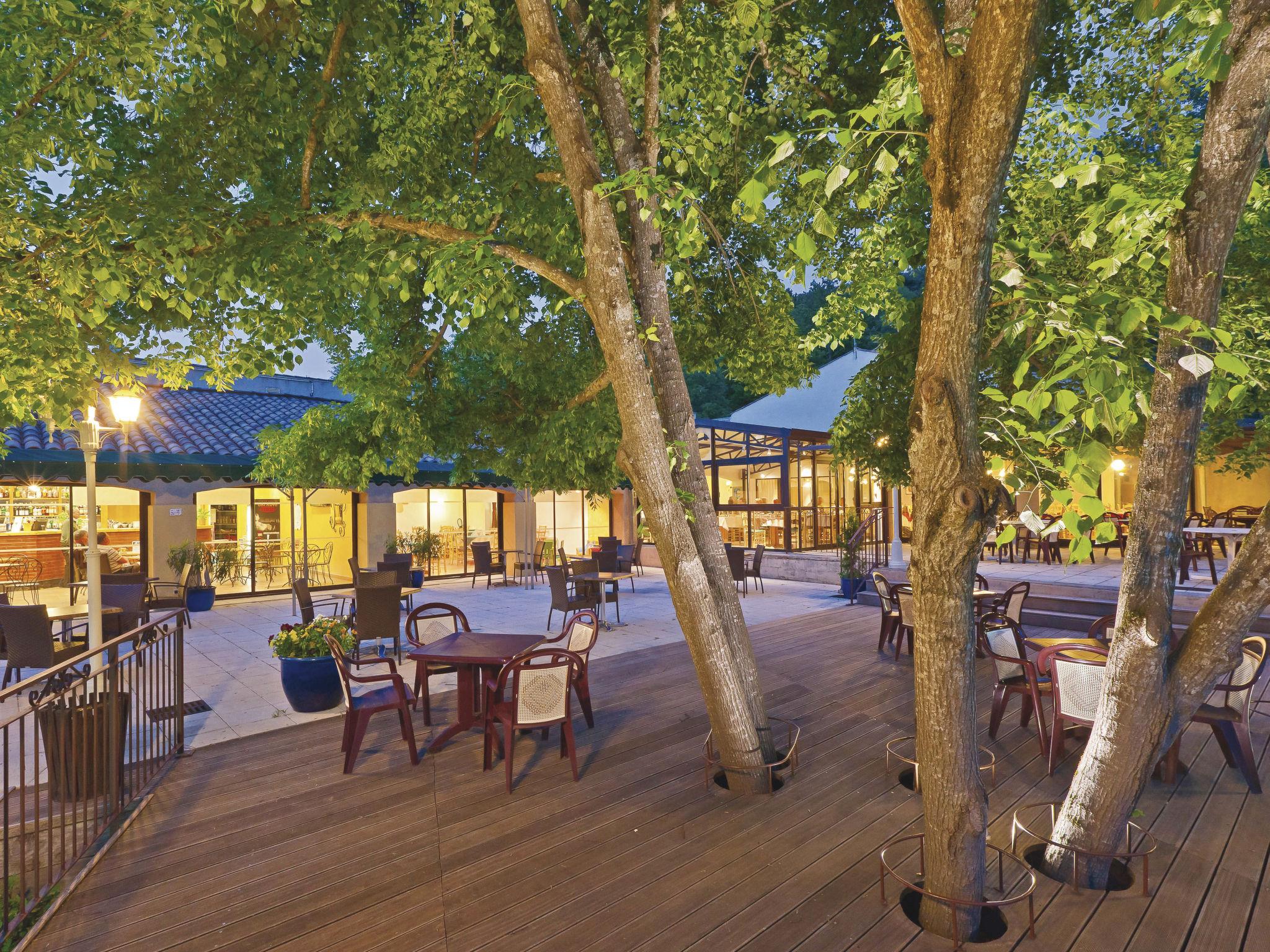 Child friendly resort "Domaine de Château Laval", surrounded by trees and meadows. 180 apartments in the residence. 2 km from the centre of Gréoux-les-Bains, 17 km from the centre of Manosque, 40 km from the centre of Forcalquier, 6 km from the lake. For shared use: property 30 ha with trees, meadow, pond, swimming pool (20 x 8 m, depth 70 - 170 cm, seasonal availability: 02.Apr. - 29.Oct.). Tennis, boccia, beach volleyball, terrace, children's playground. In the complex: reception, restaurant, bar, bistro, WiFi, sauna, massage (extra). Steam room, washing machine, tumble dryer (for shared use, extra), bicycle rental. Breakfast full board half board possible (extra). 250 m footpath to the house. Parking (limited number of spaces) at 250 m. Shop 2 km, lake d'Esparron 6 km. Riding stable 1 km. Please note: entertainment in the season. Suitable for families, childminding (extra). The photograph shows a typical example. The holiday properties may differ in living space, floorplan, equipment and furnishing. Heated indoor swimming pool (approx. 50 m², 1.50 m deep). Wifi only at the reception.
