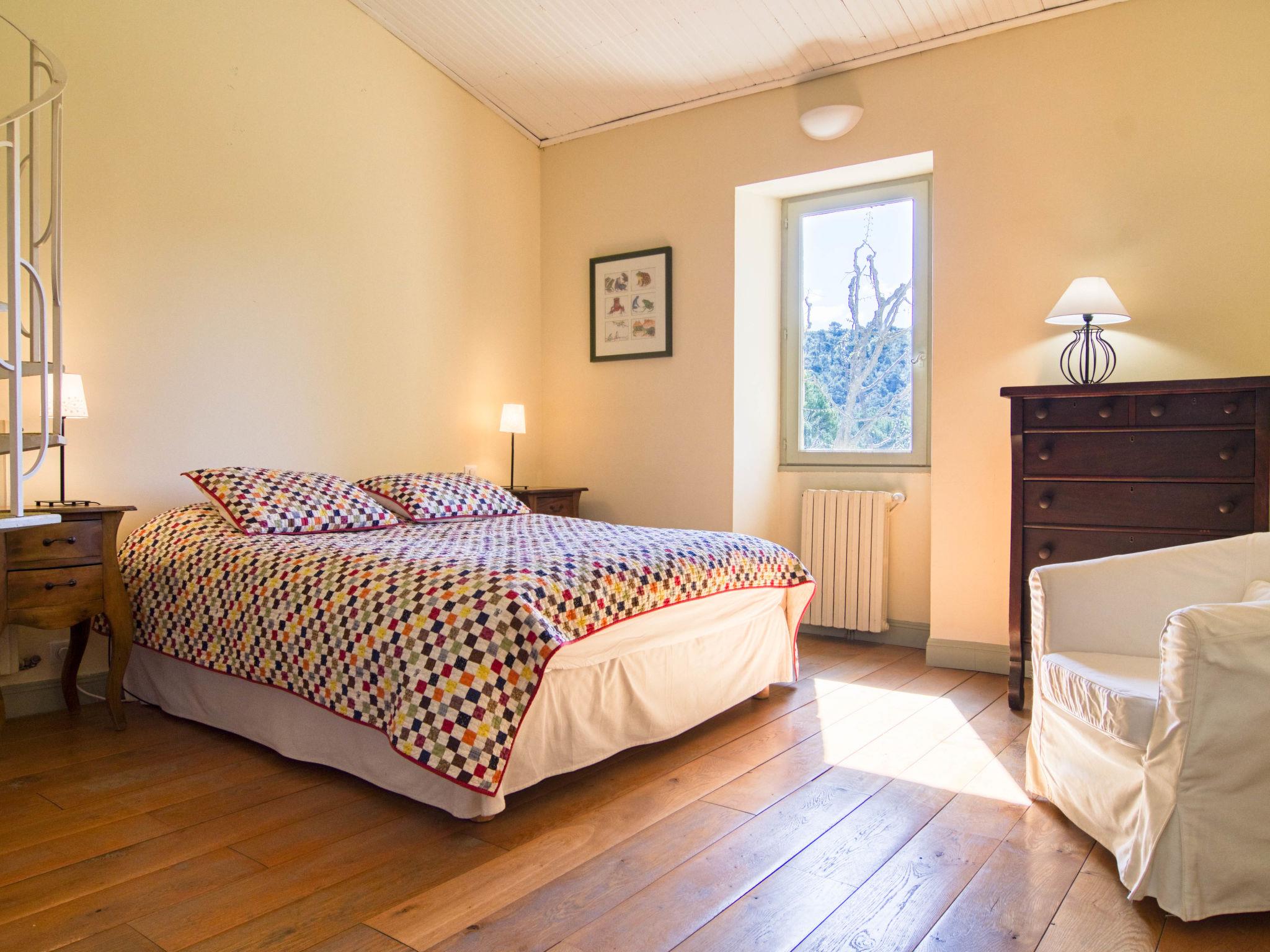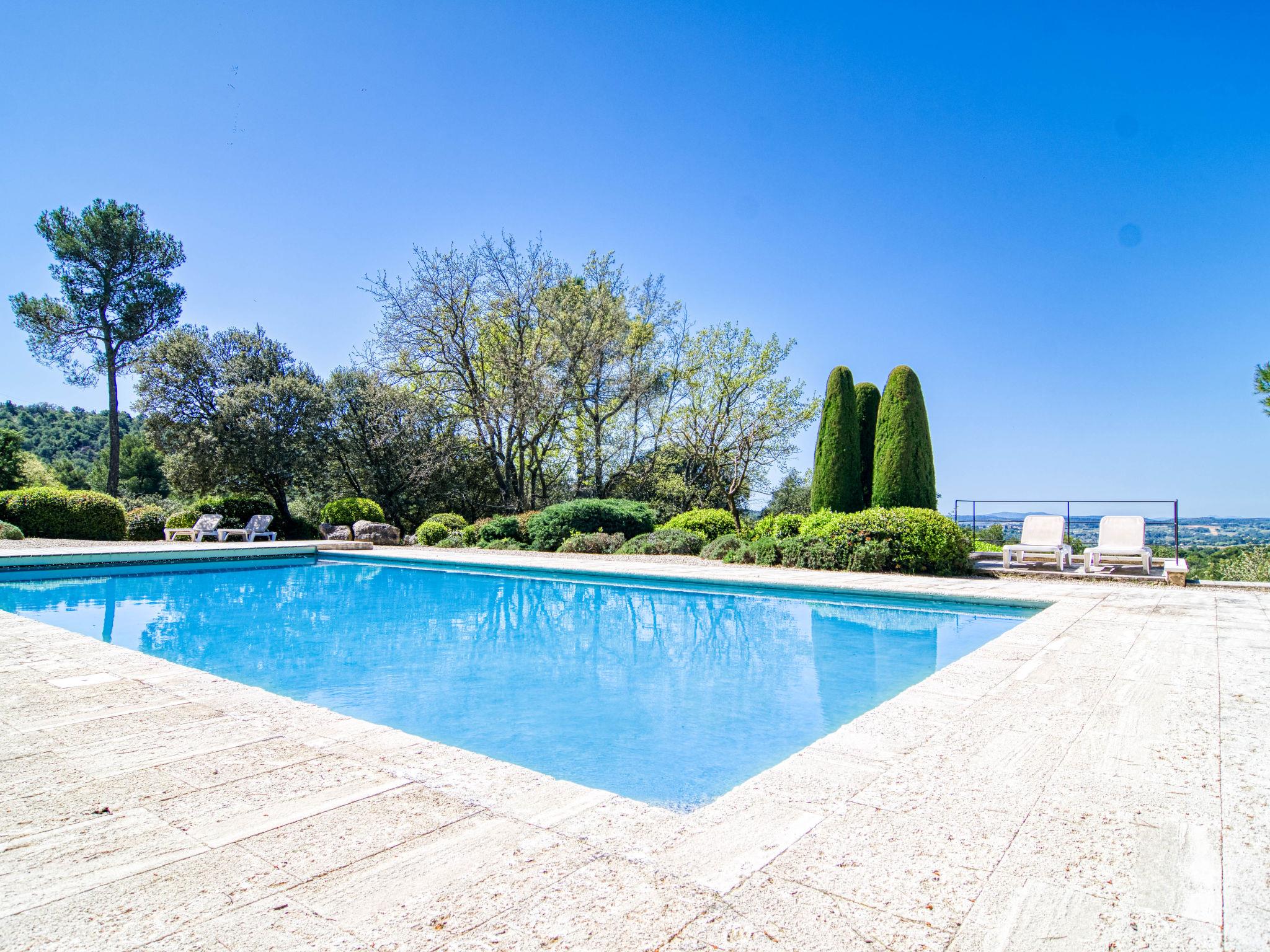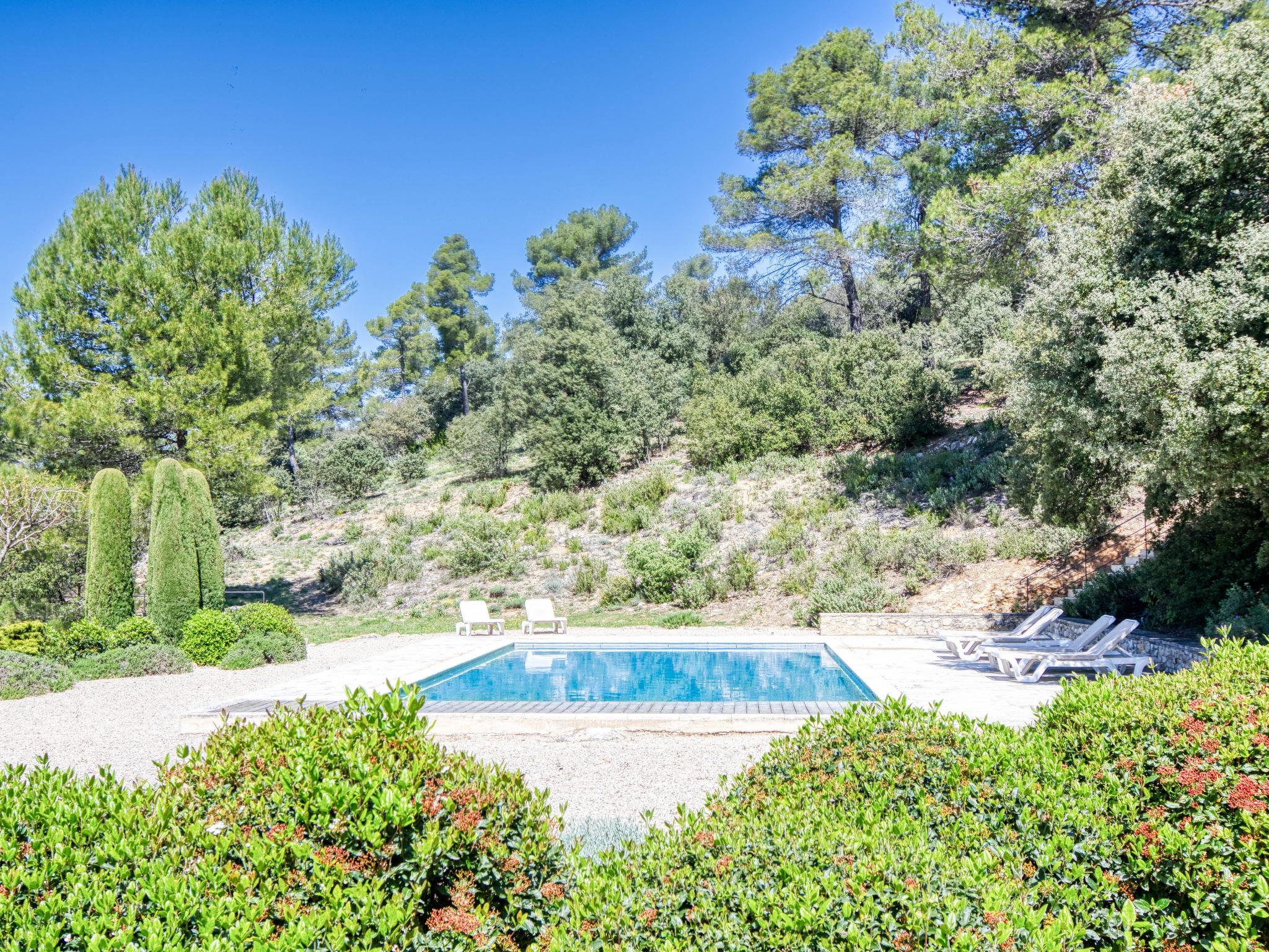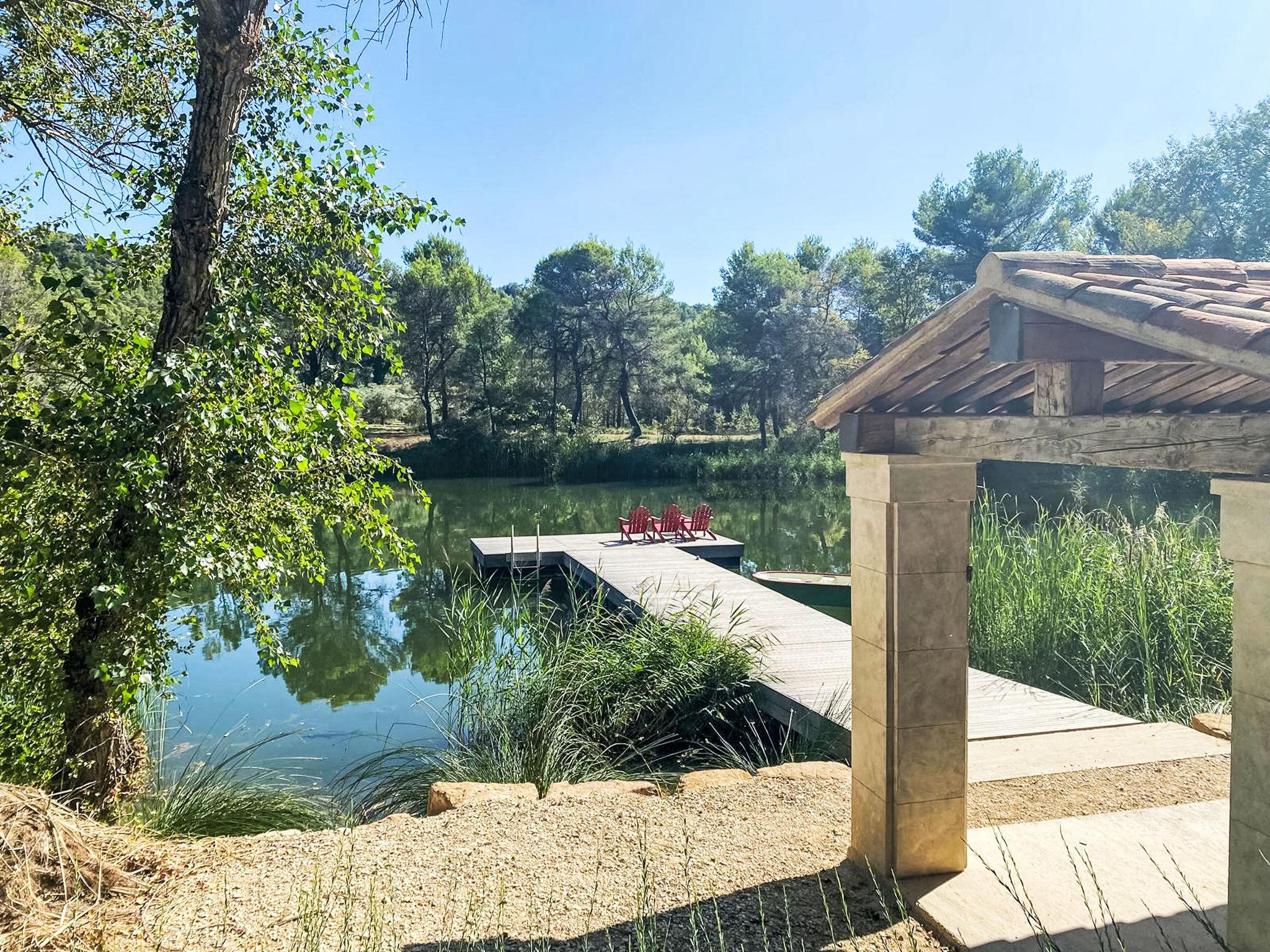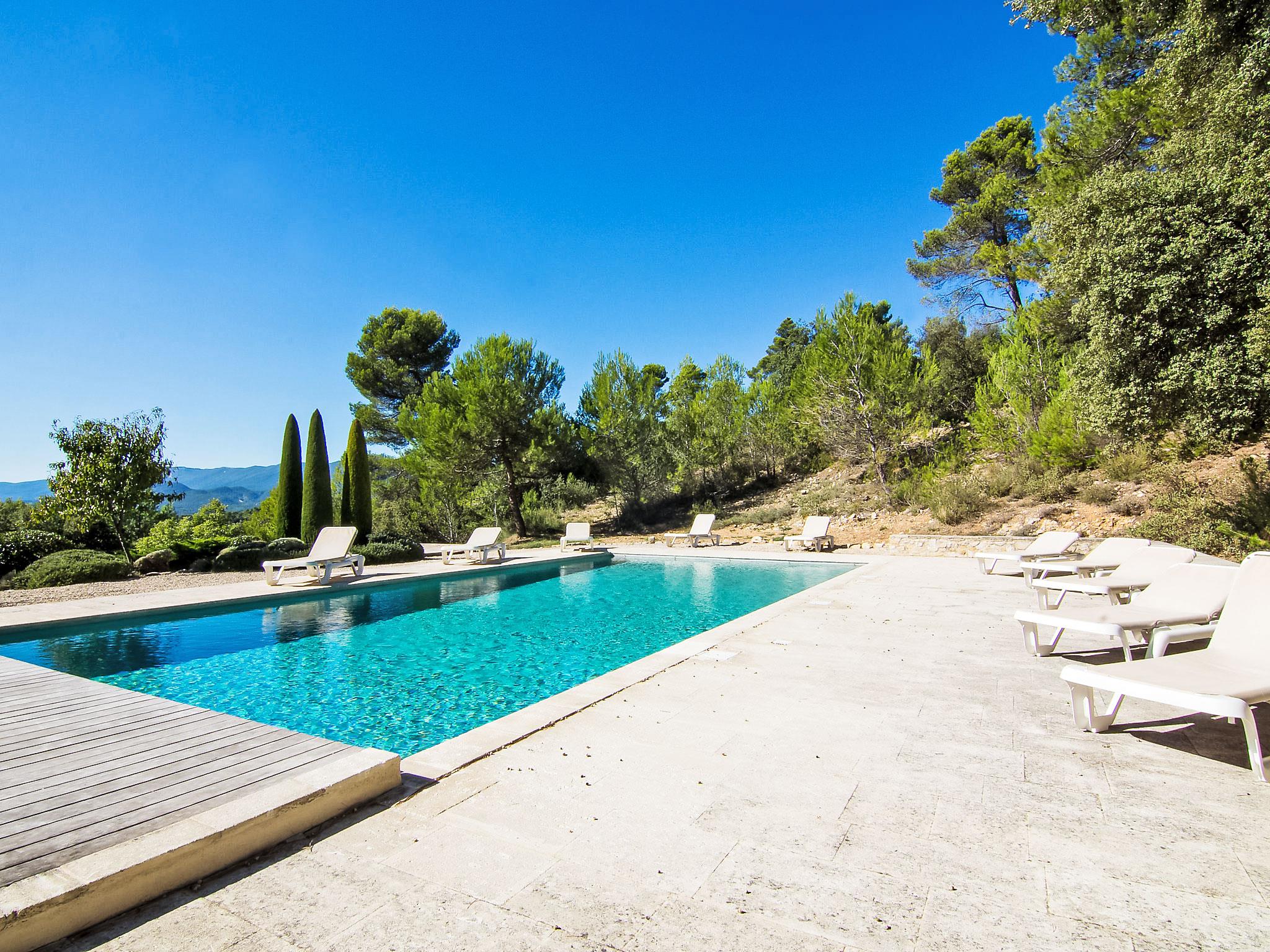 Located on land made up of woods, an olive grove and a lavender field. Available: plancha. Petanque pitch in front of the house. Pond at 150m with pontoon. two fountains on the property. On request, in addition, possibility of securing the services of a caterer or cook. Very beautiful house "Domaine de Piegros", 2 storeys, surrounded by trees. Outside the resort, in a secluded, quiet, elevated position. Private: park 32 ha with trees, pond, swimming pool (12 x 6 m, depth 100 - 180 cm, seasonal availability: 01.May. - 30.Sep.) with internal staircase and shutter cover. Boules, terrace (20 m2), garden furniture, bathing jetty, pool maintenance by the owner/gardener. In the house: central heating system. Linen change (suppl. charge extra). Towel change (suppl. charge extra). Room cleaning daily on request (extra). Cook on request (extra). 1.7 km long bumpy motor access (via unmade road). Shop 5 km, restaurant 5 km, bus stop "Régusse" 8.5 km. Golf course (18 hole) 15 km, tennis 10 km. Please note: car recommended.
