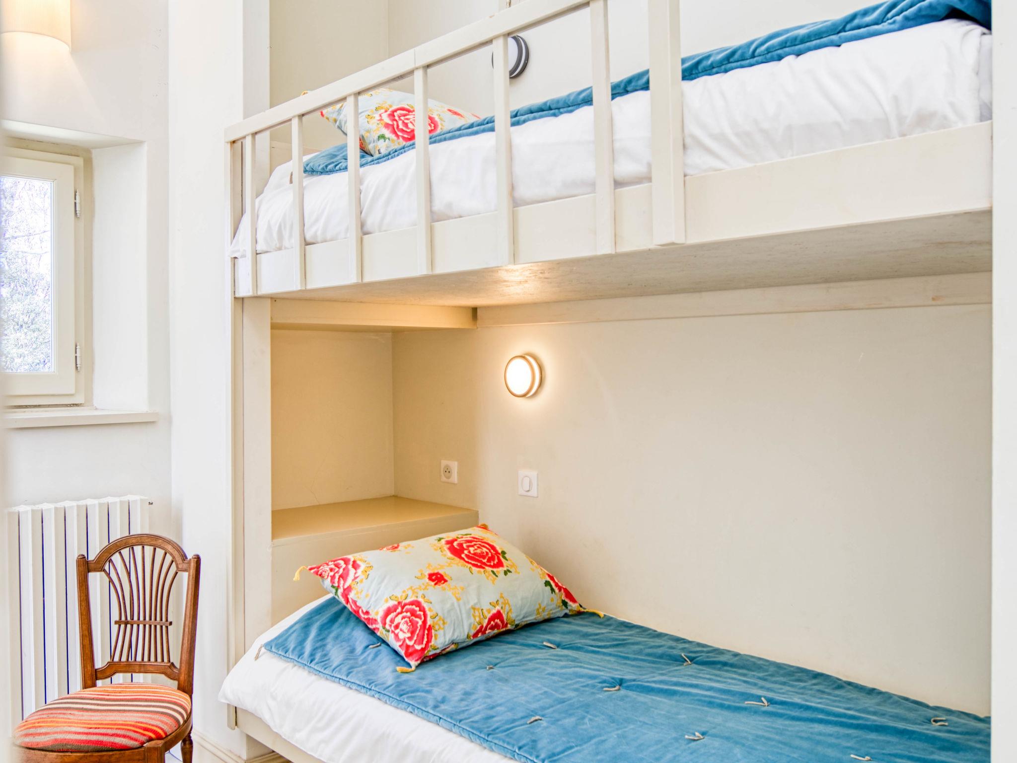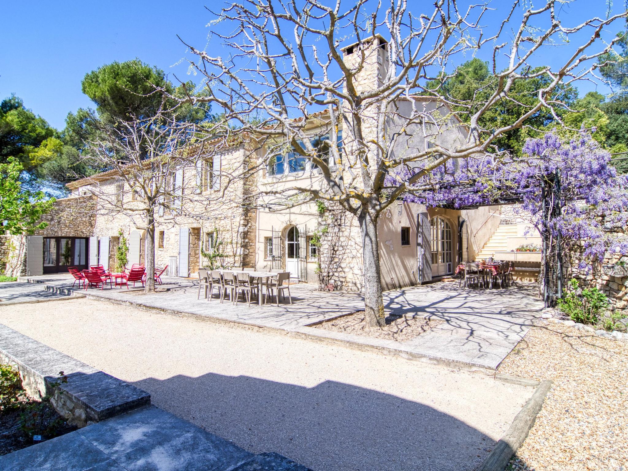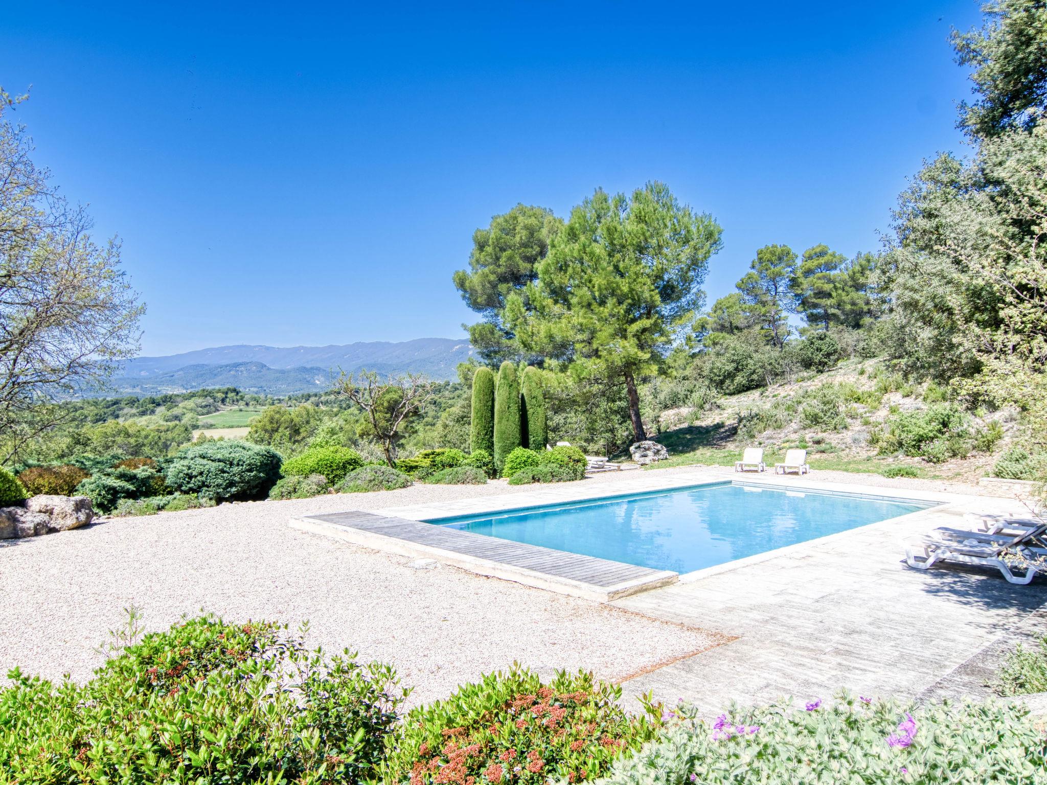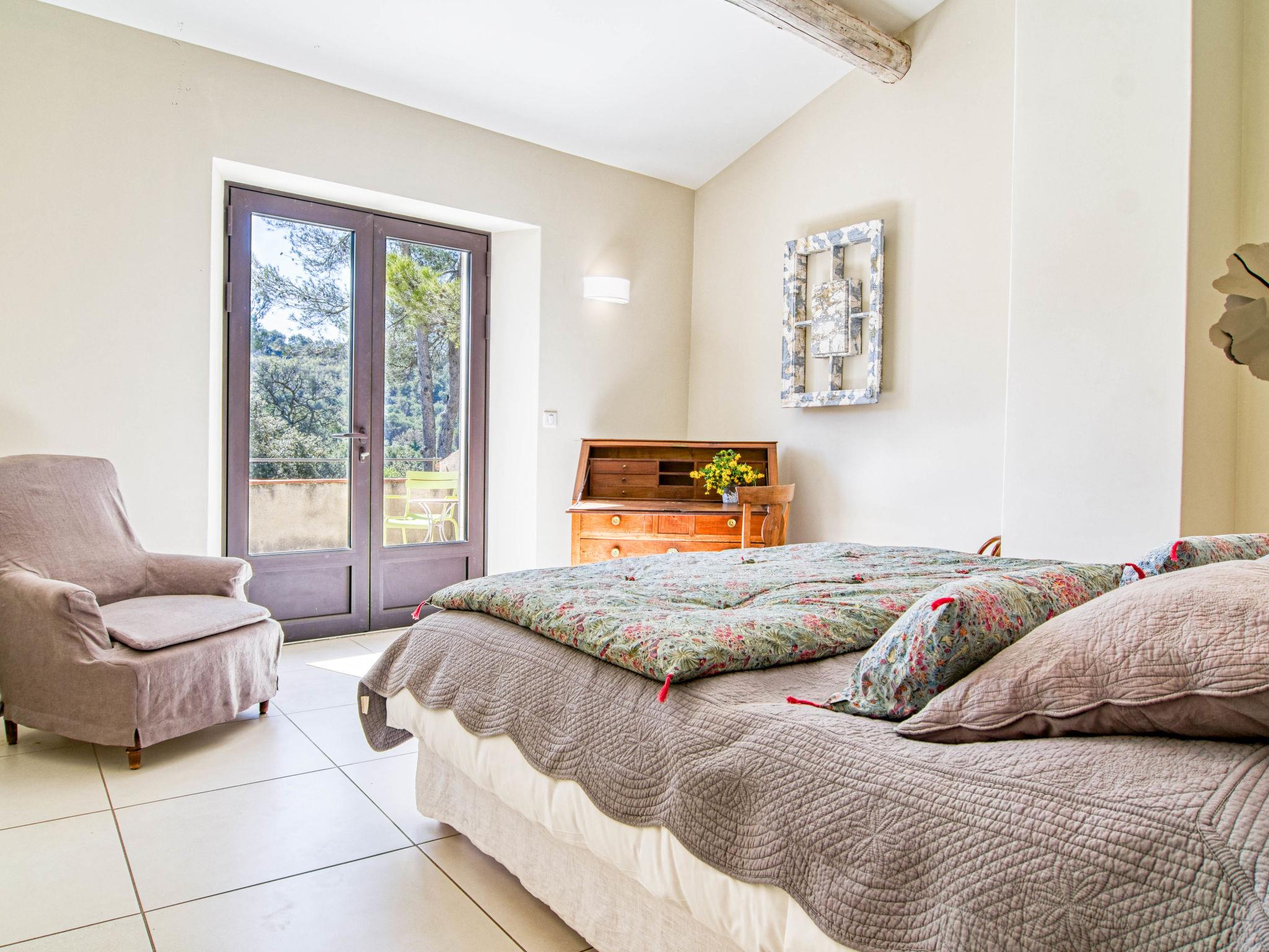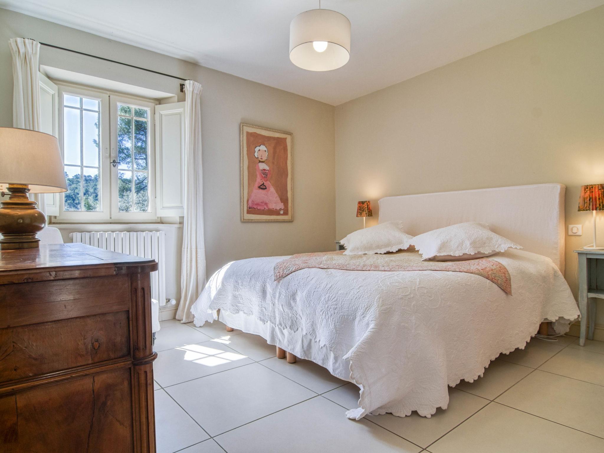 Located on land made up of woods, an olive grove and a lavender field. Available: plancha. Petanque pitch in front of the house. Pond at 150m with pontoon. two fountains on the property. On request, in addition, possibility of securing the services of a caterer or cook. Very beautiful house "Domaine de Piegros", 2 storeys, surrounded by trees. Outside the resort, in a secluded, quiet, elevated position. Private: park 32 ha with trees, pond, swimming pool (12 x 6 m, depth 100 - 180 cm, seasonal availability: 01.May. - 30.Sep.) with internal staircase and shutter cover. Boules, terrace (20 m2), garden furniture, bathing jetty, pool maintenance by the owner/gardener. In the house: central heating system. Linen change (suppl. charge extra). Towel change (suppl. charge extra). Room cleaning daily on request (extra). Cook on request (extra). 1.7 km long bumpy motor access (via unmade road). Shop 5 km, restaurant 5 km, bus stop "Régusse" 8.5 km. Golf course (18 hole) 15 km, tennis 10 km. Please note: car recommended.