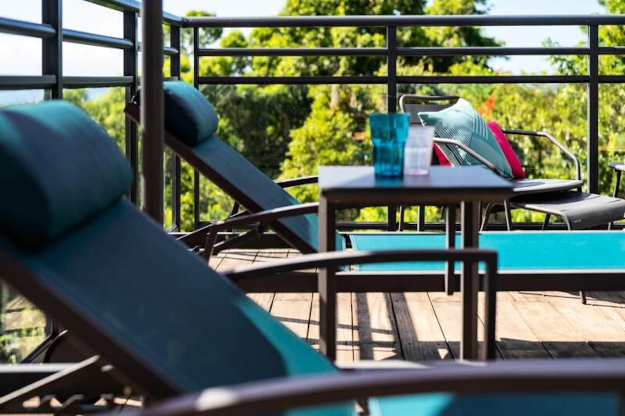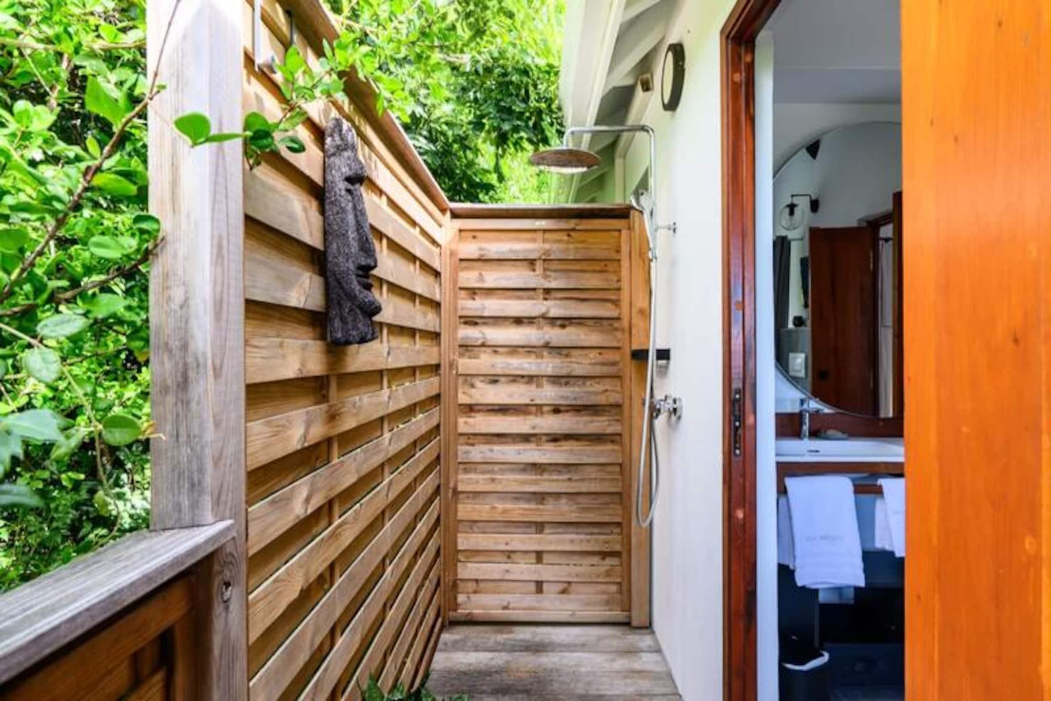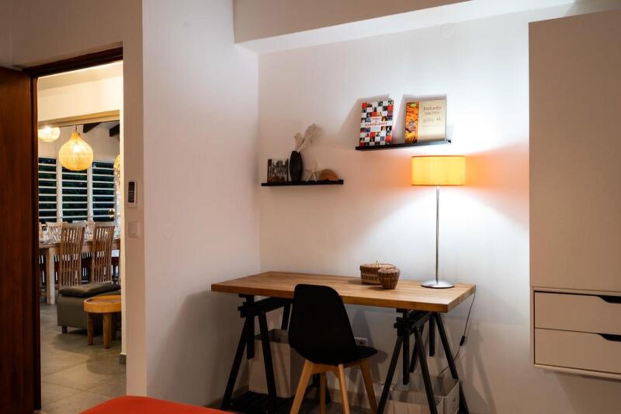 Beliggende på de fredfyldte højder i Grand-Bourg inviterer Villa Bwacajou dig til en tropisk ferie, hvor luksus møder natur. Med en betagende udsigt over havet og øen Dominica er denne 4-stjernede villa en oase af ro, kun fem minutter fra uberørte strande og det pulserende lokale liv. Omgivet af det frodige Murat-landskab tilbyder denne ejendom idylliske omgivelser til en uforglemmelig ferie. Villaen kan prale af tre soveværelser med aircondition, der hver har en queensize-seng og et privat badeværelse for ultimativ komfort. Et af soveværelserne, der er tilgængeligt udefra, sikrer ekstra privatliv for gæsterne. Det moderne køkken er fuldt udstyret med alt det nødvendige, fra en keramisk kogeplade til en opvaskemaskine, hvilket gør det perfekt til at tilberede lækre måltider. Den hyggelige stue, komplet med et fladskærms-tv, åbner ud til en lys og rummelig spiseplads. Store vinduer indrammer en fantastisk udsigt over haven og havet, hvilket skaber en problemfri forbindelse mellem indendørs komfort og udendørs skønhed. Træd udenfor til en overdækket terrasse, der omgiver en charmerende swimmingpool, smukt oplyst om aftenen. Slap af på komfortable liggestole under parasoller, mens du nyder panoramaudsigten. Den store, skovklædte park, der er direkte tilgængelig fra terrassen, tilbyder et fredeligt tilflugtssted for afslappende gåture. Til aftener fyldt med latter og god mad er kulgrillen perfekt til at holde mindeværdige sammenkomster med familie og venner. Villaen er ideelt beliggende i hjertet af Marie-Galante og tilbyder nem adgang til øens mest fantastiske strande, såsom Anse Canot og La Feuillère, der er ideelle til svømning eller kitesurfing. Udforsk den lokale kultur med besøg på Murat-plantagen, romdestillerier eller den pulserende Terre de Blues-festival. Uanset om du vandrer gennem sukkerrørsmarker, beundrer Grand Gouffre eller nyder kreolsk køkken på nærliggende restauranter, tilbyder Villa Bwacajou den perfekte blanding af afslapning, eventyr og kulturel opdagelse. Din drømmeferie i Guadeloupe venter!