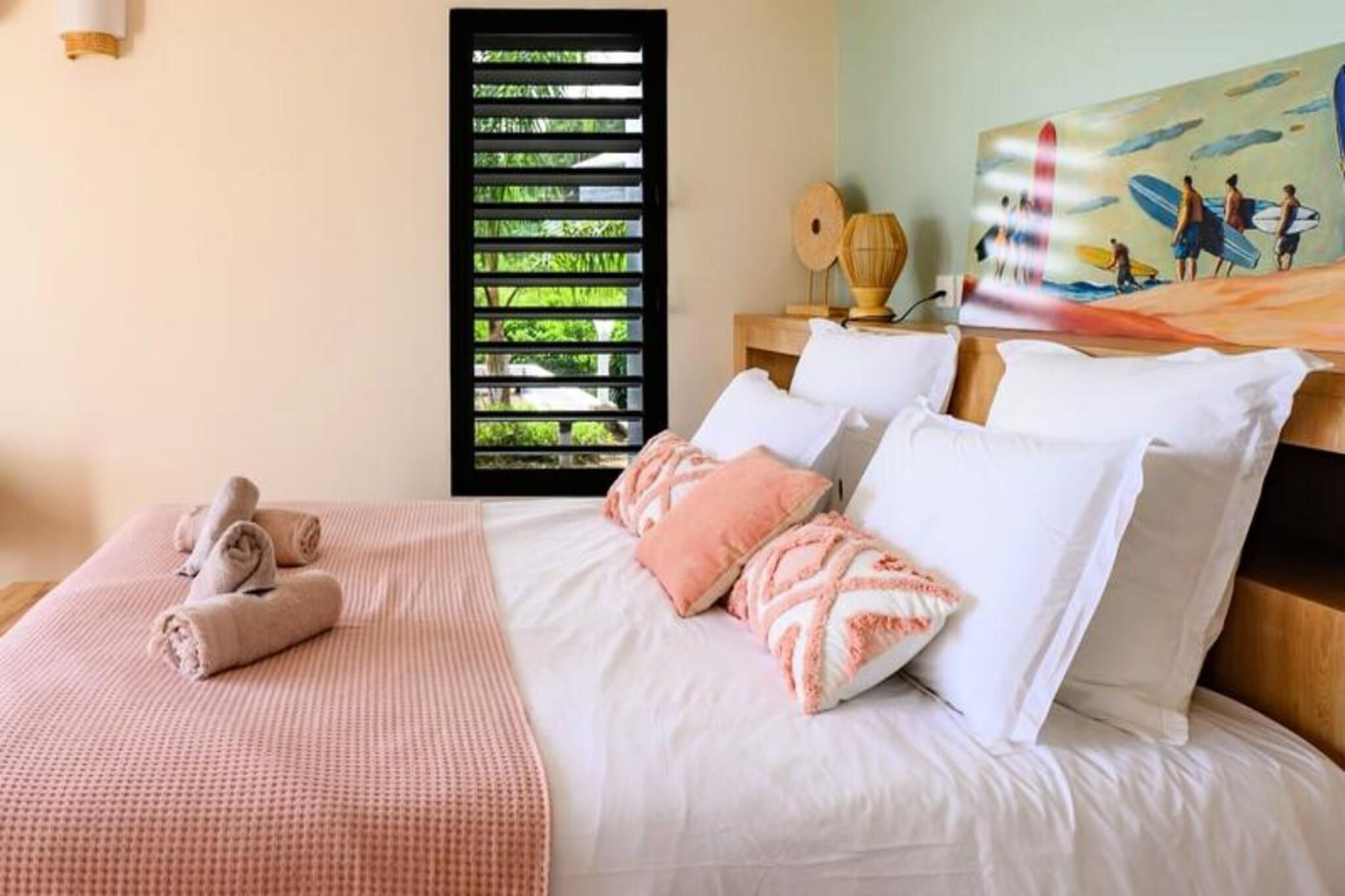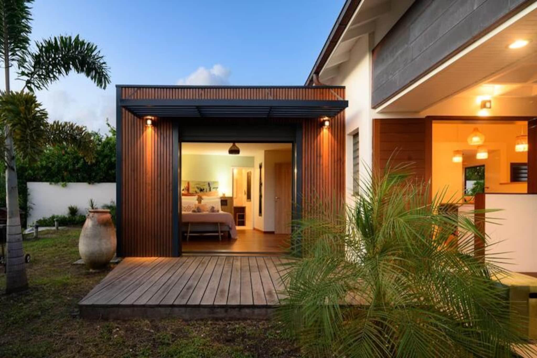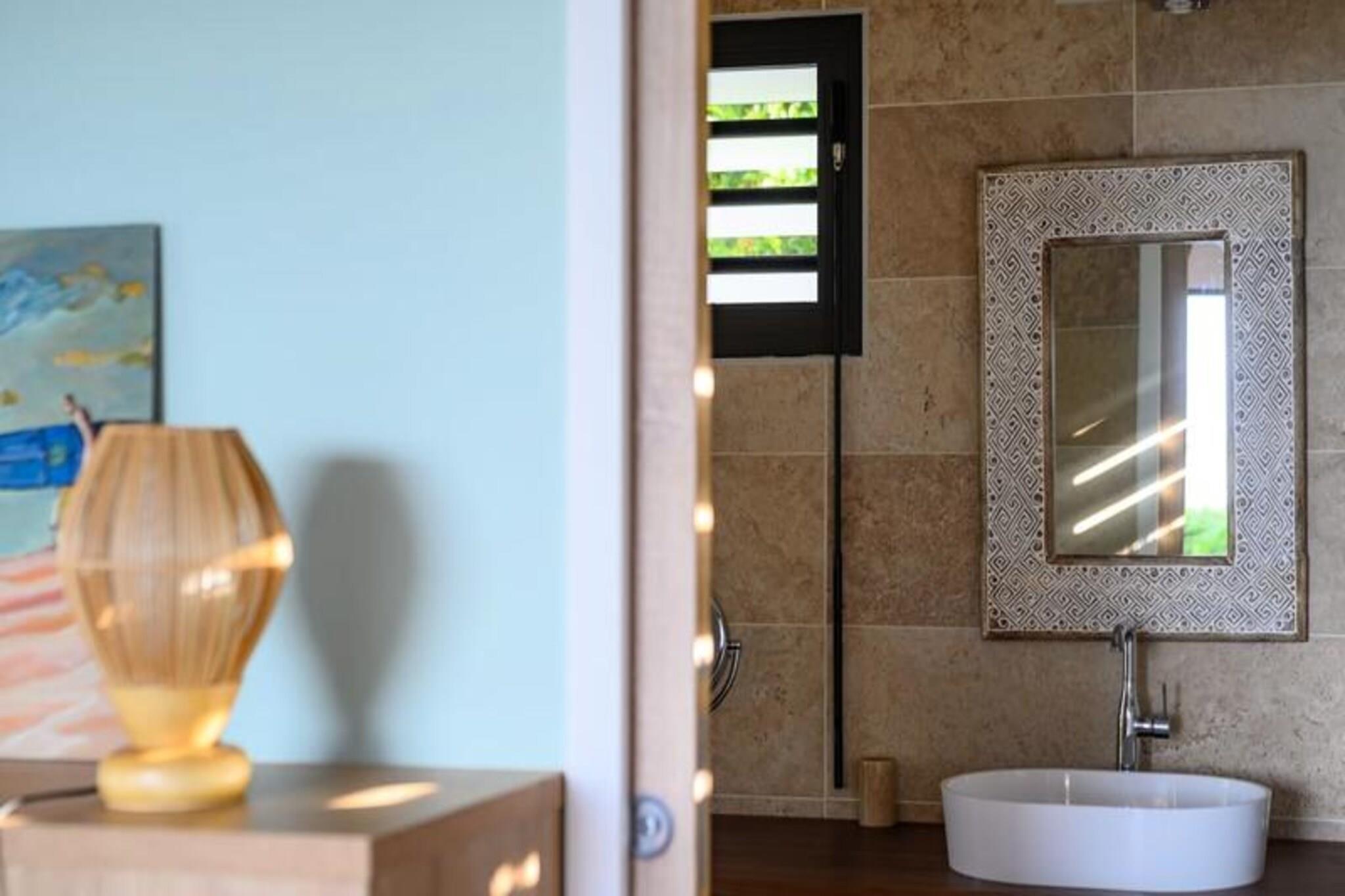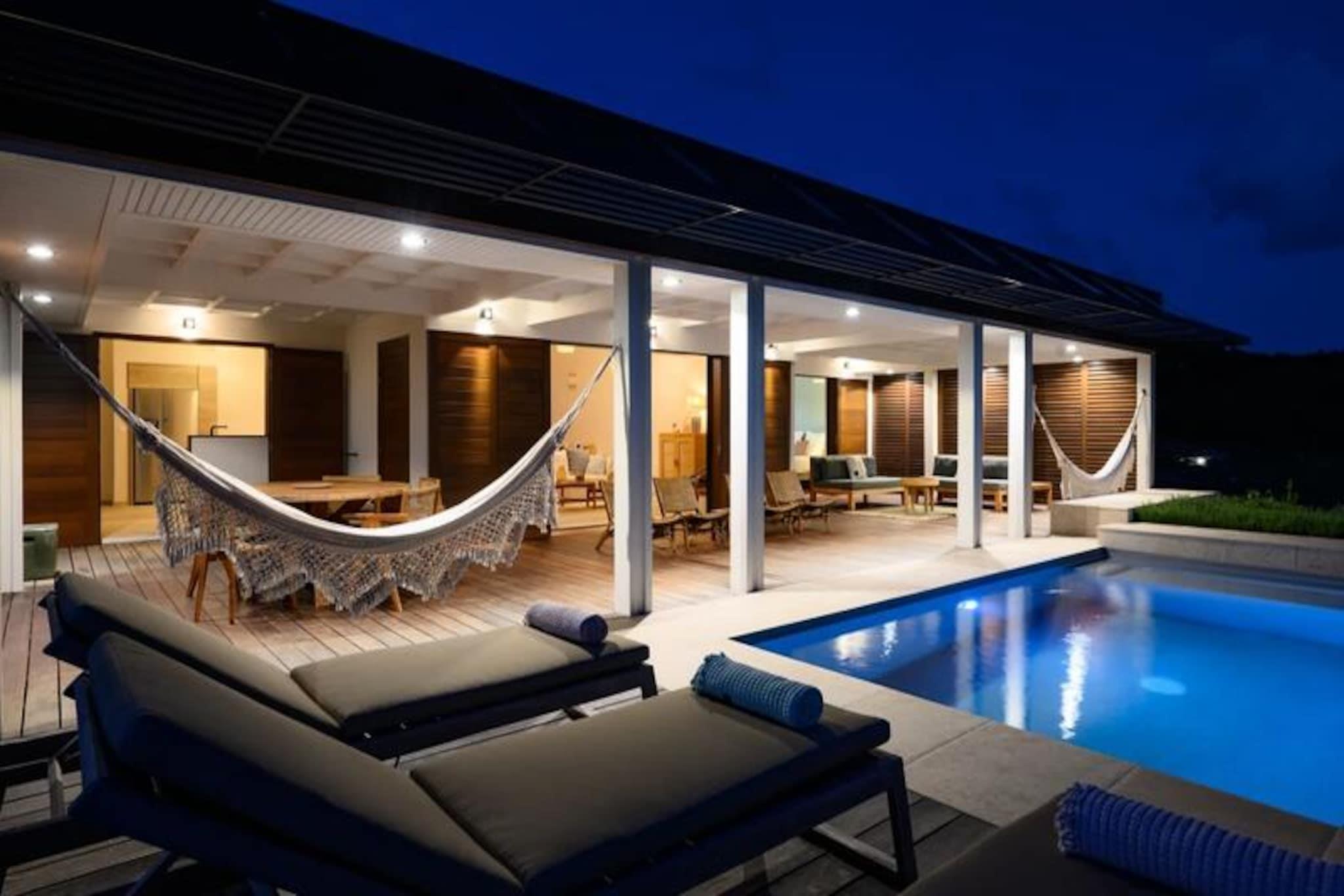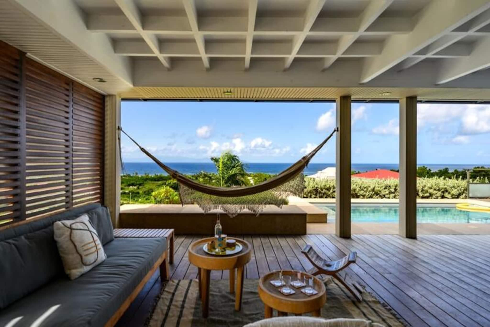 Forestil dig at vågne op til den blide caribiske brise og lyden af ??bølger i det fjerne, mens solen står op over den idylliske ø Marie-Galante. Denne moderne villa, beliggende i de rolige omgivelser i Grand-Bourg, tilbyder et luksuriøst tilflugtssted, hvor komfort møder betagende naturlig skønhed. Med panoramaudsigt over Dominica og Les Saintes føles hvert øjeblik her som et postkort, der kommer til live. Villaen er designet med elegance og afslapning i tankerne og har to rummelige suiter med aircondition, der hver er udstyret med premium 160 cm sengetøj og private badeværelser i italiensk stil med bruseniche. Det fuldt udstyrede køkken inviterer dig til at tilberede lækre måltider, mens den lyse og stilfulde stue åbner ud til en solbeskinnet terrasse. Udenfor er den private pool, omgivet af et terrasseområde, perfekt til at køle af eller nyde solen, alt imens du nyder den fantastiske havudsigt og de uforglemmelige solnedgange. Kun få minutter væk finder du den charmerende by Grand-Bourg, kendt for sine pulserende markeder, kreolske restauranter og indbydende atmosfære. Udforsk de uberørte hvide sandstrande ved Anse Canot og La Feuillère, der er ideelle til svømning og kitesurfing. Oplev lokale destillerier, vandre gennem sukkerrørsmarker, eller deltag i livlige strandkoncerter for at få en smagsprøve på øens rige kultur og traditioner. Uanset om du søger ro, eventyr eller en blanding af begge dele, tilbyder denne villa den perfekte base for en uforglemmelig caribisk flugt. Lad Guadeloupes skønhed og den varme befolkning skabe minder, der vil vare hele livet.