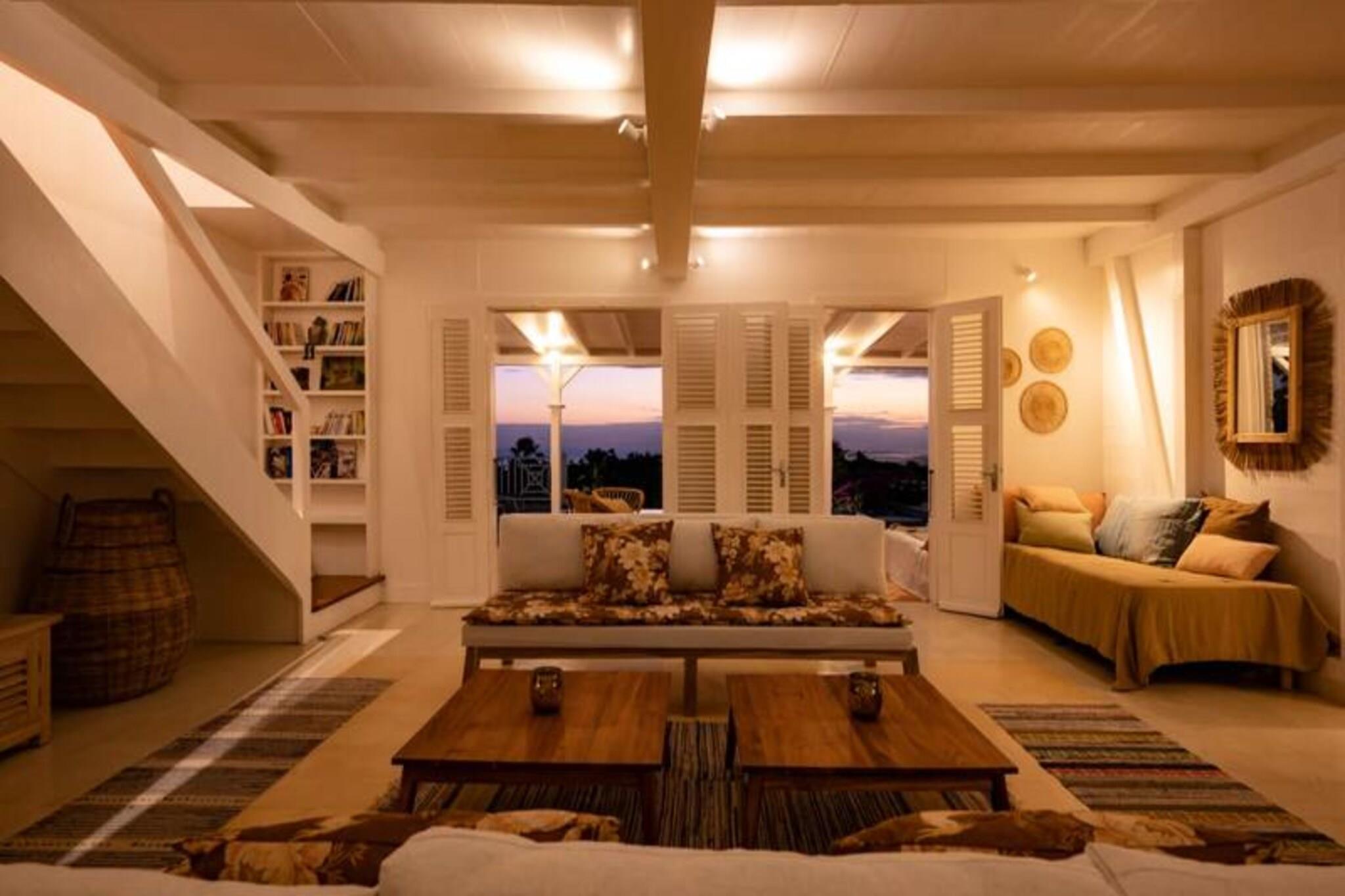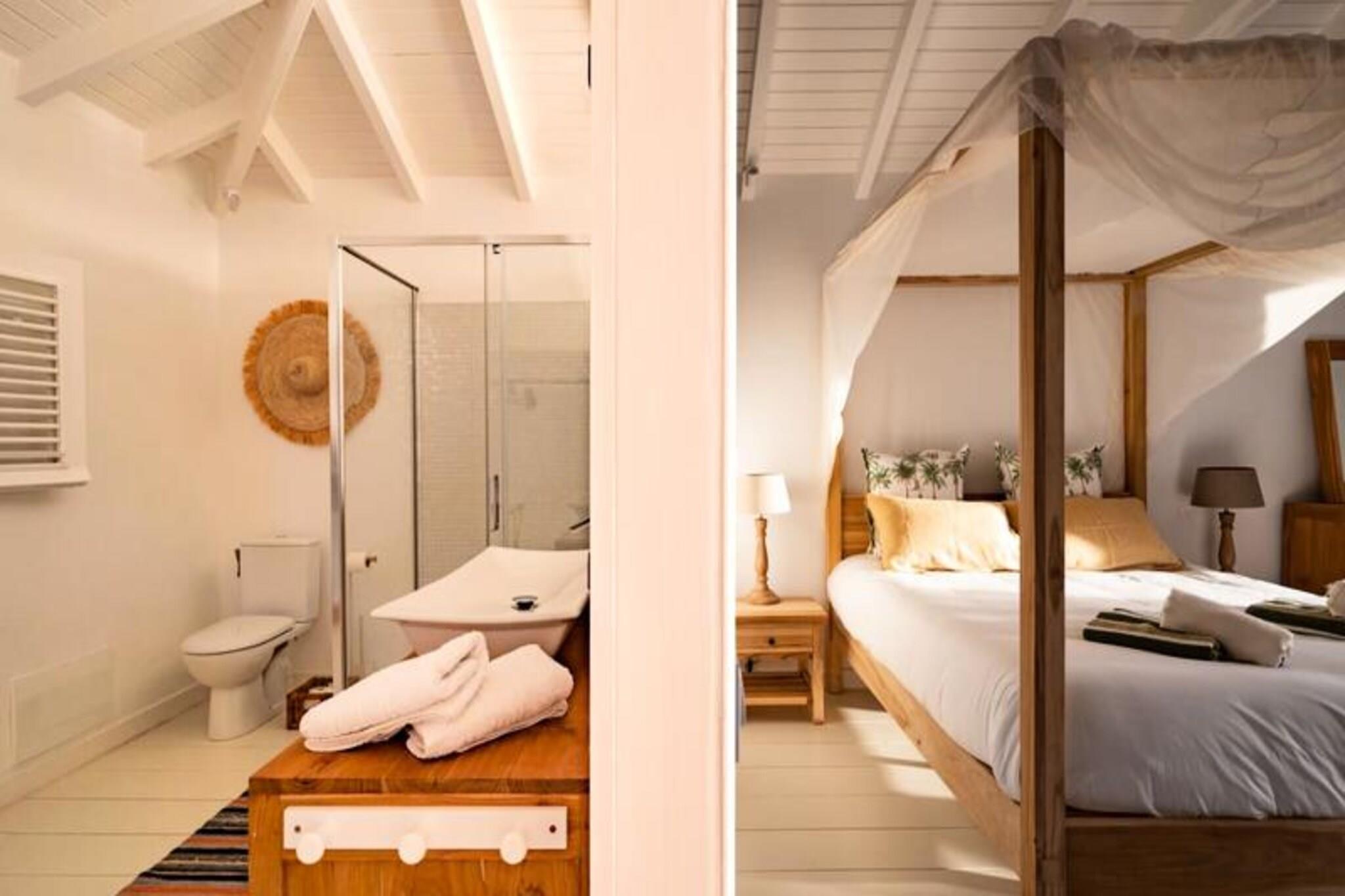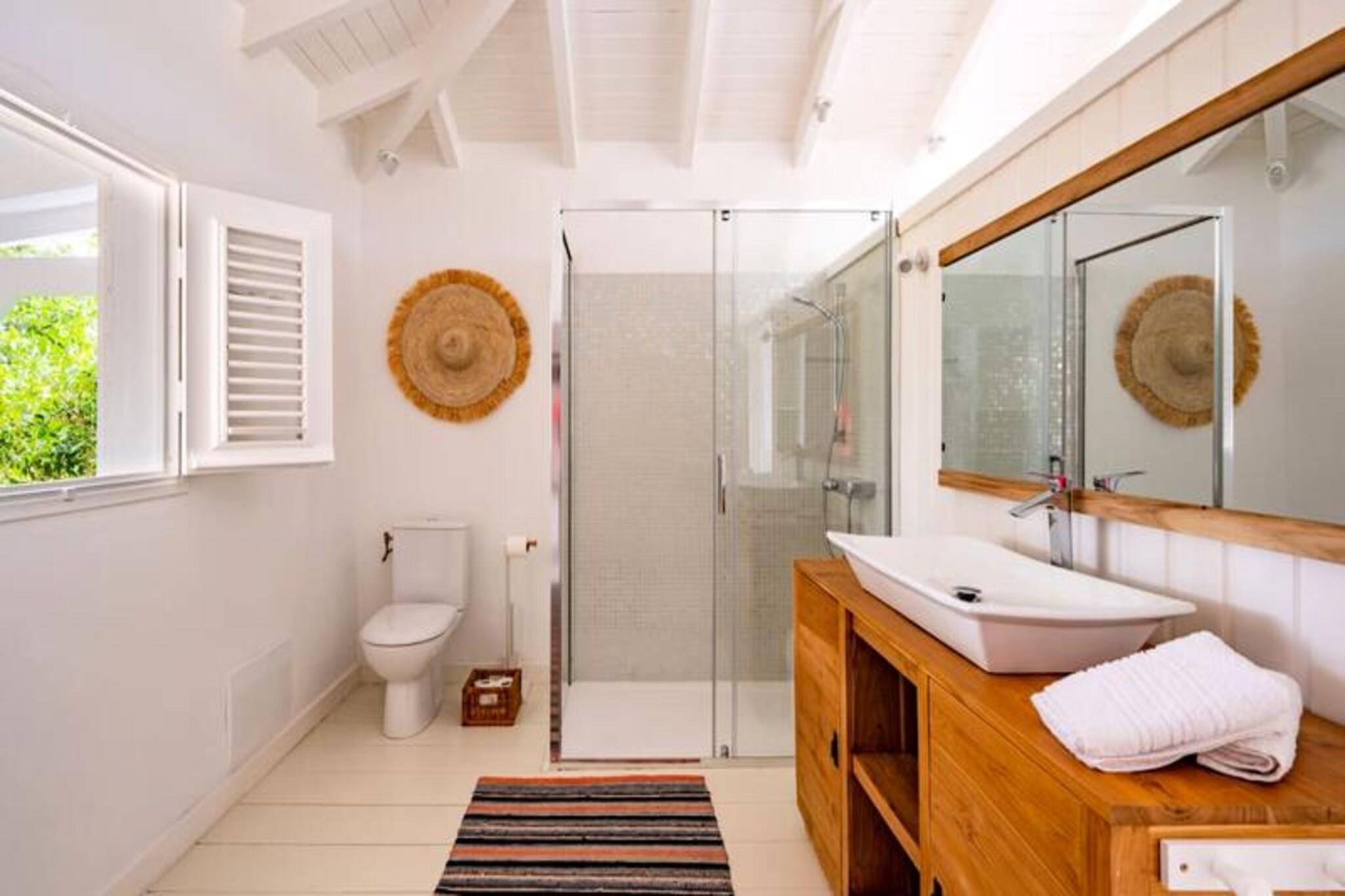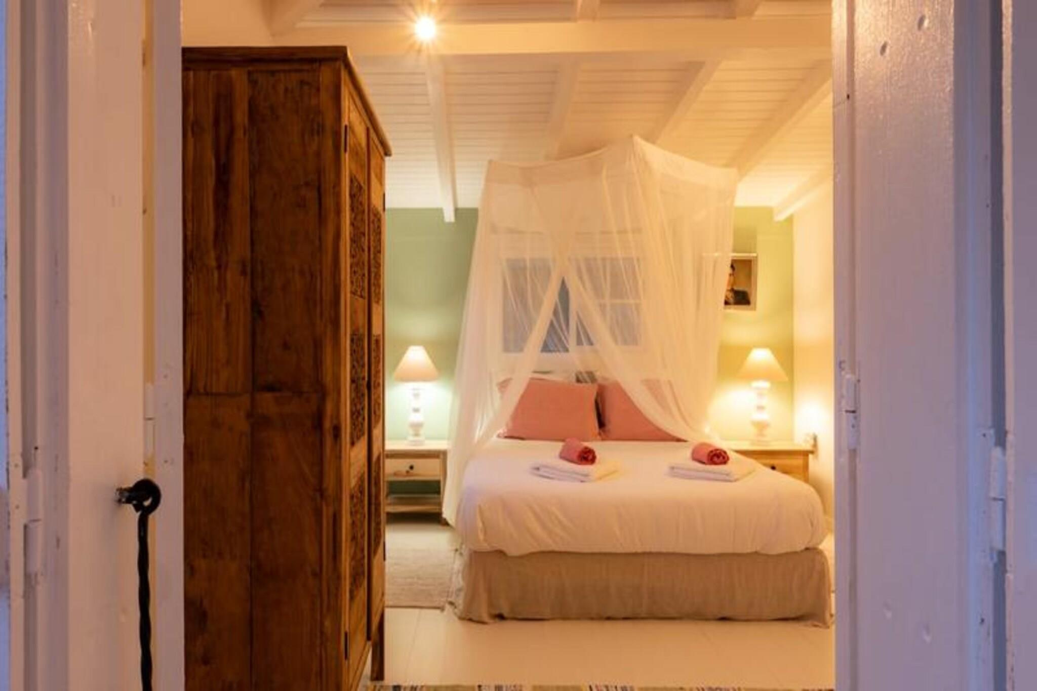 På den fredfyldte ø Marie-Galante, hvor det turkisblå Caribiske Hav møder uberørt hvidt sand, tilbyder Villa Blanche en uovertruffen flugt ind i naturen og roen. Gemt i en frodig tropisk have fyldt med banantræer og livlige kolibrier, inviterer dette fristed dig til at genoprette forbindelsen med livets enkle glæder. Her er de eneste lyde brisens hvisken, fuglenes kvidren og lejlighedsvise tropiske regnbyger, hvilket skaber en atmosfære, der føles tidløs og uberørt. Denne udsøgte ejendom har plads til op til 11 gæster fordelt på fem smukt designede soveværelser, hver med sit eget private badeværelse. To af disse er beliggende i uafhængige bungalows, der tilbyder ultimativ privatliv, mens master-suiten kan prale af en betagende havudsigt. Villaens hjerte er en rummelig opholdsstue, der problemfrit blander indendørs og udendørs ophold. Et fuldt udstyret italiensk køkken, en skyggefuld terrasse og en infinity-pool med udsigt over havet giver de perfekte rum til afslapning og kontakt. Den en hektar store have, oversået med frugttræer og snoede stier, bidrager til charmen, mens faciliteter som aircondition, højhastigheds-Wi-Fi og en petanquebane sikrer moderne komfort. Kun fem minutter fra Grand-Bourg finder du livlige markeder, kreolske restauranter og lokale destillerier, du kan udforske. De nærliggende strande Anse Canot og La Feuillère tilbyder rolige svømningsmuligheder og spændende kitesurfingmuligheder. Uanset om du vandrer gennem sukkerrørsmarker, nyder en ti-punch på terrassen eller tager en stjerneklar dukkert i infinity-poolen, lover Villa Blanche et uforglemmeligt caribisk tilflugtssted. Med en dedikeret concierge-service, der kan hjælpe med udflugter, biludlejning og lokale anbefalinger, vil dit ophold være lige så problemfrit, som det er magisk. Oplev essensen af ??Guadeloupes naturlige skønhed og autentiske charme på Villa Blanche - et paradis, hvor luksus møder enkelhed.