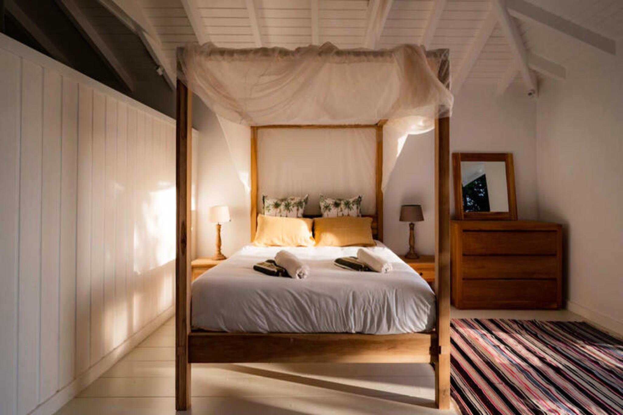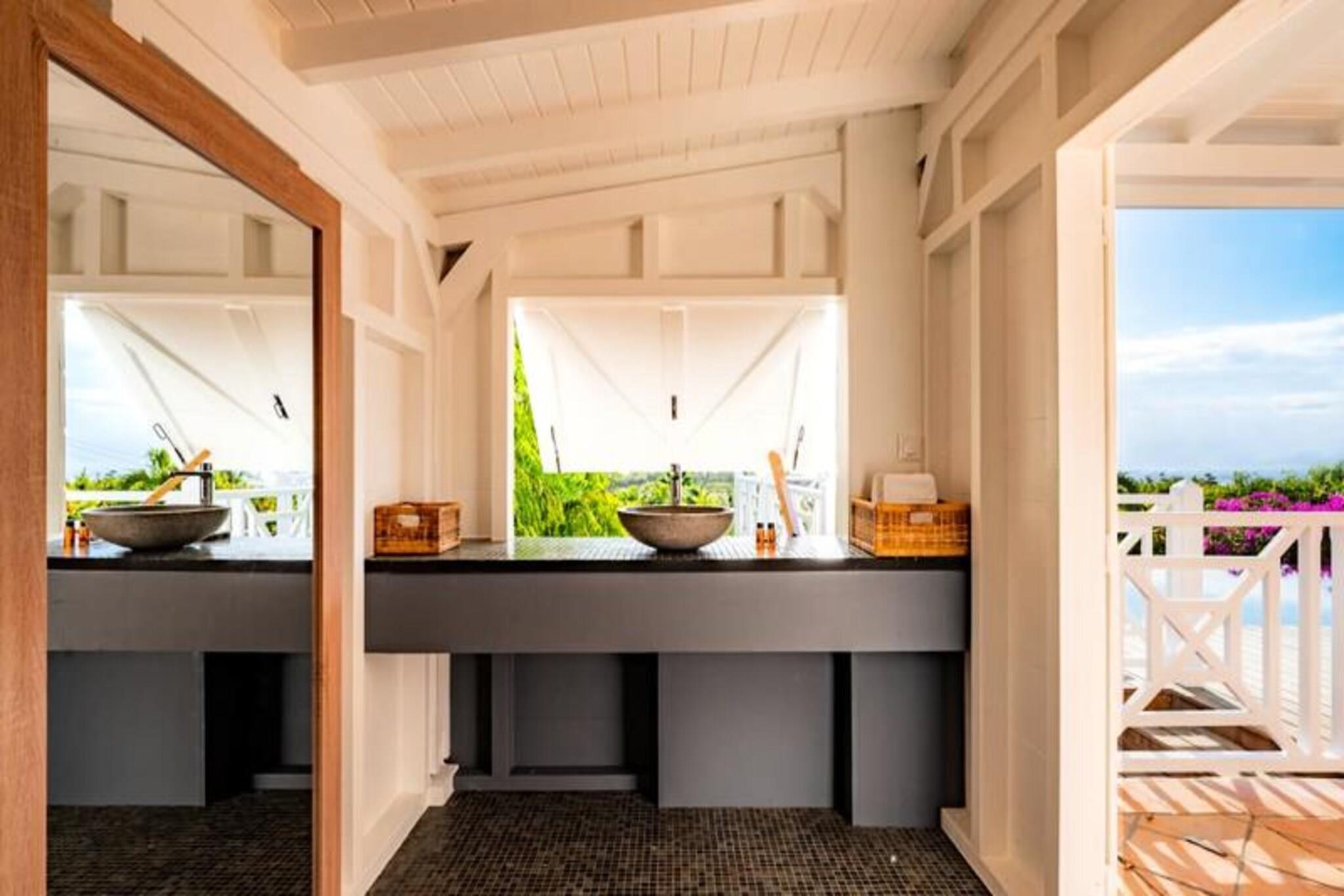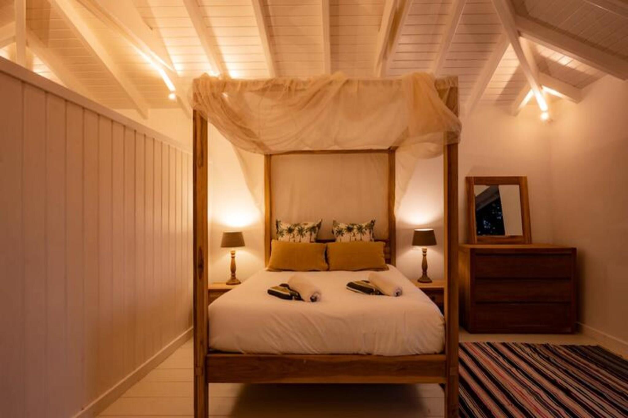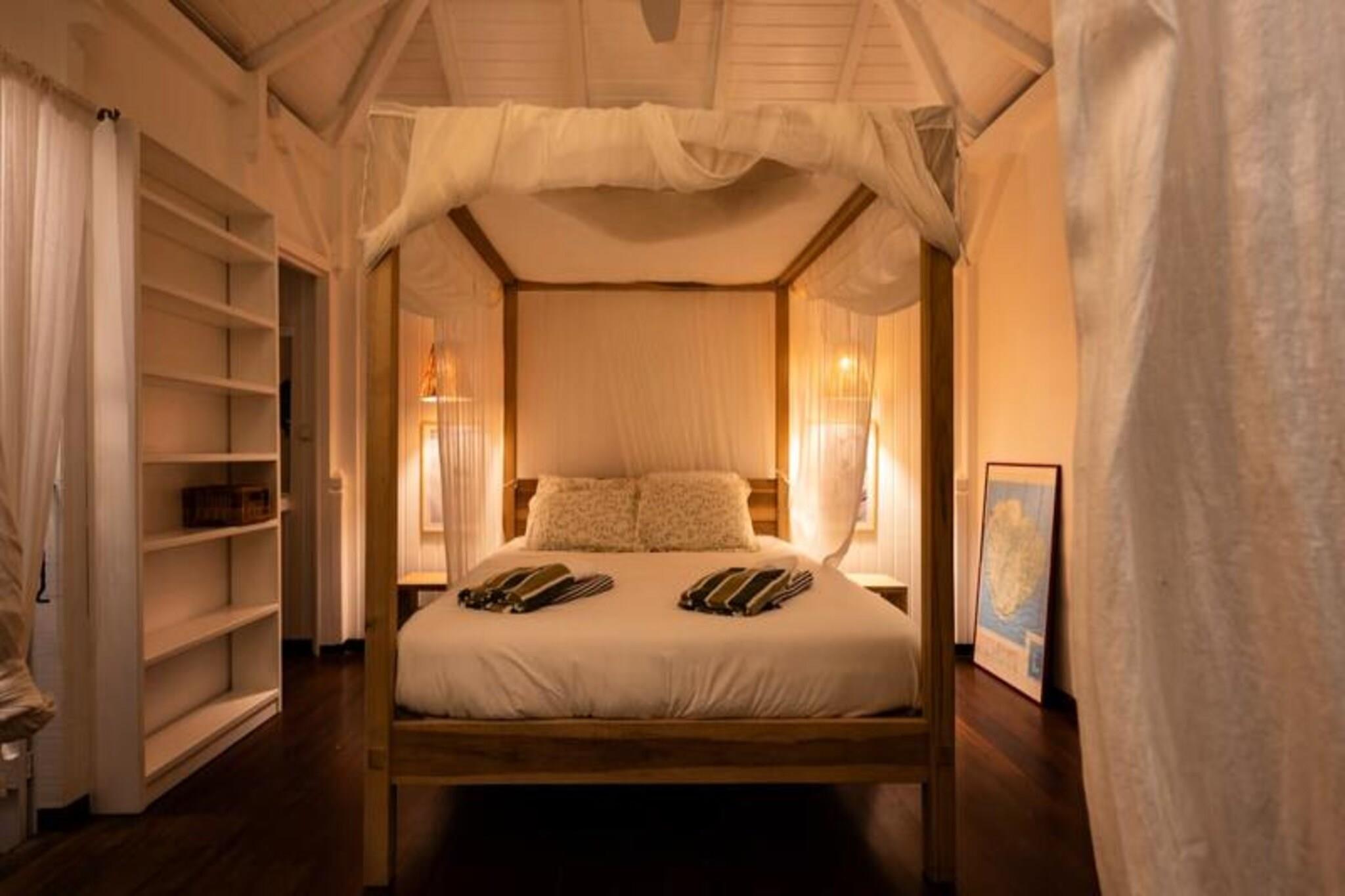 På den fredfyldte ø Marie-Galante, hvor det turkisblå Caribiske Hav møder uberørt hvidt sand, tilbyder Villa Blanche en uovertruffen flugt ind i naturen og roen. Gemt i en frodig tropisk have fyldt med banantræer og livlige kolibrier, inviterer dette fristed dig til at genoprette forbindelsen med livets enkle glæder. Her er de eneste lyde brisens hvisken, fuglenes kvidren og lejlighedsvise tropiske regnbyger, hvilket skaber en atmosfære, der føles tidløs og uberørt. Denne udsøgte ejendom har plads til op til 11 gæster fordelt på fem smukt designede soveværelser, hver med sit eget private badeværelse. To af disse er beliggende i uafhængige bungalows, der tilbyder ultimativ privatliv, mens master-suiten kan prale af en betagende havudsigt. Villaens hjerte er en rummelig opholdsstue, der problemfrit blander indendørs og udendørs ophold. Et fuldt udstyret italiensk køkken, en skyggefuld terrasse og en infinity-pool med udsigt over havet giver de perfekte rum til afslapning og kontakt. Den en hektar store have, oversået med frugttræer og snoede stier, bidrager til charmen, mens faciliteter som aircondition, højhastigheds-Wi-Fi og en petanquebane sikrer moderne komfort. Kun fem minutter fra Grand-Bourg finder du livlige markeder, kreolske restauranter og lokale destillerier, du kan udforske. De nærliggende strande Anse Canot og La Feuillère tilbyder rolige svømningsmuligheder og spændende kitesurfingmuligheder. Uanset om du vandrer gennem sukkerrørsmarker, nyder en ti-punch på terrassen eller tager en stjerneklar dukkert i infinity-poolen, lover Villa Blanche et uforglemmeligt caribisk tilflugtssted. Med en dedikeret concierge-service, der kan hjælpe med udflugter, biludlejning og lokale anbefalinger, vil dit ophold være lige så problemfrit, som det er magisk. Oplev essensen af ??Guadeloupes naturlige skønhed og autentiske charme på Villa Blanche - et paradis, hvor luksus møder enkelhed.
