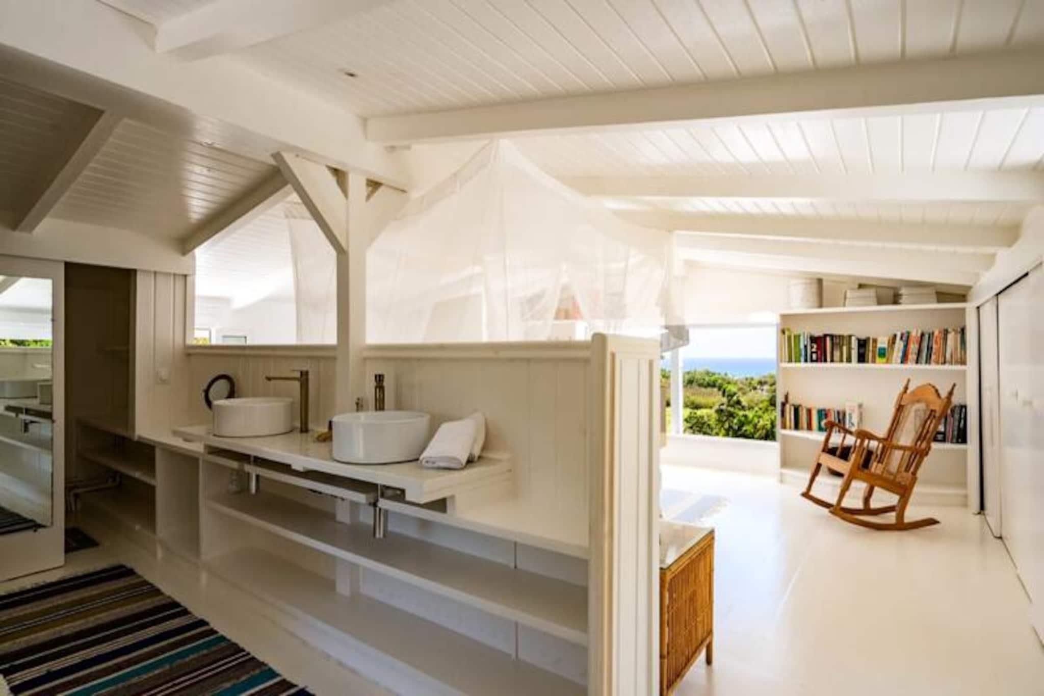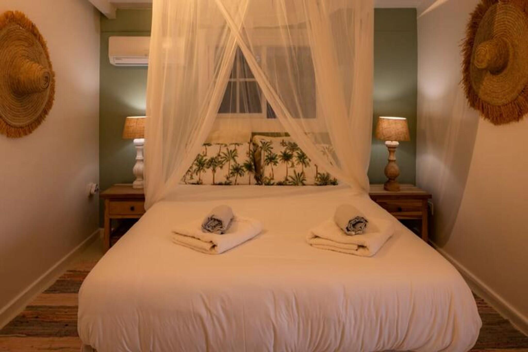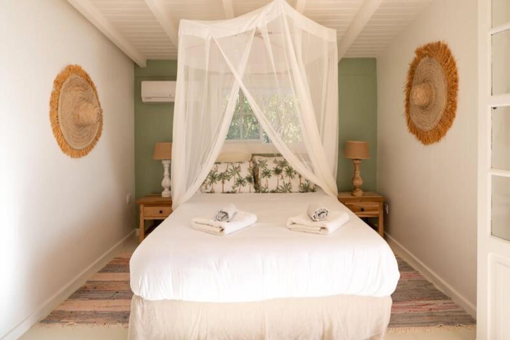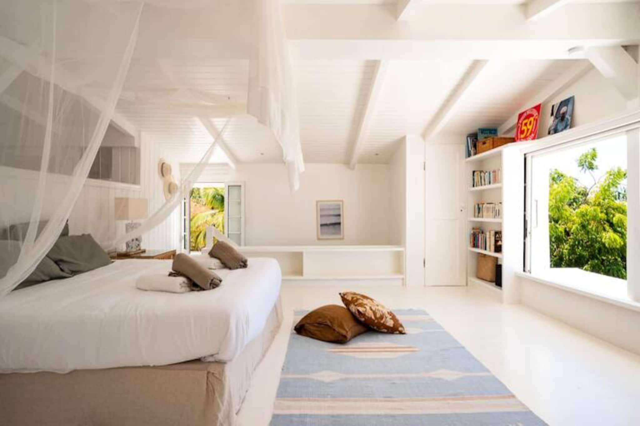 På den fredfyldte ø Marie-Galante, hvor det turkisblå Caribiske Hav møder uberørt hvidt sand, tilbyder Villa Blanche en uovertruffen flugt ind i naturen og roen. Gemt i en frodig tropisk have fyldt med banantræer og livlige kolibrier, inviterer dette fristed dig til at genoprette forbindelsen med livets enkle glæder. Her er de eneste lyde brisens hvisken, fuglenes kvidren og lejlighedsvise tropiske regnbyger, hvilket skaber en atmosfære, der føles tidløs og uberørt. Denne udsøgte ejendom har plads til op til 11 gæster fordelt på fem smukt designede soveværelser, hver med sit eget private badeværelse. To af disse er beliggende i uafhængige bungalows, der tilbyder ultimativ privatliv, mens master-suiten kan prale af en betagende havudsigt. Villaens hjerte er en rummelig opholdsstue, der problemfrit blander indendørs og udendørs ophold. Et fuldt udstyret italiensk køkken, en skyggefuld terrasse og en infinity-pool med udsigt over havet giver de perfekte rum til afslapning og kontakt. Den en hektar store have, oversået med frugttræer og snoede stier, bidrager til charmen, mens faciliteter som aircondition, højhastigheds-Wi-Fi og en petanquebane sikrer moderne komfort. Kun fem minutter fra Grand-Bourg finder du livlige markeder, kreolske restauranter og lokale destillerier, du kan udforske. De nærliggende strande Anse Canot og La Feuillère tilbyder rolige svømningsmuligheder og spændende kitesurfingmuligheder. Uanset om du vandrer gennem sukkerrørsmarker, nyder en ti-punch på terrassen eller tager en stjerneklar dukkert i infinity-poolen, lover Villa Blanche et uforglemmeligt caribisk tilflugtssted. Med en dedikeret concierge-service, der kan hjælpe med udflugter, biludlejning og lokale anbefalinger, vil dit ophold være lige så problemfrit, som det er magisk. Oplev essensen af ??Guadeloupes naturlige skønhed og autentiske charme på Villa Blanche - et paradis, hvor luksus møder enkelhed.