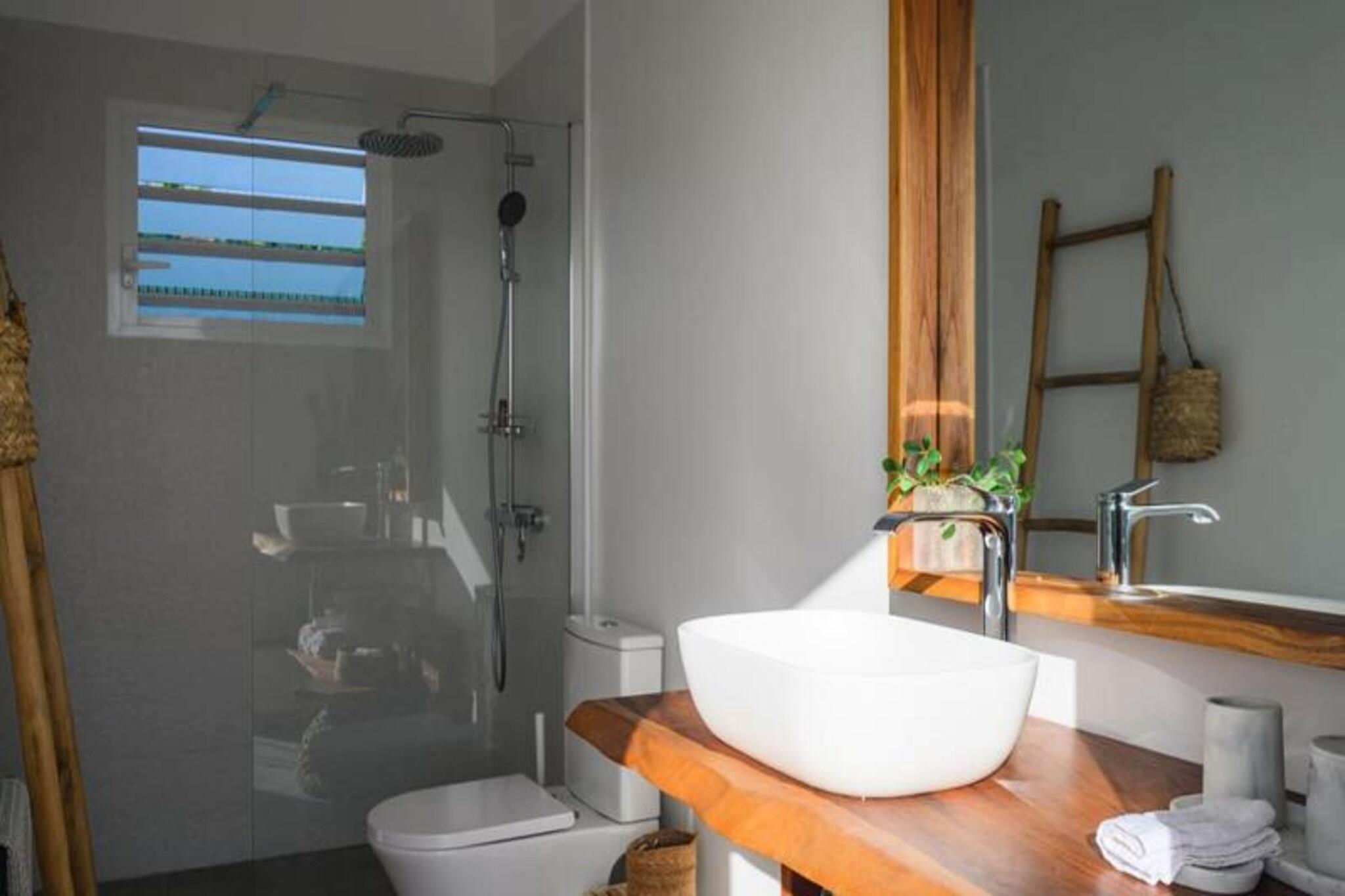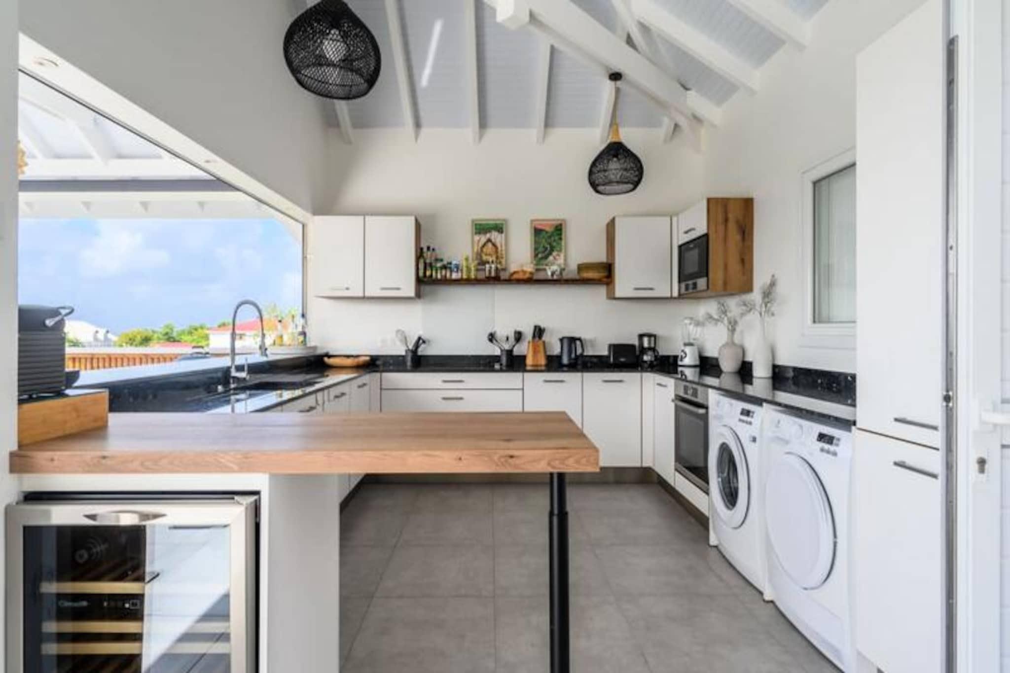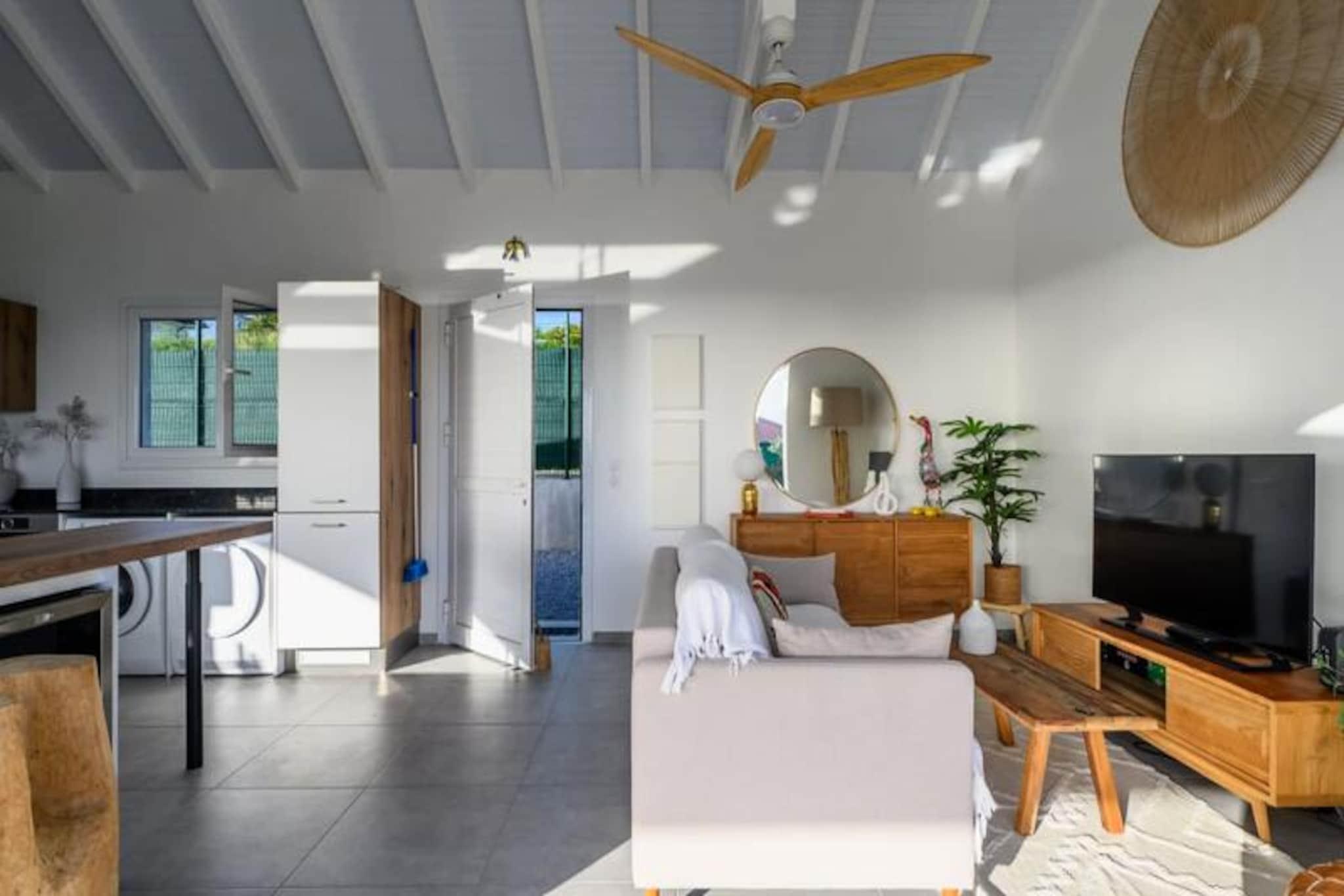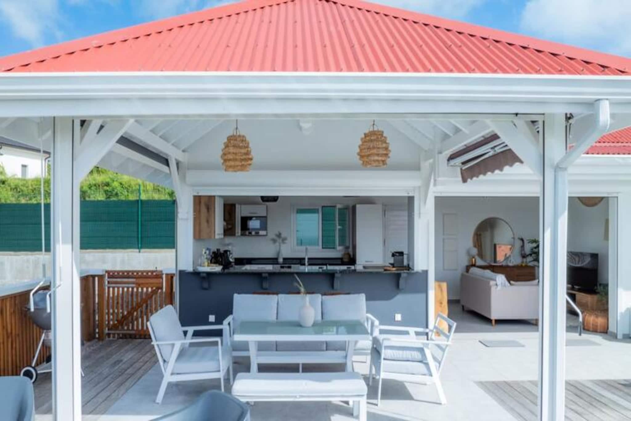 Nyd roen i Villa Paloma, et fredfyldt tilflugtssted beliggende på højderne i Grand-Bourg, der tilbyder betagende udsigt og moderne komfort. Denne elegante villa er et paradis for par eller venner, der søger en fredelig flugt under den caribiske sol. Med sin private infinity-pool, der glider problemfrit ind i horisonten, vil du blive fordybet i skønheden i Marie-Galantes uberørte landskaber. Villaens design kombinerer harmonisk moderne luksus med øens naturlige charme og skaber en atmosfære af ren afslapning. Indenfor tilbyder to suiter med aircondition, queensize-senge og eget badeværelse ultimativ komfort og privatliv. Soveværelserne, adskilt fra det primære opholdsområde, sikrer et roligt og afslappende ophold, perfekt til voksne, der rejser sammen. Det åbne køkken, udstyret med high-end apparater, flyder ubesværet ud på terrassen, hvor du kan nyde udendørs spisning, mens du nyder havudsigten. Stuen, komplet med et smart-tv og fiberoptisk internet, tilbyder et hyggeligt sted at slappe af efter en dag med udforskning. Villaen ligger kun fem minutter fra hjertet af Grand-Bourg og er ideelt placeret til at opleve det bedste af Marie-Galante. Oplev øens berømte hvide sandstrande, såsom La Feuillère og Anse Canot, der er perfekte til svømning og solbadning. Udforsk lokale markeder, nyd kreolske delikatesser, eller vandre gennem de frodige sukkerrørsmarker og naturskønne vandrestier, der definerer øens unikke charme. Med personlig concierge-service, herunder udflugter, biludlejning og eksklusive anbefalinger, sikrer Villa Paloma et uforglemmeligt ophold. Uanset om du slapper af ved infinity-poolen eller udforsker øens skjulte perler, lover dette tilflugtssted en ferie fyldt med afslapning, eventyr og Caribiens varme omfavnelse.