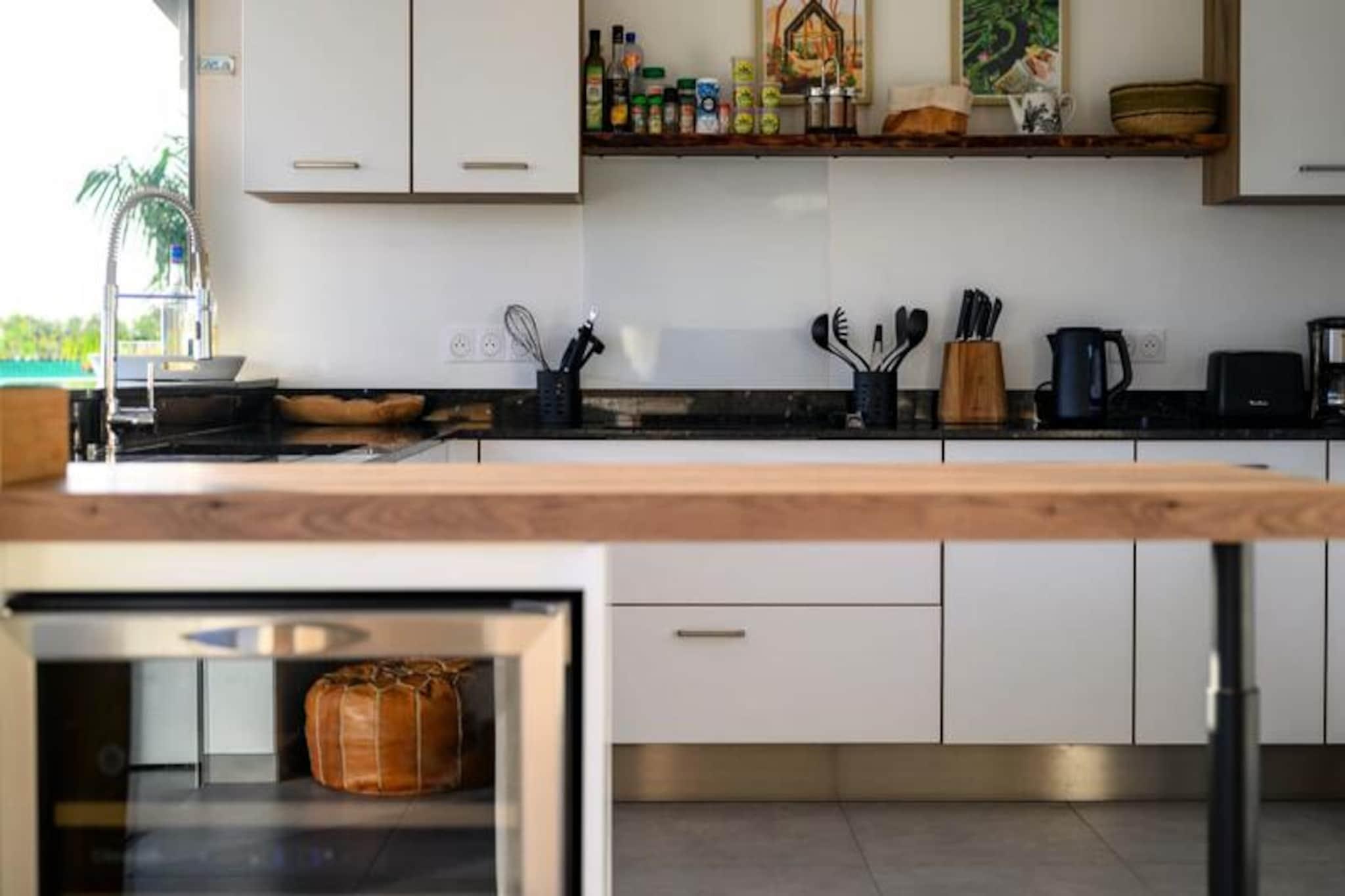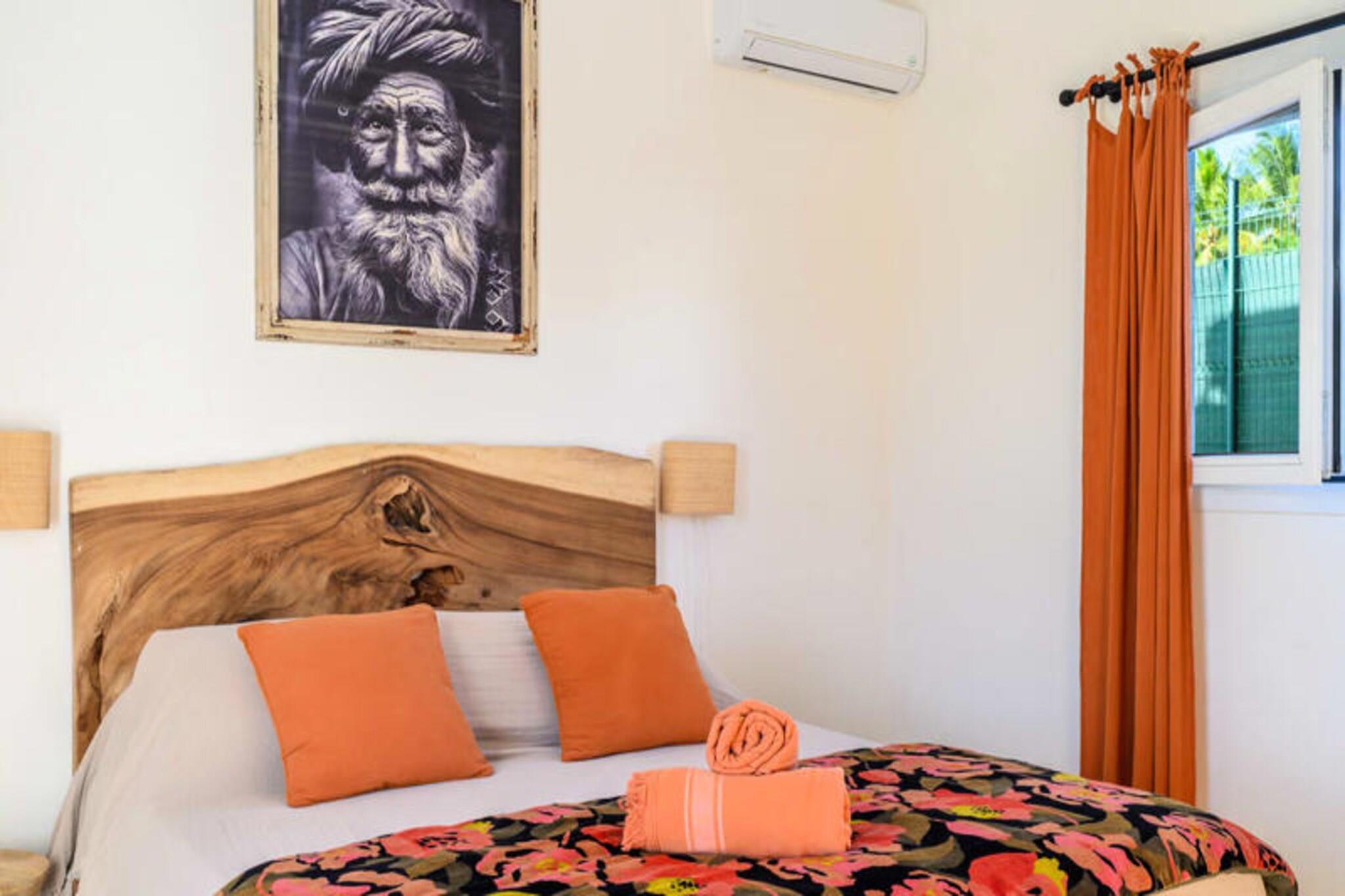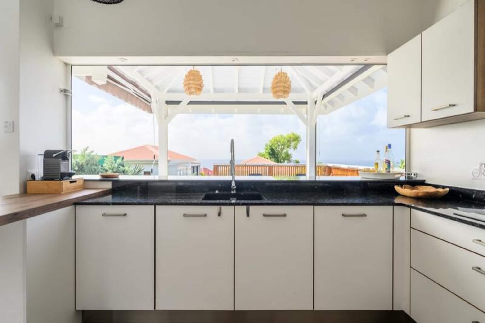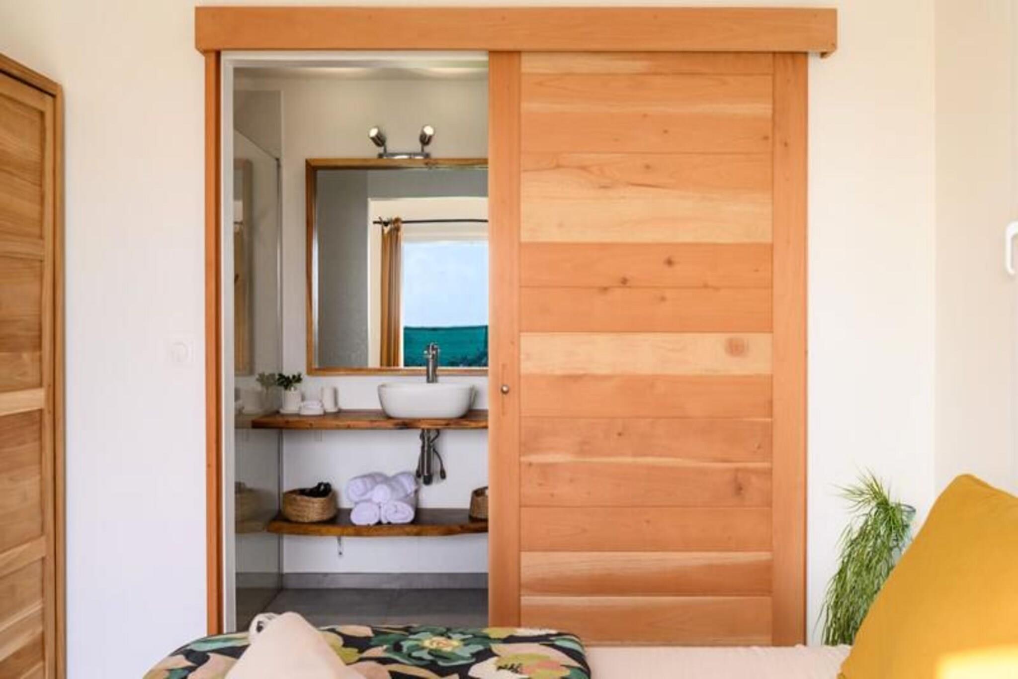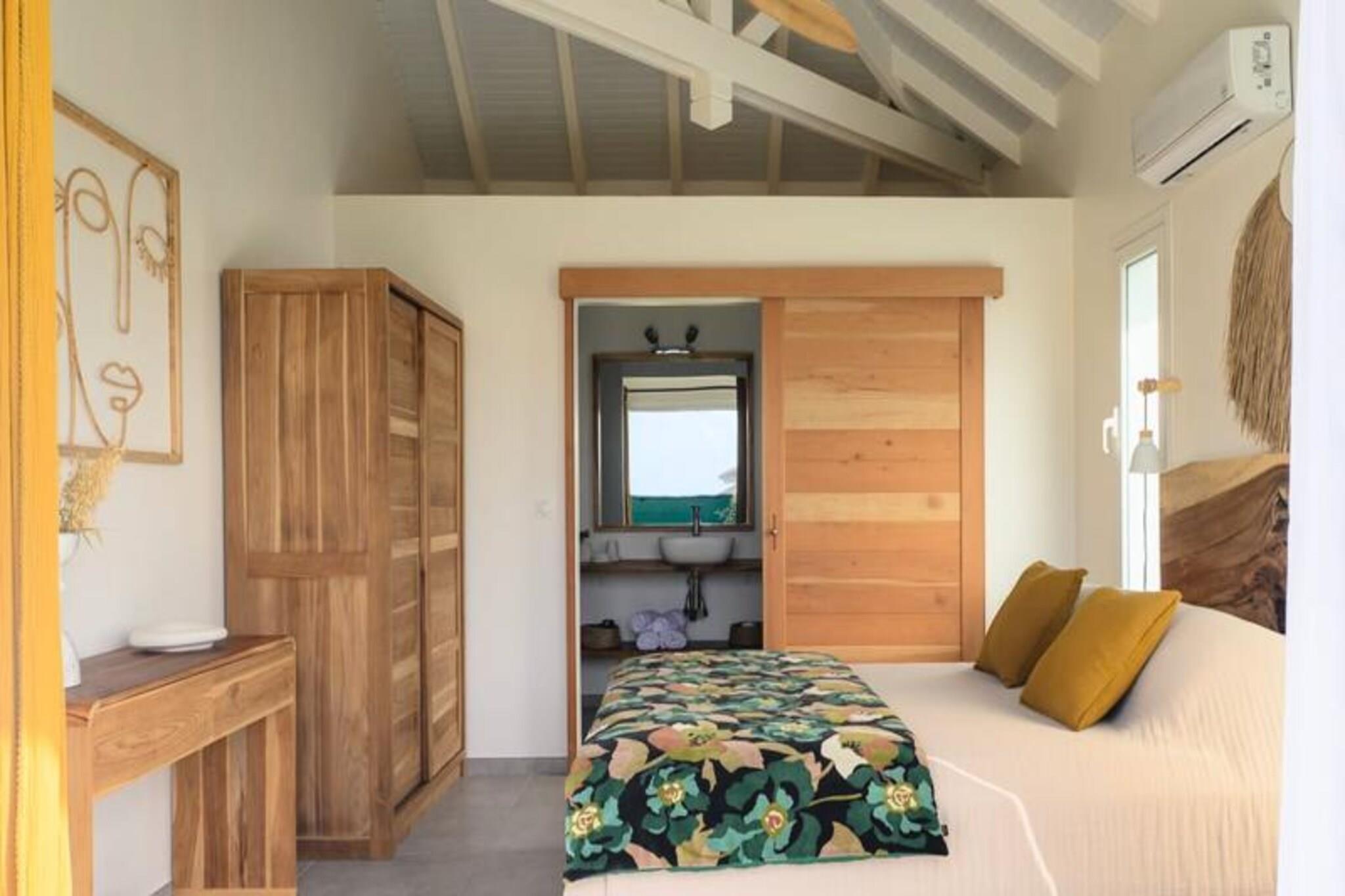 Nyd roen i Villa Paloma, et fredfyldt tilflugtssted beliggende på højderne i Grand-Bourg, der tilbyder betagende udsigt og moderne komfort. Denne elegante villa er et paradis for par eller venner, der søger en fredelig flugt under den caribiske sol. Med sin private infinity-pool, der glider problemfrit ind i horisonten, vil du blive fordybet i skønheden i Marie-Galantes uberørte landskaber. Villaens design kombinerer harmonisk moderne luksus med øens naturlige charme og skaber en atmosfære af ren afslapning. Indenfor tilbyder to suiter med aircondition, queensize-senge og eget badeværelse ultimativ komfort og privatliv. Soveværelserne, adskilt fra det primære opholdsområde, sikrer et roligt og afslappende ophold, perfekt til voksne, der rejser sammen. Det åbne køkken, udstyret med high-end apparater, flyder ubesværet ud på terrassen, hvor du kan nyde udendørs spisning, mens du nyder havudsigten. Stuen, komplet med et smart-tv og fiberoptisk internet, tilbyder et hyggeligt sted at slappe af efter en dag med udforskning. Villaen ligger kun fem minutter fra hjertet af Grand-Bourg og er ideelt placeret til at opleve det bedste af Marie-Galante. Oplev øens berømte hvide sandstrande, såsom La Feuillère og Anse Canot, der er perfekte til svømning og solbadning. Udforsk lokale markeder, nyd kreolske delikatesser, eller vandre gennem de frodige sukkerrørsmarker og naturskønne vandrestier, der definerer øens unikke charme. Med personlig concierge-service, herunder udflugter, biludlejning og eksklusive anbefalinger, sikrer Villa Paloma et uforglemmeligt ophold. Uanset om du slapper af ved infinity-poolen eller udforsker øens skjulte perler, lover dette tilflugtssted en ferie fyldt med afslapning, eventyr og Caribiens varme omfavnelse.