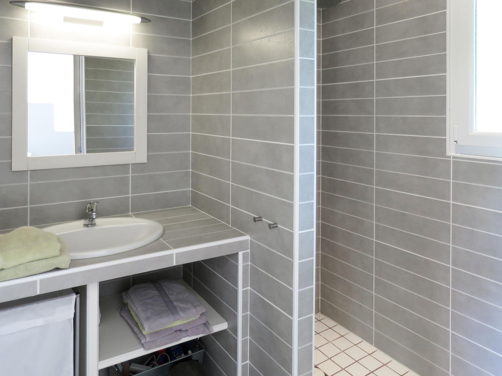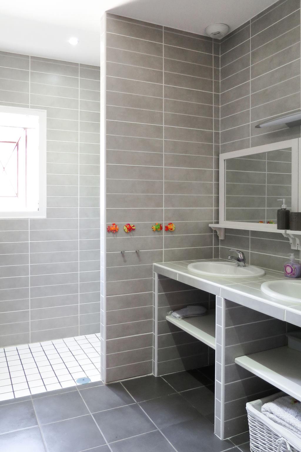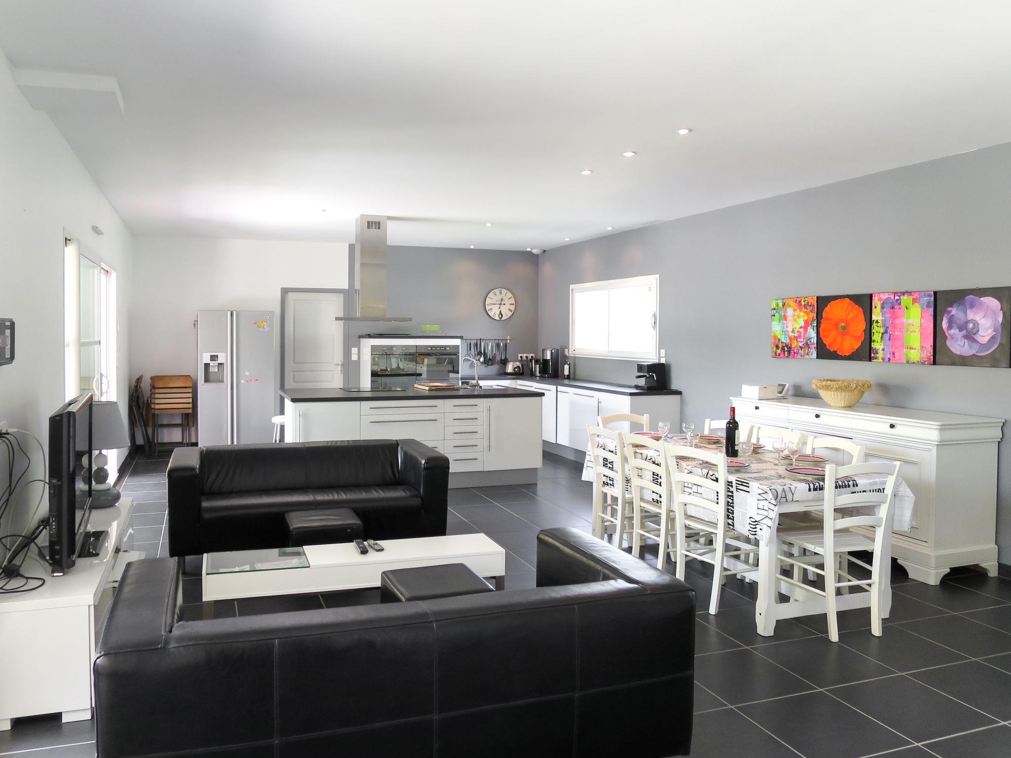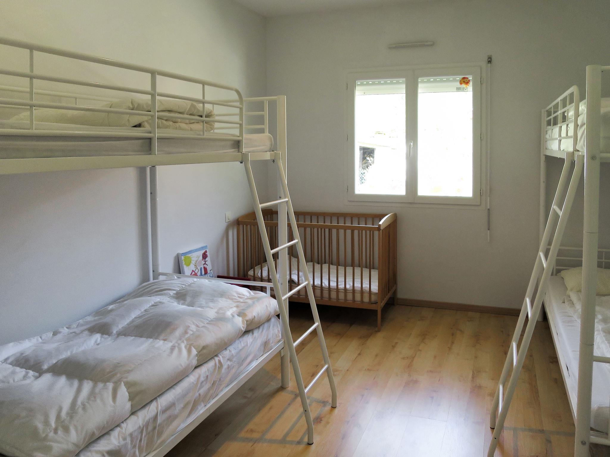 "Eugénie", 4-room house 150 m2. Beautiful and modern furnishings: living/dining room with dining table and satellite TV (flat screen), radio, CD-player and DVD. Exit to the terrace. 1 room with 1 french bed (160 cm, length 200 cm), shower and double hand-basin. 1 room with 2 beds (90 cm, length 190 cm), shower. Exit to the terrace. 1 room with 2 x 2 bunk beds (90 cm, length 190 cm). Open kitchen (oven, dishwasher, 4 ceramic glass hob hotplates, toaster, kettle, microwave, freezer, electric coffee machine) with bar. 2 sep. WC's. Electric heating. Terrace partly roofed. Terrace furniture, barbecue, deck chairs (5), box-room. Facilities: washing machine, dryer, iron, children's high chair, baby cot. Internet (WiFi, free). Please note: suitable for families. Non-smoking house. Maximum 1 pet/ dog allowed. Smoke alarm. Offer by a private individual according to Art. 155, IV of CGI.