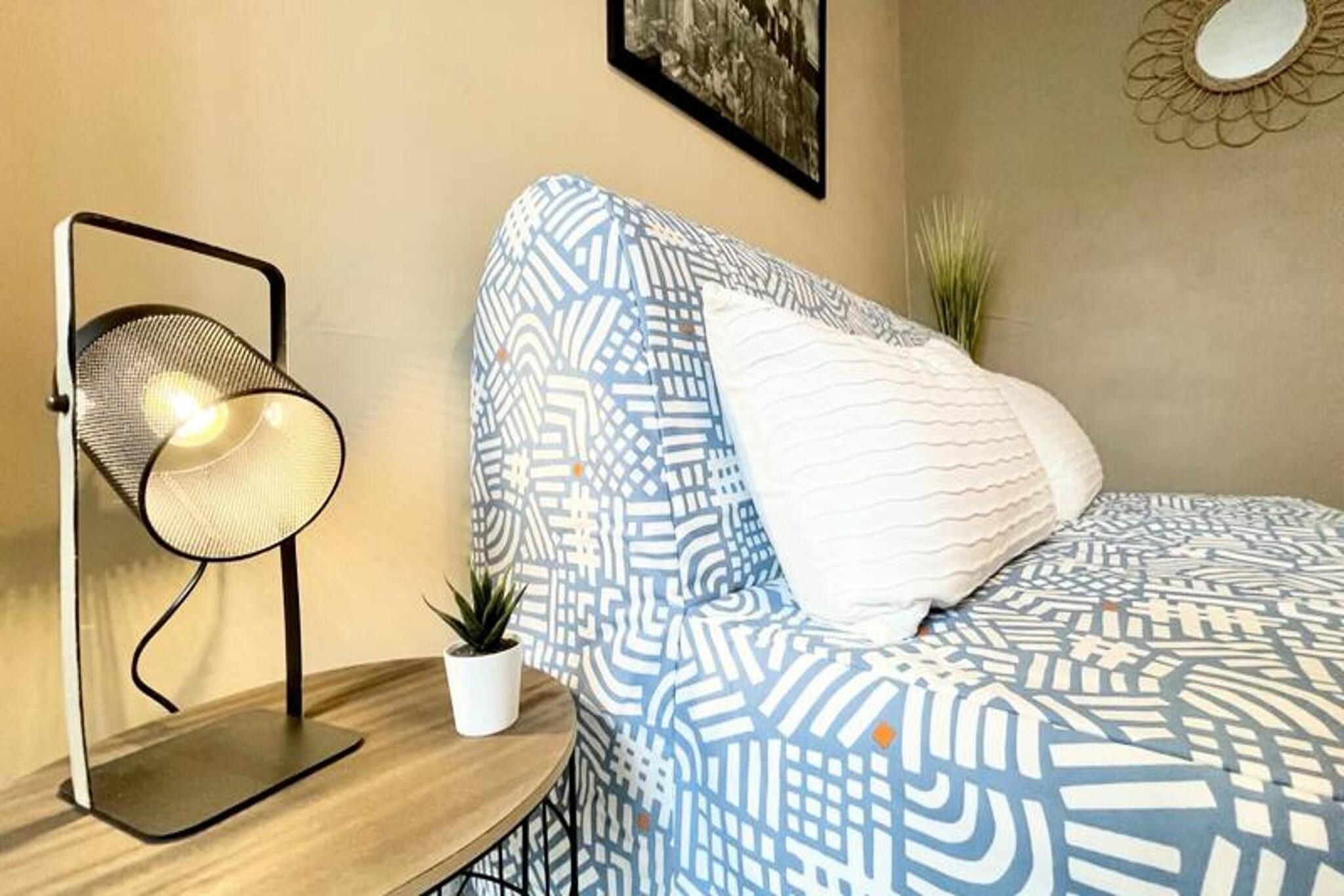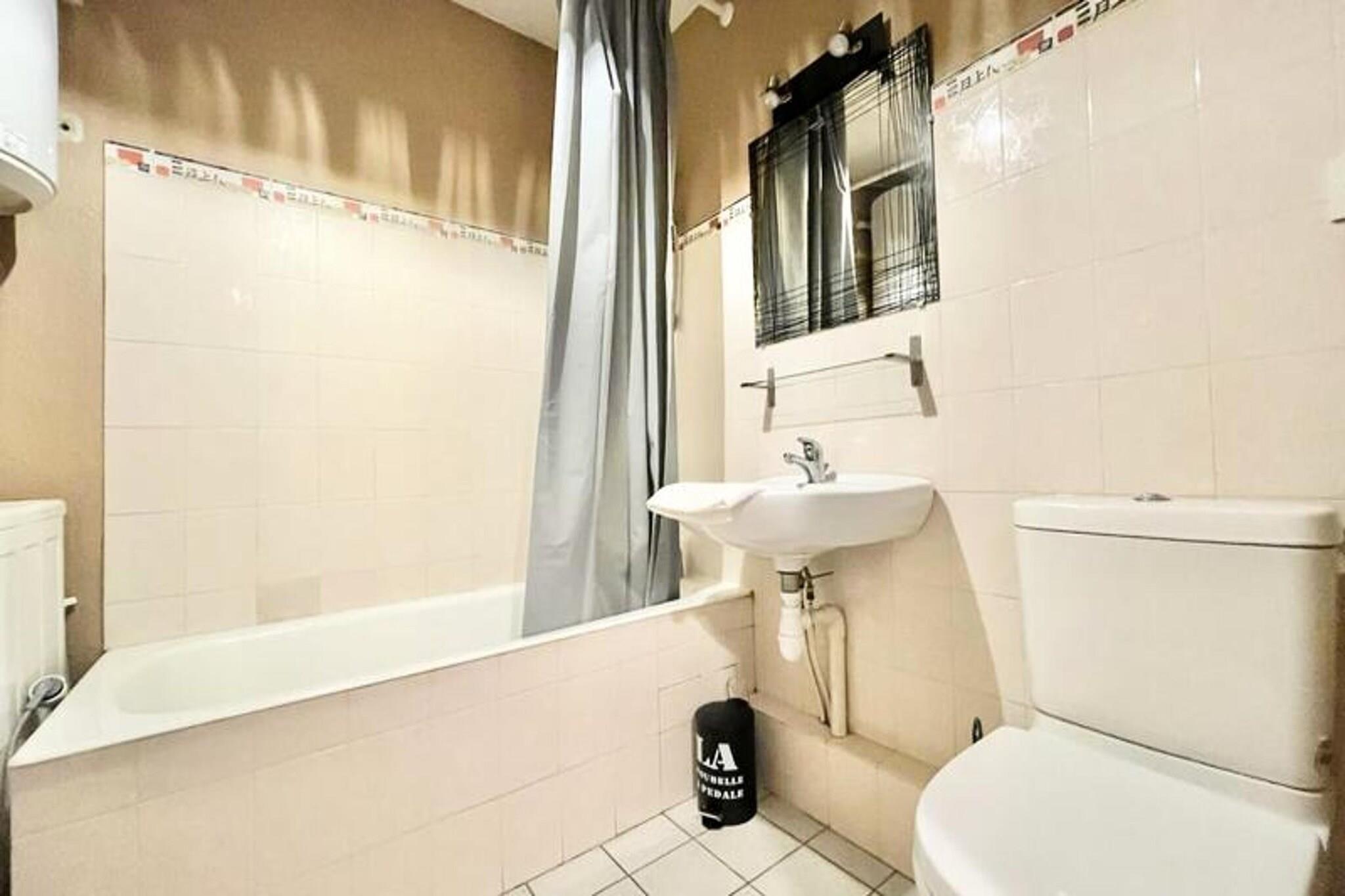 Denne rummelige T2-lejlighed tilbyder et behageligt ophold for op til 4 gæster. Beliggende i stueetagen med sikker dobbeltdørsindgang, det har en hyggelig stue/spisestue, et fuldt udstyret køkken, et soveværelse med en dobbeltseng og en sovesofa i stuen. Alle vinduer er udstyret med gardiner og skodder for privatlivets fred. Lejligheden er kæledyrsvenlig, så gæsterne kan medbringe deres kæledyr mod et ekstra gebyr. Det giver også væsentlige faciliteter, herunder en Bosch Tassimo-kaffemaskine (kapsler medfølger ikke), ovn, køleskab/fryser og en vaskemaskine. Sengelinned og håndklæder leveres til 4 gæster. Denne lejlighed ligger i et roligt boligområde, kun 3 minutters gang fra Grenoble School of Management (GEM) og 5 minutters gang fra togstationen. I nærheden finder du et supermarked og forskellige butikker på Cours Berriat. Byens centrum og Presqu'île er også let tilgængelige med sporvogn B, med et stop kun 2 minutter væk. Uanset om du er her for forretning eller fritid, har du alt, hvad du behøver inden for rækkevidde, inklusive bekvem adgang til motorvejen med afkørsel 2 i nærheden. Lejligheden er fuldt udstyret til et afslappende ophold med et funktionelt køkken med service til 4, en vaskemaskine og et rummeligt badeværelse med badekar, håndvask og toilet. Der er rigelig lagerplads med et dedikeret omklædningsrum til din bekvemmelighed. Gæsterne kan slappe af i de fredelige beboelsesmiljøer og nyde lejlighedens komfort med alle de nødvendige faciliteter for et problemfrit ophold.