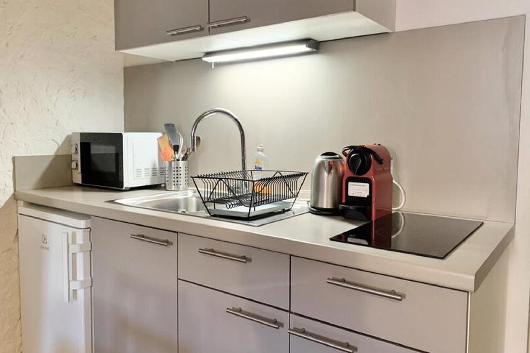 Denne charmerende T2-lejlighed, beliggende på 4. sal, tilbyder et hyggeligt og stilfuldt tilflugtssted i Grenobles historiske bymidte. Det har et mezzanin-soveværelse med en queensize-dobbeltseng og en sovesofa i stuen. Lejligheden er kæledyrsvenlig mod et tillægsgebyr og kommer med moderne bekvemmeligheder såsom gratis Wi-Fi, et fjernsyn, et bibliotek og rigelig opbevaringsplads. Sengelinned og håndklæder til 4 personer leveres ved ankomsten, hvilket sikrer et behageligt ophold. Denne lejlighed er ideelt beliggende i gåafstand fra forskellige butikker, caféer og markeder. Et bageri, købmand, apotek og restaurant ligger kun 1 minut væk til fods. Det historiske centrum med dens gågader, barer og restauranter ligger kun 2 minutter væk. Derudover er der en biograf i nærheden, og præfekturet er kun 5 minutter til fods, perfekt til alle administrative opgaver. Offentlige transportmuligheder, herunder sporvogn A ved Verdun Préfecture (3 minutter til fods) og Hubert Dubedout (3 minutter), gør det nemt at udforske byen og de omkringliggende områder. Det fuldt udstyrede køkken inkluderer en Krups Nespresso-maskine (kapsler medfølger ikke), mikroovn, køleskab/fryser og kedel, der giver alt hvad du behøver til dit ophold. Badeværelset har bruser og toilet. Denne lejlighed kombinerer moderne bekvemmeligheder med et strejf af karakter, hvilket sikrer en bekvem og behagelig oplevelse.