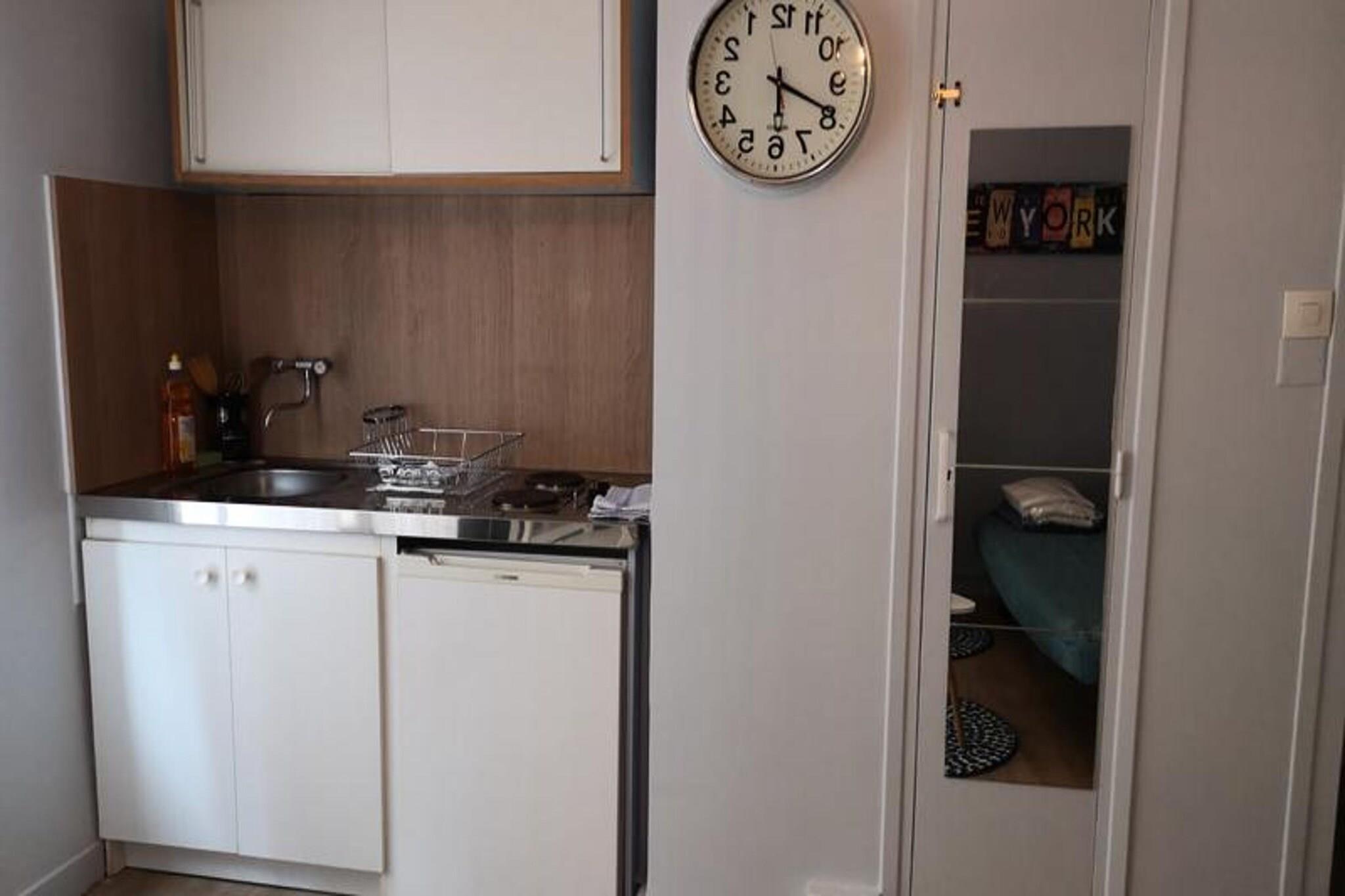 Denne hyggelige studiolejlighed tilbyder et komfortabelt ophold med en sovesofa i opholdsstuen, ideel til to gæster. Det er kæledyrsvenligt, så du kan medbringe din lodne ven mod et ekstra gebyr. Lejligheden har moderne bekvemmeligheder, herunder et fjernsyn, gratis trådløs internetadgang, en ventilator samt sengelinned og håndklæder ved ankomsten. Der er også rigelig opbevaringsplads, et tørrestativ og et lille kontorområde for ekstra bekvemmelighed. Lejligheden ligger i det livlige Championnet-kvarter, kun 5 minutters gang fra det charmerende Place Victor Hugo og 8 minutters gang fra Grenobles historiske centrum. Området er rigt med eklektiske butikker, verdensrestauranter, antikvitetshandlere, bagerier, ostebutikker og kunstgallerier. Du vil finde adskillige caféer og restauranter inden for gåafstand, perfekt til at opdage den lokale kultur. Offentlig transport er let tilgængelig, med sporvogn A & B stopper kun 6 minutter væk og sporvogn C kun 2 minutter væk til fods. Lejligheden er fuldt udstyret til at sikre et problemfrit ophold. Det omfatter et kompakt køkken med køleskab, mikroovn, kedel, Dolce Gusto-kaffemaskine, kogeplader og et bord med tre stole. Badeværelset har bruser og toilet, hvilket gør det praktisk til alle dine behov. Parkering er tilgængelig omkring bygningen og på nærliggende parkeringspladser for nem adgang.