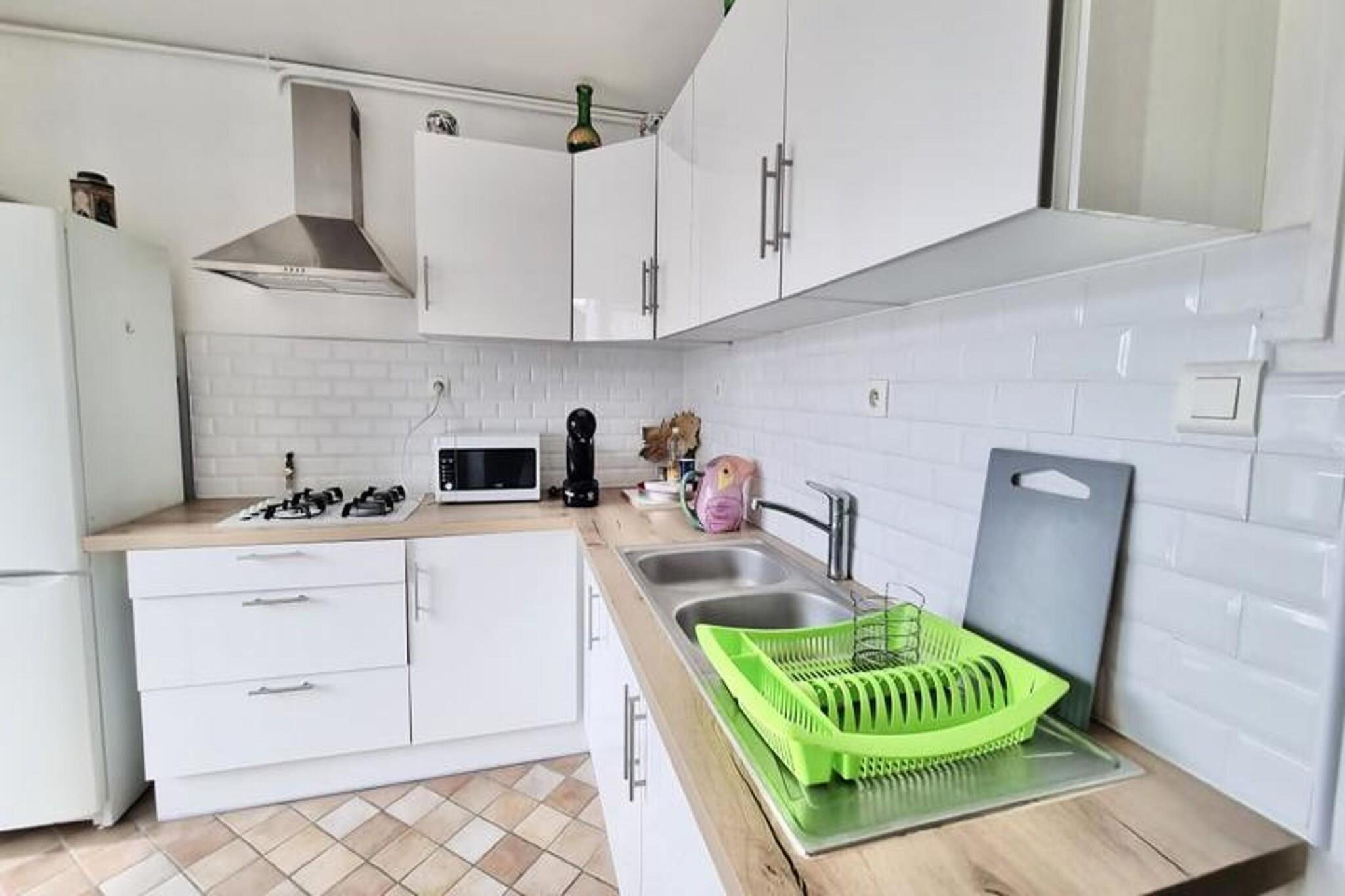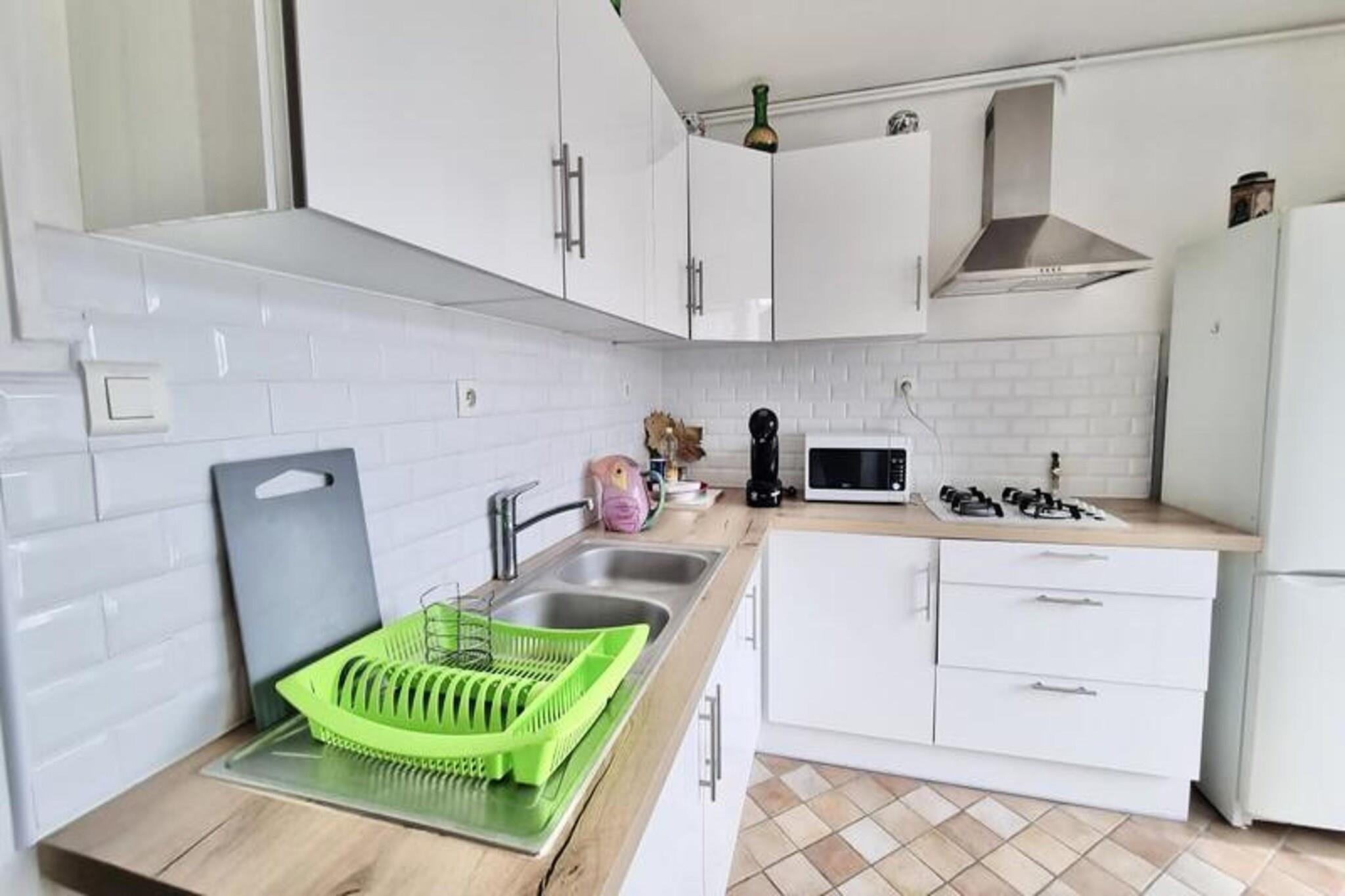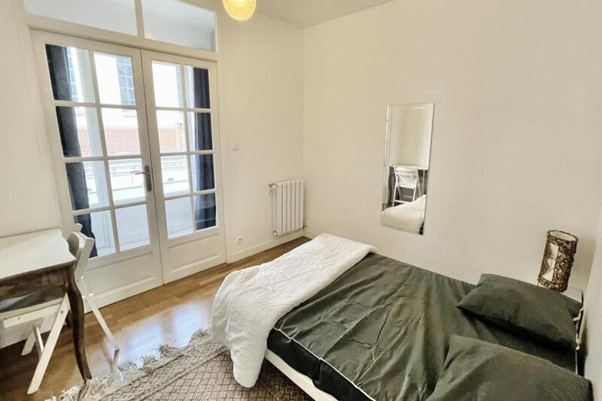 Denne rummelige T5 lejlighed, beliggende på 4. sal med elevator, tilbyder et behageligt ophold med 5 sovepladser. Det har et soveværelse med en dobbeltseng, tre værelser med enkeltsenge og en sovesofa til to personer i stuen, hvilket gør den velegnet til op til 7 gæster. Lejligheden er kæledyrsvenlig, så du kan medbringe dit kæledyr. Det er udstyret med bekvemmeligheder såsom sengetøj, håndklæder til 7 personer og væsentlige køkkenapparater som mikroovn, køleskab og komfur, hvilket sikrer et bekvemt og afslappende ophold. Lejligheden er centralt beliggende i Grenoble, kun 10 minutter fra togstationen og kun 5 minutter fra "Gares" sporvognsstoppestedet, der tilbyder nem adgang til resten af ??byen. Det omkringliggende område er rigt med attraktioner, caféer og markeder, hvilket gør det til et ideelt sted at udforske. Inden for gåafstand finder du forskellige butikker, spisesteder og lokale markeder, perfekt for dem, der ønsker at opleve den lokale kultur. Lejligheden har et fuldt udstyret køkken, så du nemt kan tilberede dine måltider. Den rummelige stue åbner ud til en gennemgående balkon, der tilbyder en åben udsigt over byen. Badeværelset er udstyret med en stor bruser, og ejendommen tilbyder alle de nødvendige faciliteter til et behageligt ophold. Uanset om du besøger for forretning eller fritid, har denne lejlighed alt hvad du behøver for en problemfri oplevelse.