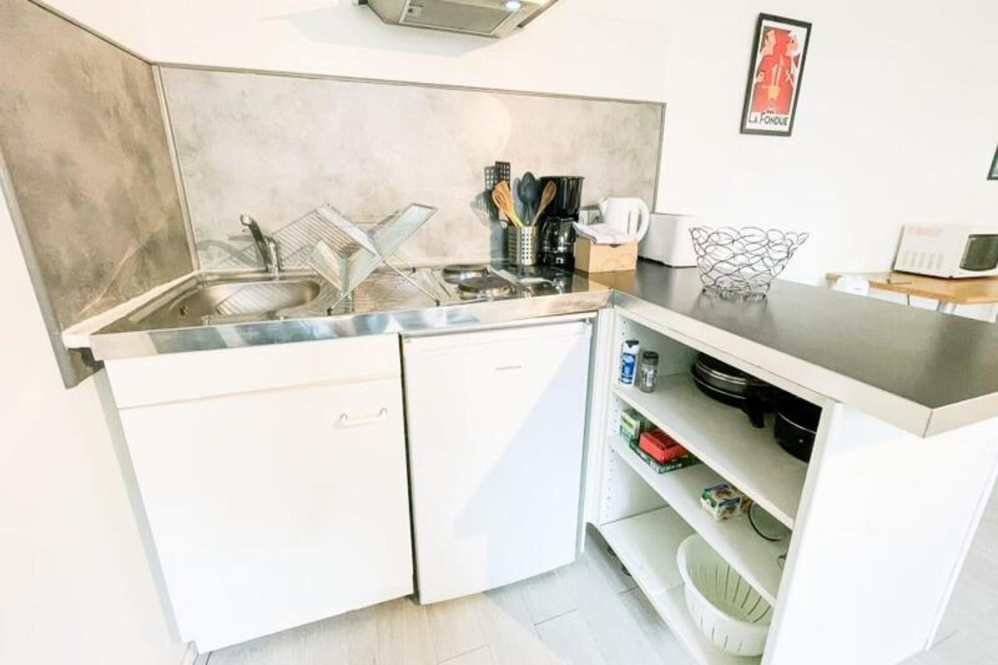 Denne hyggelige og fredelige studiolejlighed tilbyder et behageligt ophold for op til 4 gæster, med et velindrettet soveområde med en rigtig 140 cm seng og et opholdsområde med sofa og spisebord. Lejligheden er kæledyrsvenlig, så dine lodne venner er velkomne til at slutte sig til dig. Gæsterne kan nyde bekvemmeligheden med gratis Wi-Fi, et fjernsyn og alle nødvendige faciliteter såsom sengelinned og håndklæder ved ankomsten. Lejligheden er designet til afslapning og komfort og tilbyder et roligt tilflugtssted i hjertet af Grenoble. Studioet ligger i det pulserende Hypercenter-kvarter, kun 3 minutters gang fra det historiske centrum og Halles Sainte Claire-markedet. Dette område er fyldt med charmerende butikker, caféer og fremragende restauranter, der giver en livlig atmosfære hele dagen. Det daglige marked, der også er åbent om søndagen, bidrager til kvarterets tiltrækningskraft. Gæsterne kan nemt udforske byen til fods eller drage fordel af det nærliggende sporvognsstoppested "Sainte Claire les Halles", kun få minutter væk. Studiet er fuldt udstyret med et køkkenområde med opvaskemaskine, ovn, kogeplader, køleskab/fryser og en Dolce Gusto-kaffemaskine, så gæsterne nemt kan tilberede måltider. Det moderne badeværelse har bruser og toilet, og yderligere faciliteter såsom brødrister, kedel og rigelig opbevaringsplads sikrer et behageligt og bekvemt ophold.