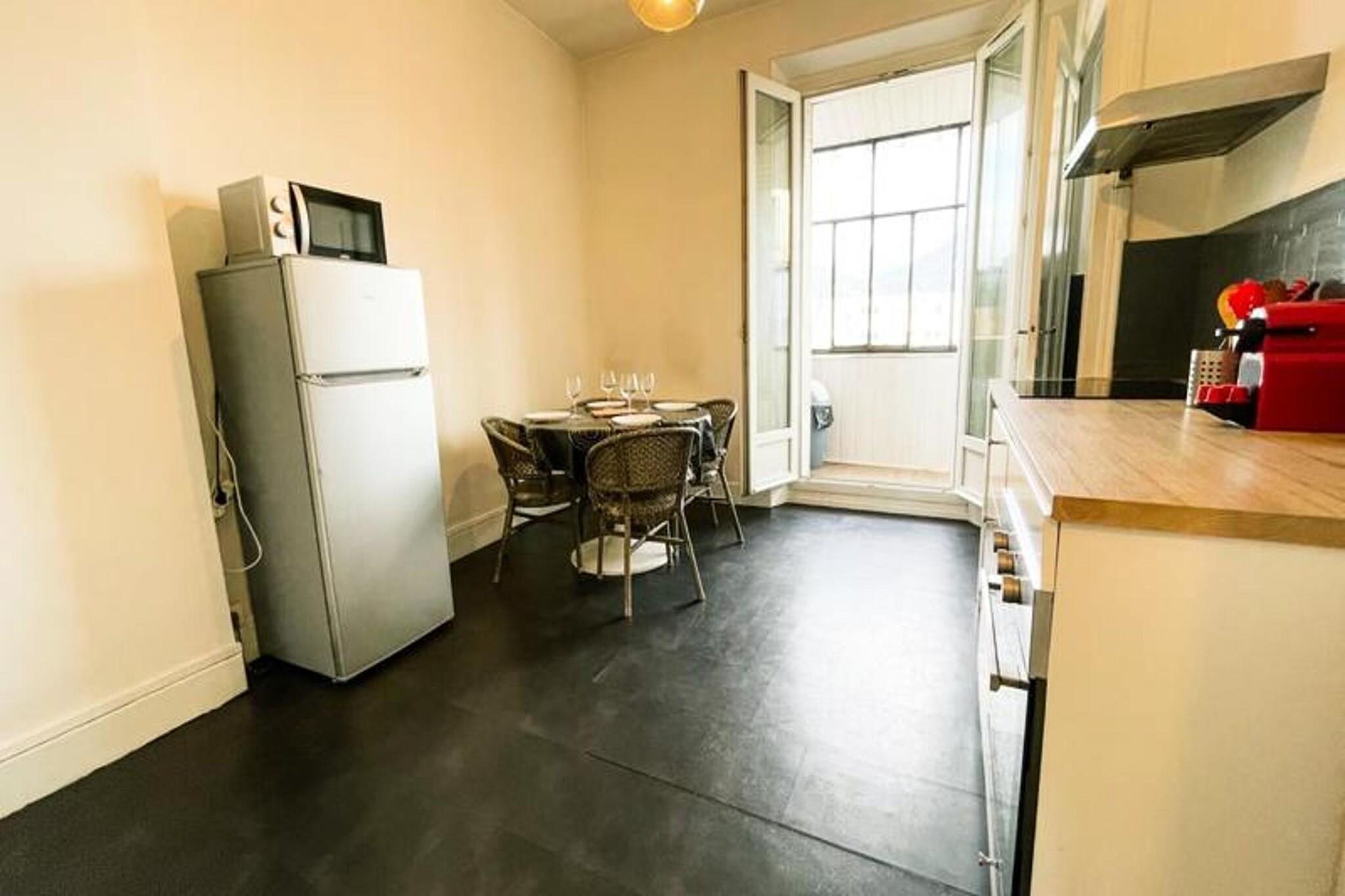 Denne lyse og hyggelige lejlighed byder på et behageligt ophold for op til fire gæster, med en dobbeltseng på mezzaninen og en sovesofa i stuen. Ejendommen er kæledyrsvenlig og omhyggeligt møbleret og inkluderer sengetøj, håndklæder, et tv og højhastigheds-Wi-Fi. Balkonen byder på en fantastisk udsigt over bjergene, perfekt til afslapning, mens lejlighedens varme indretning og naturlige lys får den til at føles som hjemme. Uafhængig adgang sikrer privatlivets fred, med alt sørget for en problemfri oplevelse. Denne lejlighed ligger nær Place Saint Bruno og tilbyder nem adgang til et travlt kvarter fyldt med charme. Saint Bruno-markedet, der ligger kun 300 meter væk, løber fra tirsdag til søndag og tiltrækker mange besøgende. Du finder caféer, barer, restauranter og butikker som bagerier og købmandsforretninger inden for gåafstand. Den centrale togstation ligger kun 700 meter væk, mens den pulserende bymidte er let tilgængelig til fods eller med sporvogn. Lejligheden har et fuldt udstyret køkken, herunder en keramisk kogeplade, ovn, køleskab/fryser, mikroovn, kaffemaskine og vaskemaskine. Badeværelset har en moderne bruser i italiensk stil og separate toiletter, hvilket sikrer komfort og bekvemmelighed. En rummelig spiseplads og ryger balkon gør det til et ideelt sted til afslapning. Sporvognsstoppestedet Saint Bruno (sporvogn A og B) ligger kun 250 meter væk og forbinder dig ubesværet med resten af ??byen.