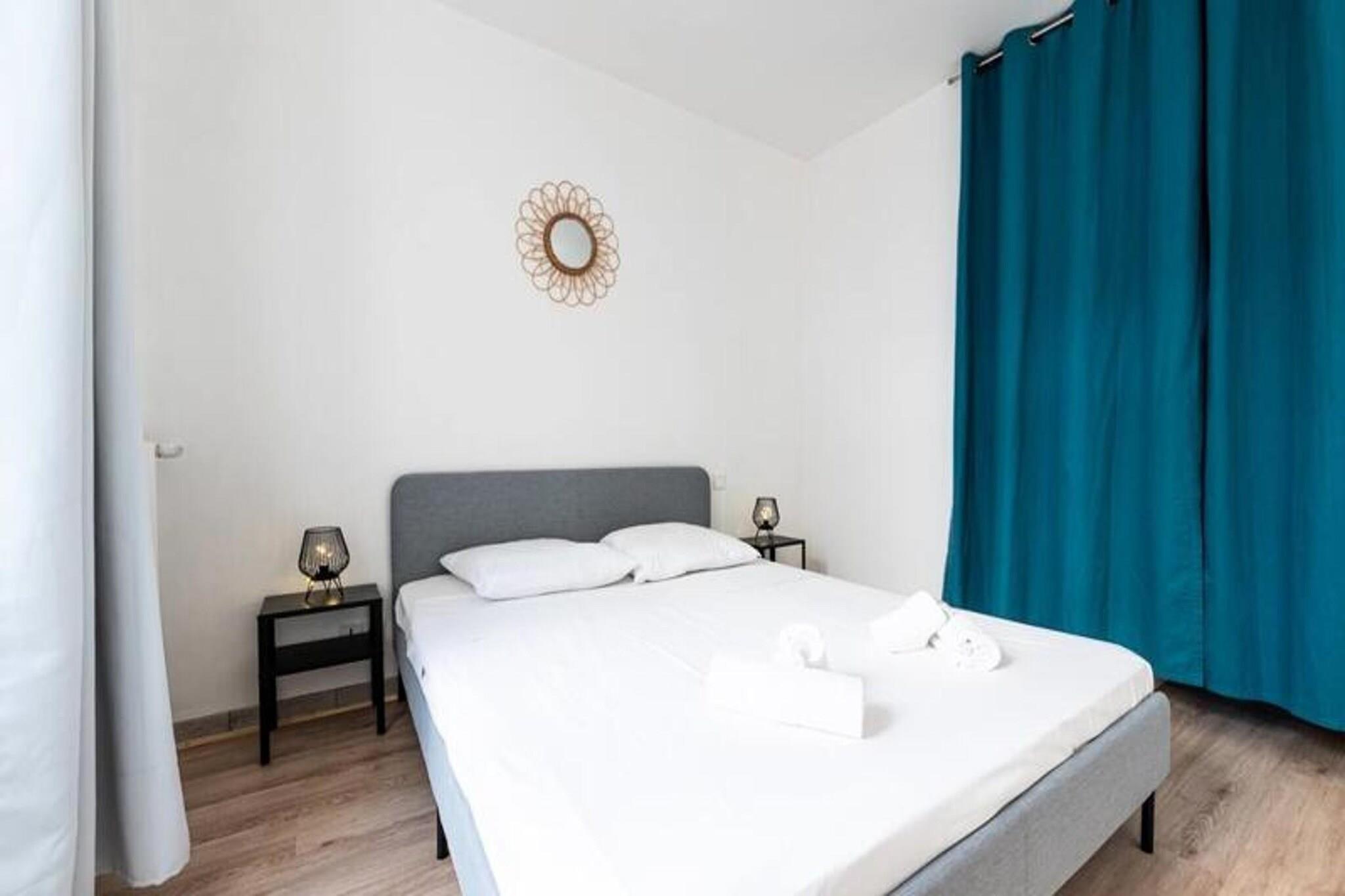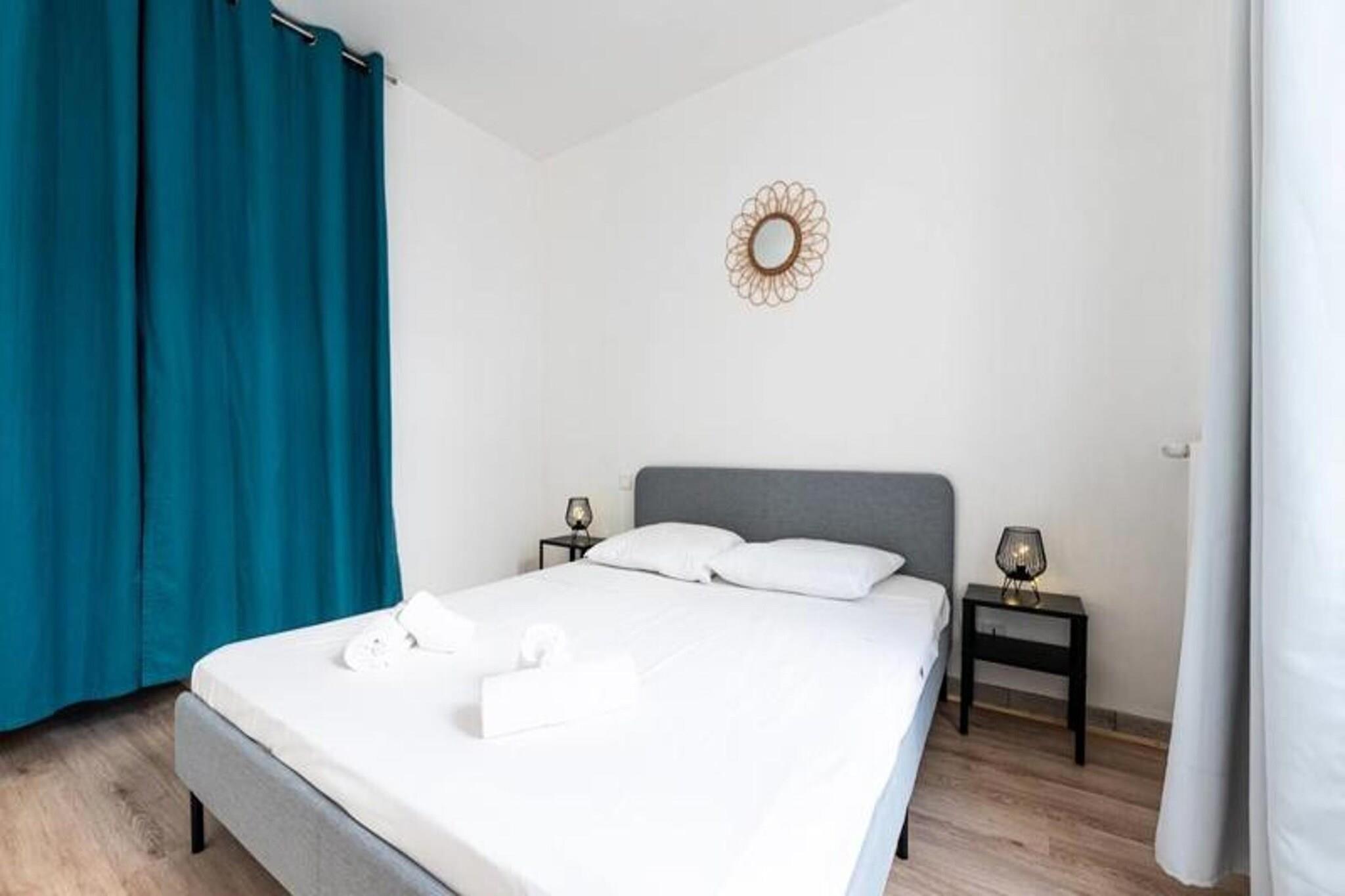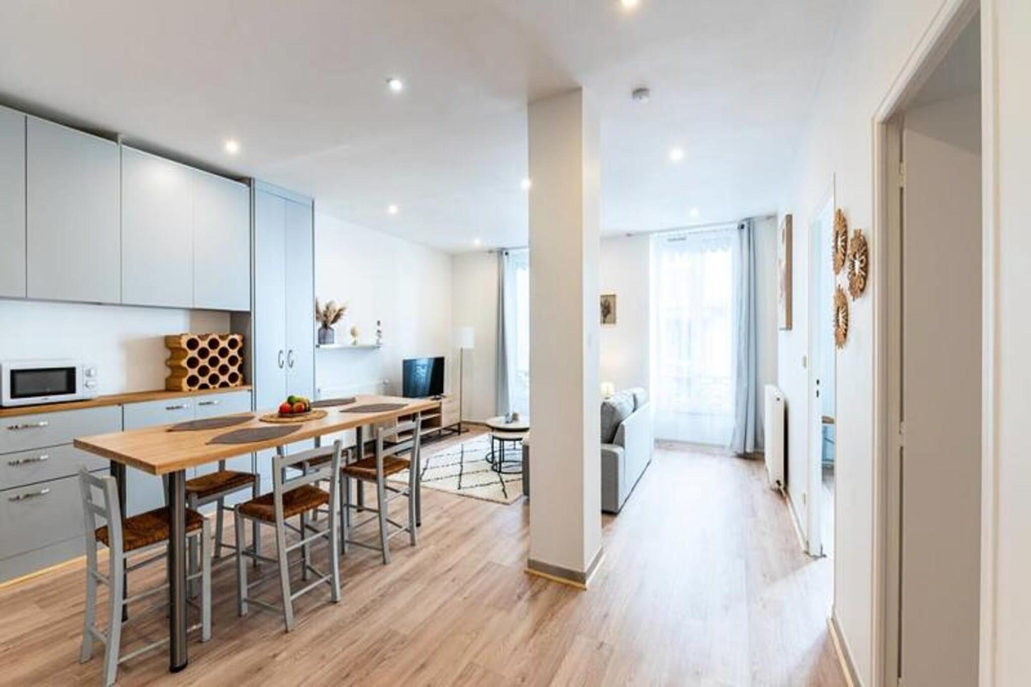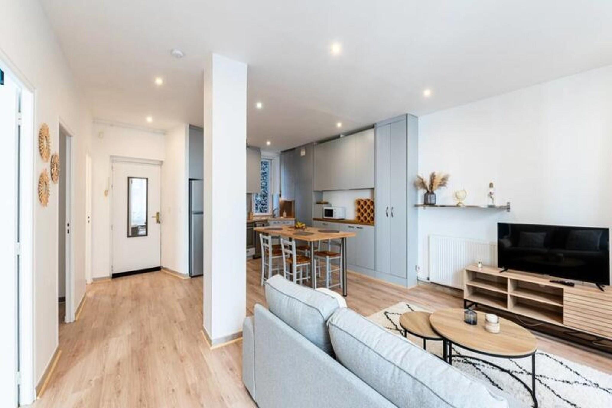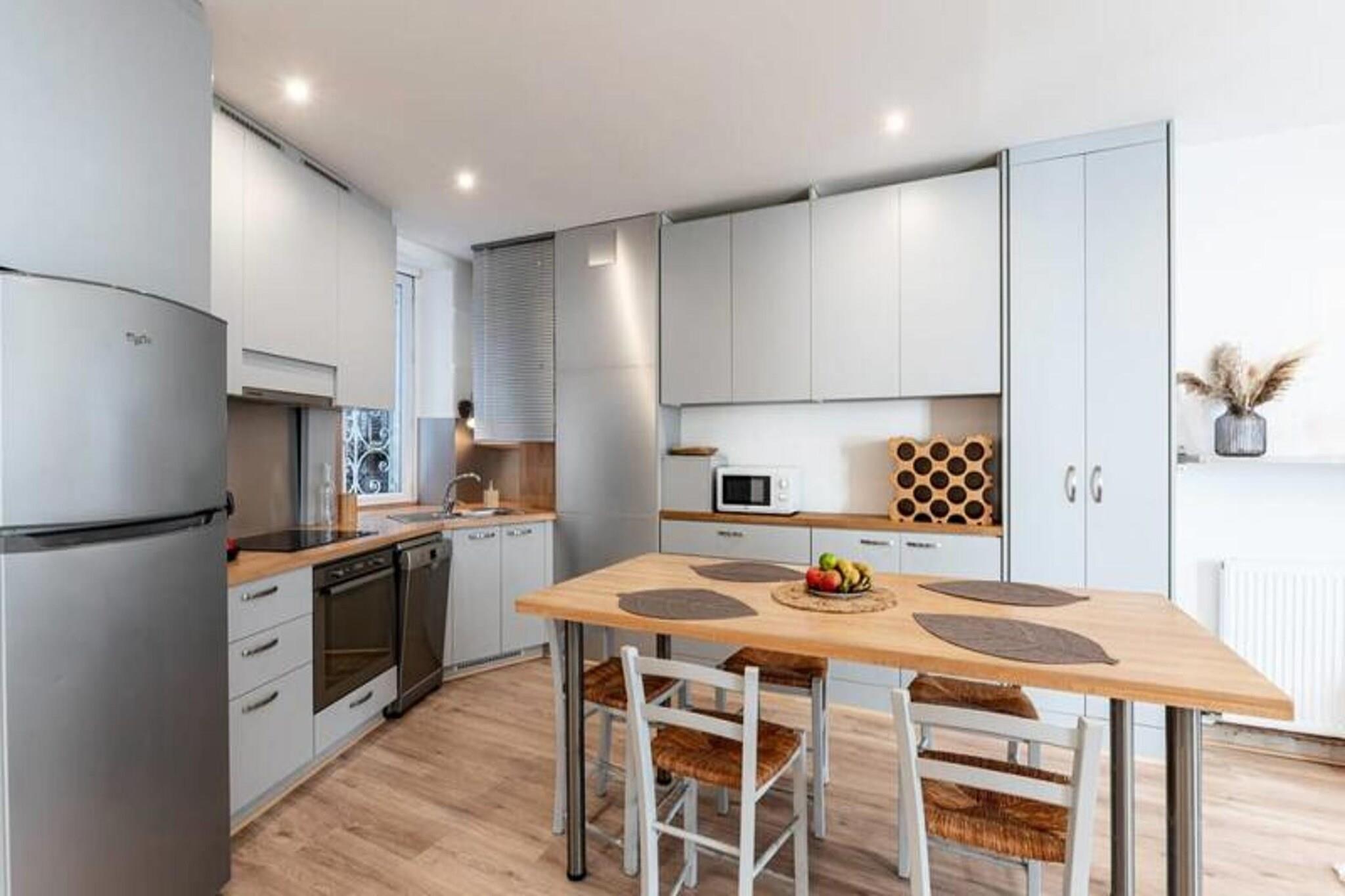 Denne elegante lejlighed på 60 m² tilbyder et behageligt ophold for op til 4 personer med to hyggelige soveværelser - det ene med en 160 cm dobbeltseng og det andet en 140 cm dobbeltseng. Det tilbyder kæledyrsvenlig indkvartering med trådløs internetadgang, tv og sengetøj til alle gæster. Lejligheden er fuldt udstyret til et afslappende ophold, perfekt til både korte og længerevarende besøg. Lejligheden er ideelt beliggende kun 3 minutter til fods fra sporvognsstoppestedet "Alsace Lorraine", hvilket gør det nemt at udforske byen. Busstationen og Grenoble Ecole de Management (GEM) er kun 5 minutter væk, mens byens centrum er en kort 10-minutters sporvognstur væk. Udstillingscentret ALPEXPO ligger kun 30 minutter derfra med sporvogn. I nærheden finder du et udvalg af butikker, restauranter, et bageri, et fitnesscenter og et supermarked for ekstra bekvemmelighed. Indvendigt kan lejligheden prale af en rummelig stue med spiseplads og et fuldt udstyret åbent køkken, herunder køleskab, mikroovn og væsentlige redskaber. Badeværelset har en moderne bruser, og alt sengetøj leveres for din komfort, hvilket sikrer et bekymringsfrit ophold.