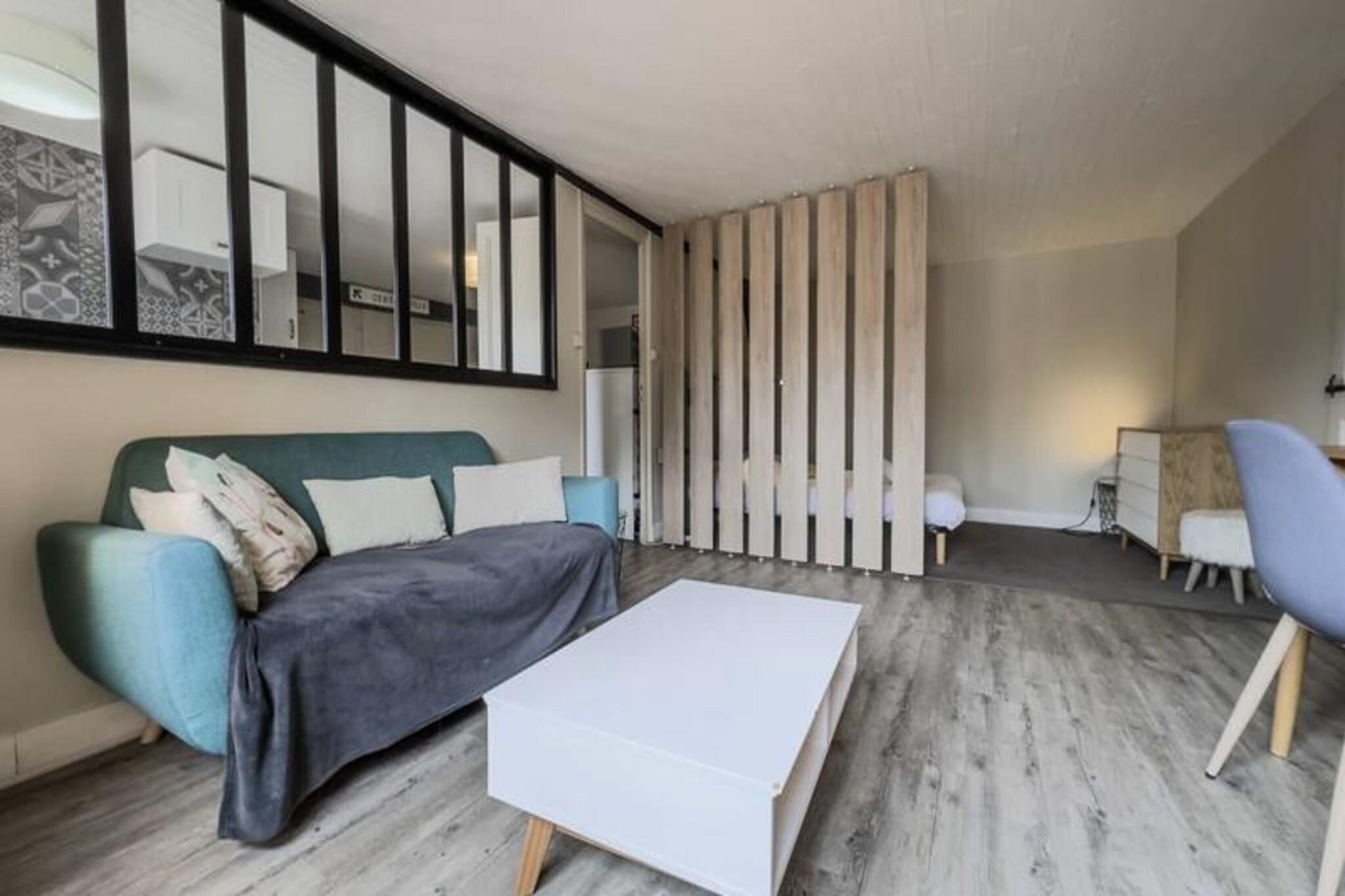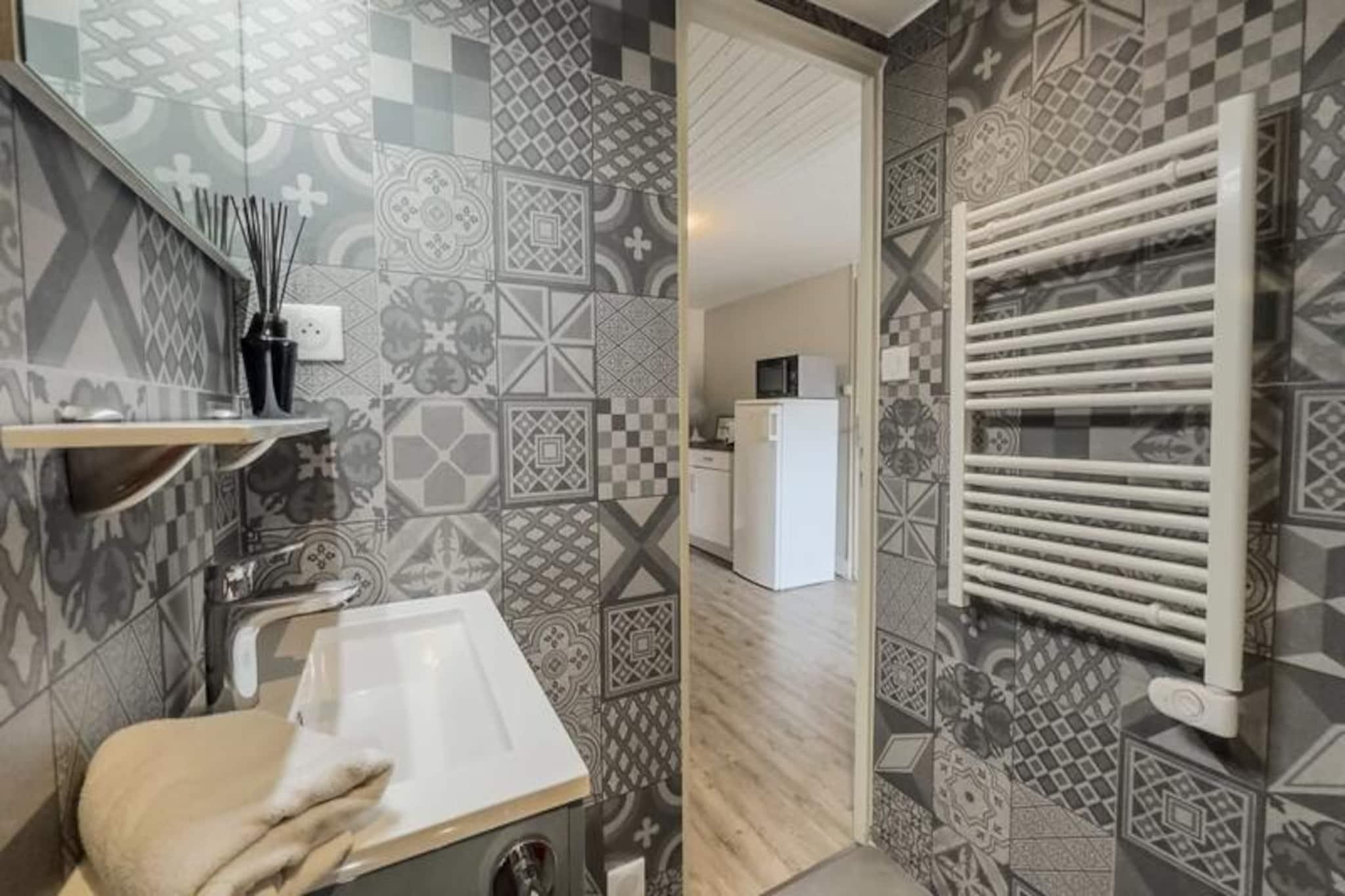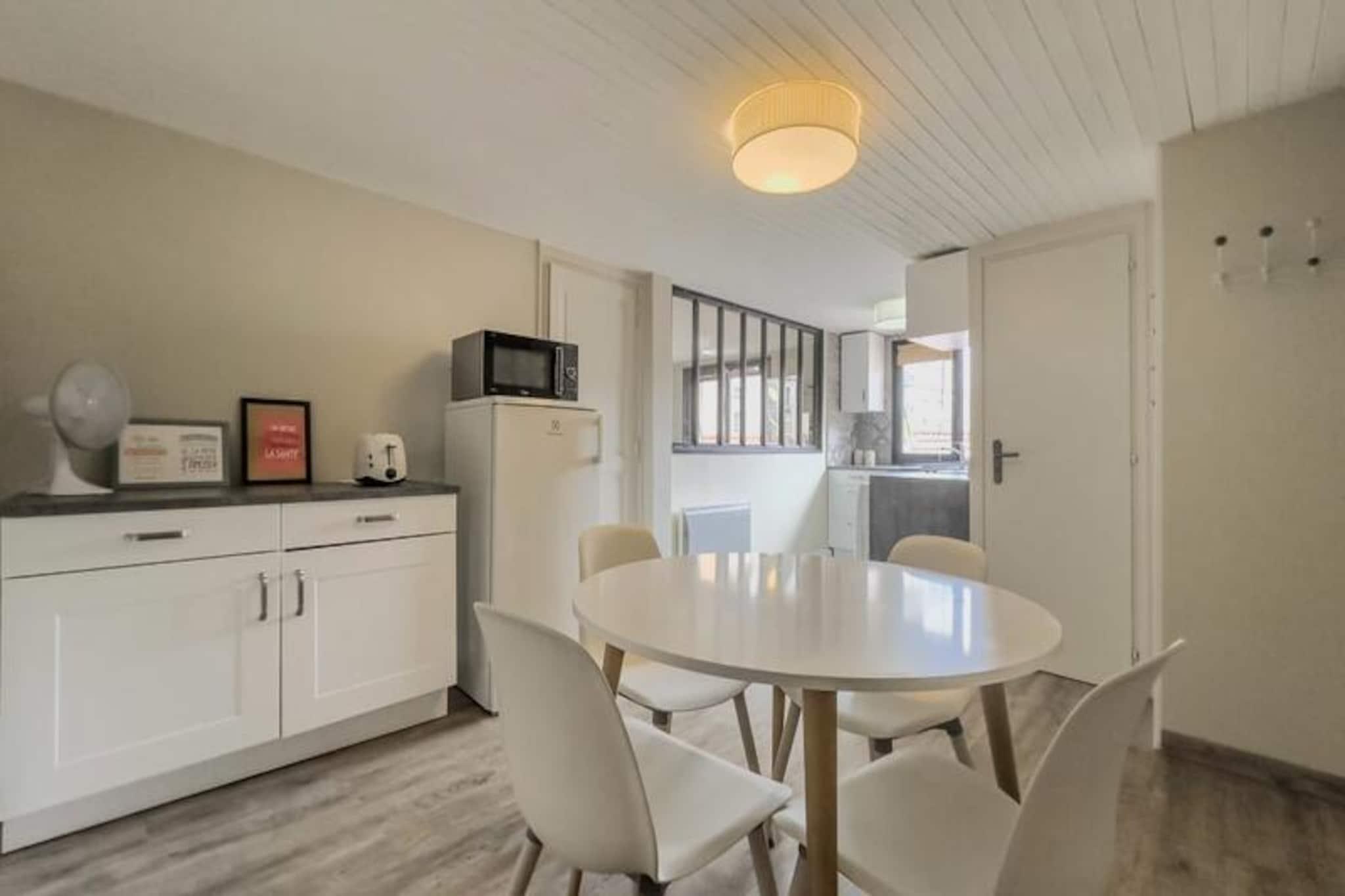 I hjertet af Grenobles historiske distrikt tilbyder denne charmerende lejlighed på 46 m² et dejligt urbant tilflugtssted for to. Beliggende på tredje sal blander ejendommen moderne bekvemmeligheder med den tidløse charme i byens pulserende centrum. Uanset om du besøger Grenoble i forbindelse med forretning eller fritid, er dette hyggelige sted den perfekte base for at udforske Grenobles kulturelle og arkitektoniske perler. Lejligheden har en åben planløsning, der maksimerer komfort og funktionalitet. Opholdsstuen indbyder til afslapning med en komfortabel sofa, sofabord og et fladskærms-tv, mens højhastighedsinternet sikrer, at du forbliver forbundet. Det tilstødende soveværelse, der er åbent til stuen, er møbleret med en blød dobbeltseng, blødt sengetøj og rigelig opbevaringsplads. Det fuldt udstyrede køkken er et paradis for hjemmekokke, komplet med kogeplade, mikrobølgeovn, køleskab/fryser, Nespresso-kaffemaskine og alt nødvendigt redskab. En spiseplads med bord og stole gør måltiderne til en fornøjelse. Badeværelset har et moderne brusebad, håndvask og toilet, med håndklæder og en velkomstpakke til din bekvemmelighed. Træd udenfor, og du vil opleve, at du er midt i Grenobles livlige gader. Lejligheden ligger kun 2 minutters gang fra Verdun Préfecture Tram A, der nemt forbinder dig til Fontaine, Echirolles og andre vigtige destinationer. Udforsk nærliggende attraktioner såsom Bastillen, museer og charmerende caféer, der ligger langs de brostensbelagte gader. Rejsende med kæledyr er velkomne mod et mindre tillægsgebyr. Med sin førsteklasses beliggenhed, gennemtænkte faciliteter og nemme adgang via en nøgleboks er denne lejlighed et ideelt valg til et problemfrit og mindeværdigt ophold i Grenoble. Uanset om du er her for at nyde historien, den lokale gastronomi eller blot slappe af, sikrer denne ejendom en behagelig og berigende oplevelse.