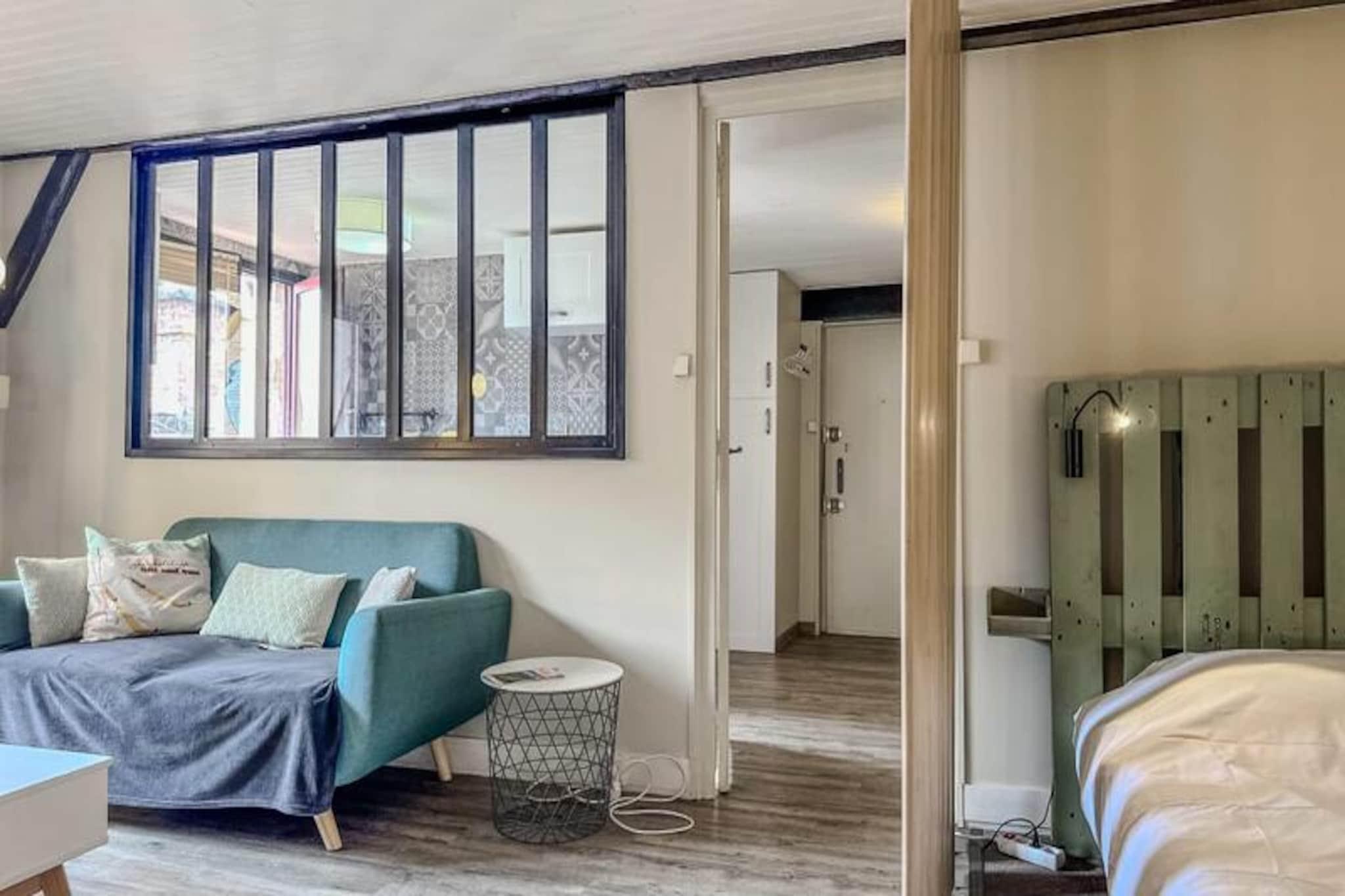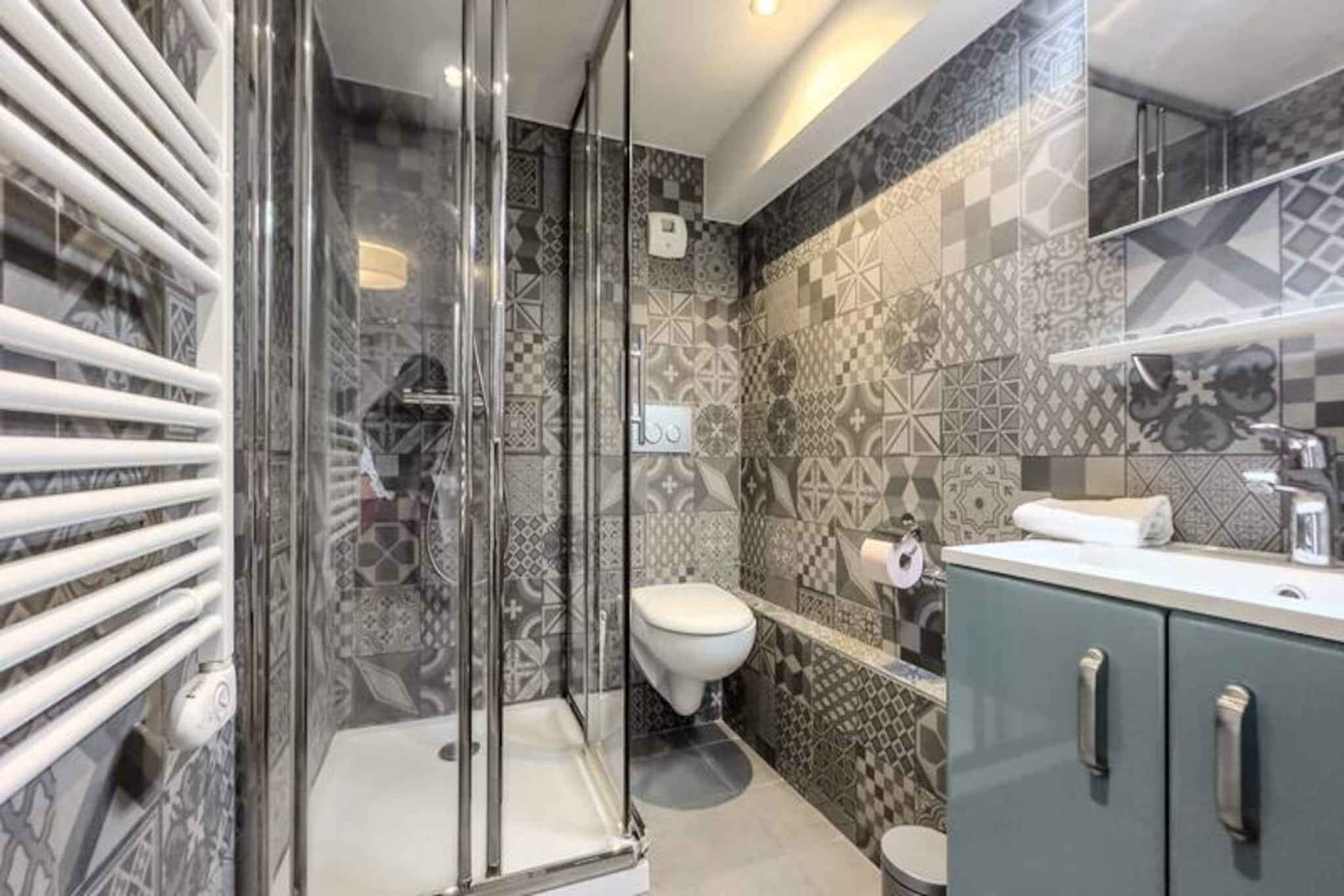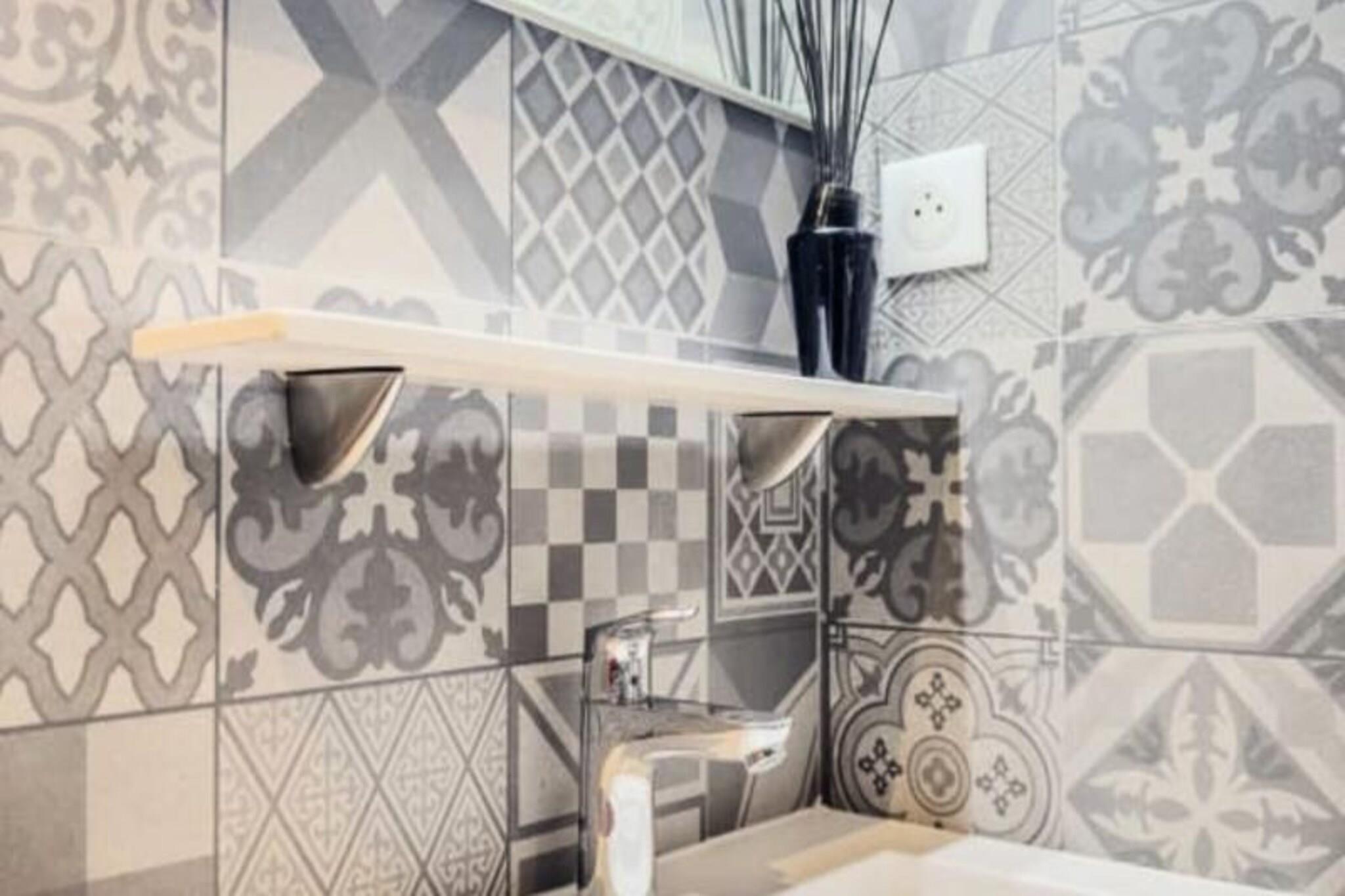 I hjertet af Grenobles historiske distrikt tilbyder denne charmerende lejlighed på 46 m² et dejligt urbant tilflugtssted for to. Beliggende på tredje sal blander ejendommen moderne bekvemmeligheder med den tidløse charme i byens pulserende centrum. Uanset om du besøger Grenoble i forbindelse med forretning eller fritid, er dette hyggelige sted den perfekte base for at udforske Grenobles kulturelle og arkitektoniske perler. Lejligheden har en åben planløsning, der maksimerer komfort og funktionalitet. Opholdsstuen indbyder til afslapning med en komfortabel sofa, sofabord og et fladskærms-tv, mens højhastighedsinternet sikrer, at du forbliver forbundet. Det tilstødende soveværelse, der er åbent til stuen, er møbleret med en blød dobbeltseng, blødt sengetøj og rigelig opbevaringsplads. Det fuldt udstyrede køkken er et paradis for hjemmekokke, komplet med kogeplade, mikrobølgeovn, køleskab/fryser, Nespresso-kaffemaskine og alt nødvendigt redskab. En spiseplads med bord og stole gør måltiderne til en fornøjelse. Badeværelset har et moderne brusebad, håndvask og toilet, med håndklæder og en velkomstpakke til din bekvemmelighed. Træd udenfor, og du vil opleve, at du er midt i Grenobles livlige gader. Lejligheden ligger kun 2 minutters gang fra Verdun Préfecture Tram A, der nemt forbinder dig til Fontaine, Echirolles og andre vigtige destinationer. Udforsk nærliggende attraktioner såsom Bastillen, museer og charmerende caféer, der ligger langs de brostensbelagte gader. Rejsende med kæledyr er velkomne mod et mindre tillægsgebyr. Med sin førsteklasses beliggenhed, gennemtænkte faciliteter og nemme adgang via en nøgleboks er denne lejlighed et ideelt valg til et problemfrit og mindeværdigt ophold i Grenoble. Uanset om du er her for at nyde historien, den lokale gastronomi eller blot slappe af, sikrer denne ejendom en behagelig og berigende oplevelse.