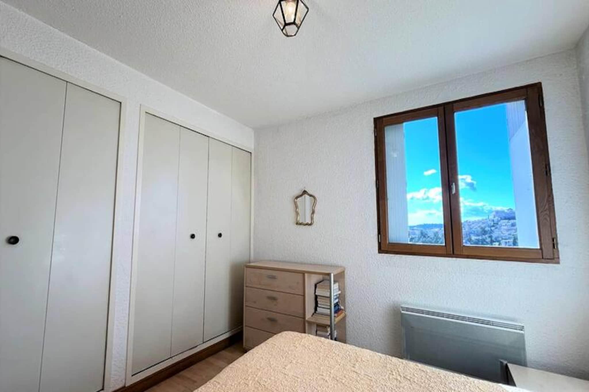 Højt over den charmerende landsby tilbyder denne dejlige toværelseslejlighed et roligt tilflugtssted med en fantastisk udsigt fra den sydvestvendte terrasse. Beliggende på øverste etage i 'Le SAN BASTIAN'-residensen, tilgængelig med elevator, kombinerer denne ejendom komfort og bekvemmelighed i rolige omgivelser. Uanset om du søger en fredelig flugt eller en base for at udforske regionen, er denne lejlighed det perfekte valg til din ferie. Forestil dig at nippe til din morgenkaffe på terrassen, mens solen bader landskabet i gyldent lys og skaber et øjeblik med ren afslapning. \n\nIndenfor kan lejligheden prale af en veldesignet planløsning med et fuldt udstyret køkken med ovn, mikrobølgeovn og elektrisk kaffemaskine, hvilket gør det nemt at tilberede måltider under dit ophold. Den primære opholdsstue er rummelig og indbydende, mens soveværelset tilbyder to hyggelige enkeltsenge til afslappende nætter. Et separat brusebad og toilet sikrer privatliv og praktisk anvendelighed. Residensen tilbyder også bekvem parkering, så du nemt kan udforske det omkringliggende område. Slutrengøring er inkluderet, så du kan fokusere helt på at nyde din tid her. \n\nBeliggenheden er ideel til at opdage regionens skønhed. Fra maleriske landsbyer til naturskønne stier byder området på uendelige muligheder for eventyr. Uanset om du vandrer gennem lavendelmarker, udforsker historiske steder eller blot nyder den provencalske charme, fungerer denne lejlighed som en indbydende base. Med sin fredelige atmosfære og gennemtænkte faciliteter er det et sted, hvor uforglemmelige minder skabes.