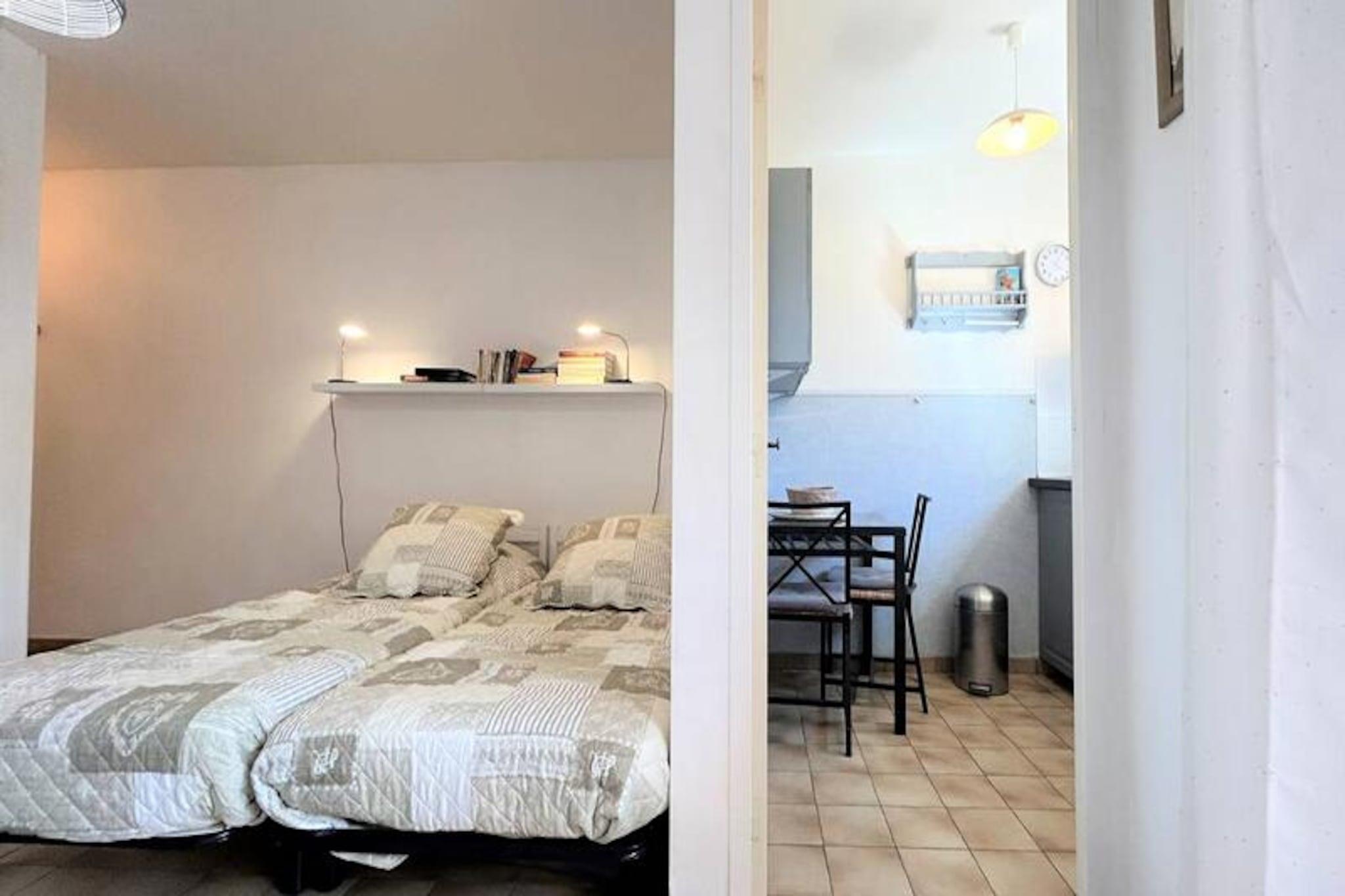 I hjertet af Provence, hvor de solbeskinnede landskaber møder charmen ved det franske landskabsliv, tilbyder denne dejlige studiolejlighed et roligt tilflugtssted for rejsende, der søger ro og komfort. Omgivet af frodigt grønt område tilbyder boligen en fredelig atmosfære, perfekt til afslapning efter en dag med udforskning af regionens skatte. Balkonen inviterer dig til at nyde din morgenkaffe, mens du nyder den beroligende udsigt over den omkringliggende natur. Indenfor er det 25 m² store studio omhyggeligt designet til at maksimere komfort og funktionalitet. Entréen har et praktisk skab til opbevaring, mens det fuldt udstyrede køkken indeholder alt, hvad du behøver for at tilberede måltider, fra mikrobølgeovn til elkedel og brødrister. Den primære opholdsstue med to hyggelige enkeltsenge åbner direkte ud til balkonen, hvilket skaber en problemfri forbindelse mellem inde og ude. Et moderne brusebad og separat toilet fuldender planløsningen og sikrer et behageligt ophold. Gæsterne kan også drage fordel af fælles parkering i den sikre bolig, hvilket gør det nemt at komme og gå, som man vil. Dette studio ligger i et roligt, men tilgængeligt område og er en ideel base for at opdage Provences skønhed. Fra charmerende landsbyer og pulserende markeder til naturskønne vinmarker og lavendelmarker tilbyder regionen uendelige muligheder for udforskning. Uanset om du besøger de historiske byer Aix-en-Provence eller Avignon, eller blot nyder den lokale gastronomi, placerer denne lejlighed dig i hjertet af det hele. Med slutrengøring inkluderet lover denne ejendom en problemfri og afslappende ferie. Perfekt til par eller solorejsende, det er en oase af fred i en af ??Frankrigs mest maleriske regioner.