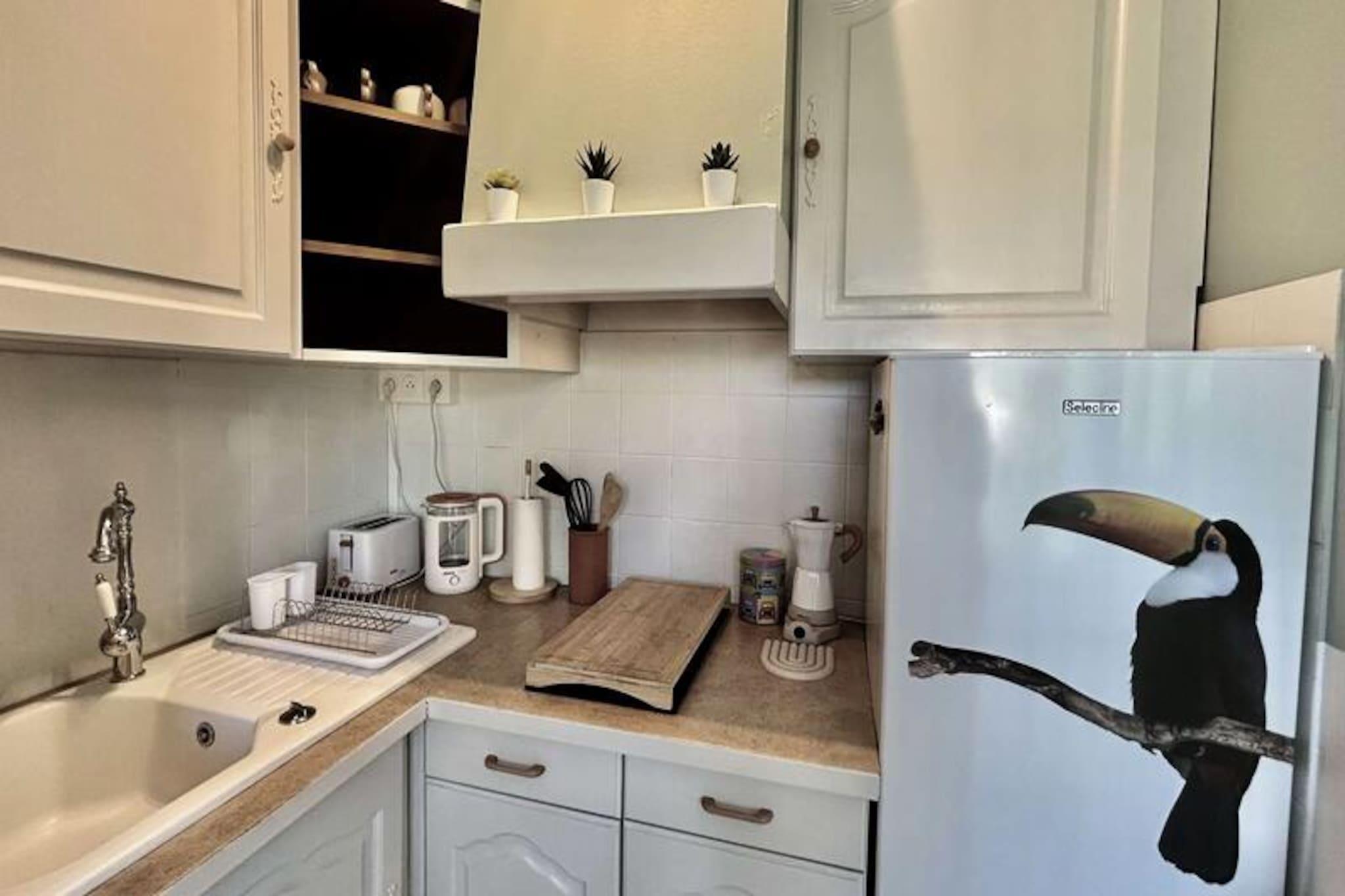 I hjertet af den maleriske Provence-region tilbyder denne charmerende studiolejlighed et roligt tilflugtssted kun få øjeblikke fra de berømte termiske bade og det pulserende lokale marked, der afholdes hver torsdag. Ejendommen, der ligger på 4. sal i den sikre 'Les Cèdres'-residens, kombinerer bekvemmelighed med ro, hvilket gør den til et ideelt valg for par eller solorejsende, der søger en fredelig ferie. Fra den nordvendte balkon kan du nyde rolige øjeblikke med udsigt over det omkringliggende landskab og nyde den autentiske provencalske atmosfære. Det 25 m² store studio er omhyggeligt designet til at maksimere komfort og funktionalitet. Den primære opholdsstue har en hyggelig dobbeltseng (140 cm) og åbner direkte ud til balkonen, hvilket inviterer naturligt lys til at fylde rummet. Et fuldt udstyret køkken med ovn, mikrobølgeovn og elektrisk kaffemaskine giver dig mulighed for nemt at tilberede lækre måltider. Badeværelset har en vaskemaskine for ekstra bekvemmelighed, og det separate toilet sikrer privatliv. For dem, der rejser i bil, er der mulighed for at leje en garage eller parkeringsplads i boligen, afhængigt af tilgængelighed. En af studiets største fordele er dens nærhed til de termiske bade, perfekt til afslapning og foryngelse. Det omkringliggende område er rigt på provencalsk charme, med butikker, caféer og lokale attraktioner inden for gåafstand. Uanset om du udforsker det nærliggende landskab eller forkæler dig selv med regionens kulinariske lækkerier, tilbyder denne beliggenhed en ideel base for dine eventyr. Med slutrengøring inkluderet er dit ophold garanteret problemfrit. Flygt til dette dejlige studie og oplev Provences tidløse charme, hvor hvert øjeblik er fyldt med varme og autenticitet.