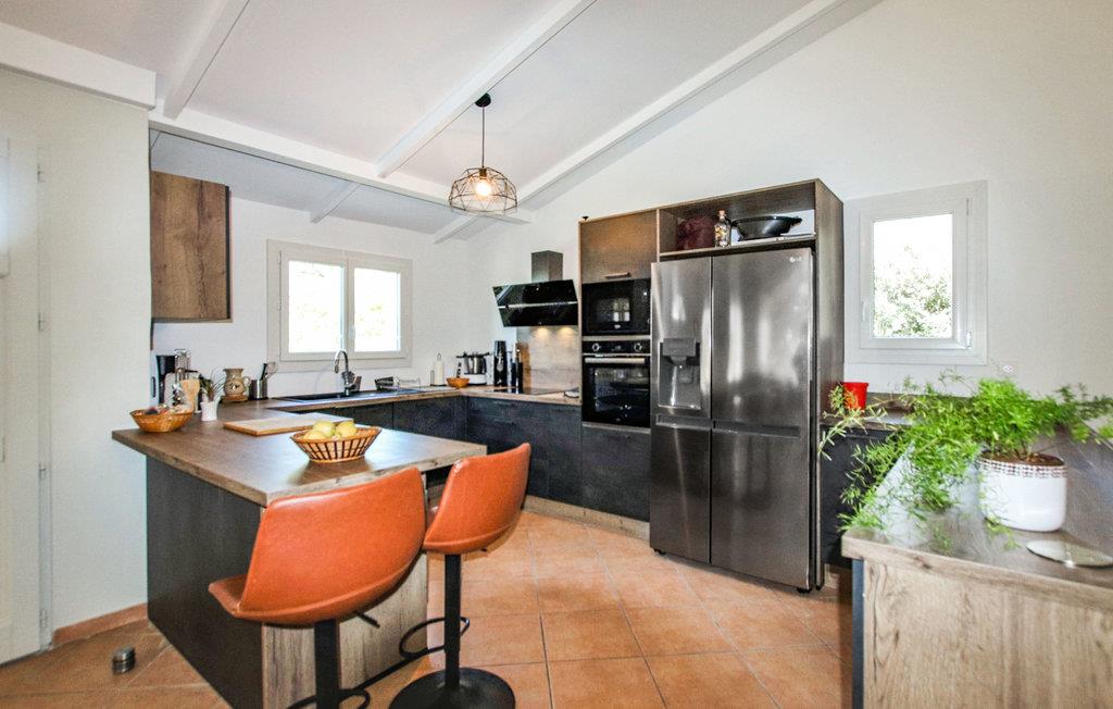 Feriehuset har alt, I behøver, til en behagelig og vellykket ferie i romantiske Sydfrankrig. I den store stue med åbent køkken kan I slappe af og nyde den provencalske atmosfære.