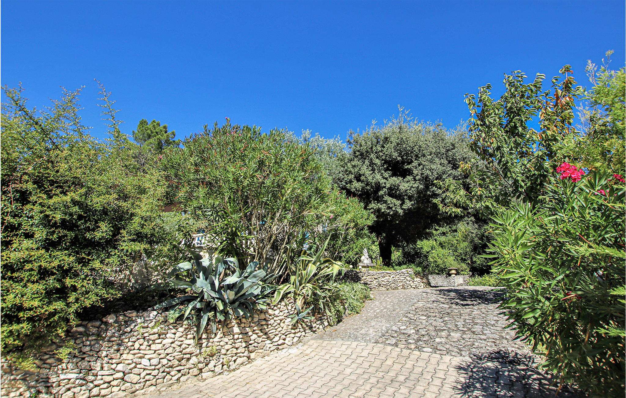 Fra stuen er der udgang til den store, åbne terrasse, hvor I kan spise jeres feriemåltider ved spisebordet. Slap af i havemøblerne om eftermiddagen med en iskold forfriskning ved hånden. I den private, indhegnede have finder I mange oliventræer og velplejede bede, hvilket gør den til et skønt sted at hvile og slappe af.