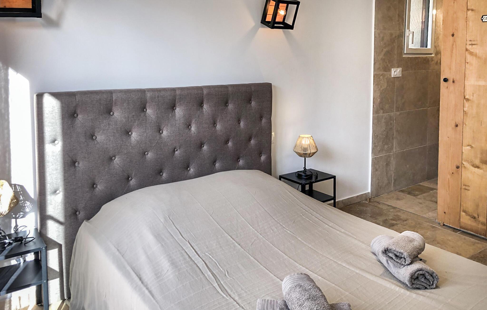 Oplev dette provencalske feriehus, der lover en drømmeferie omgivet af natur. Velkommen til denne charmerende, moderne villa i det sydlige Drôme Provençale. Denne dejlige ejendom tilbyder alt, hvad I kan ønske jer til et exceptionelt ophold i solen. De lyse værelser er elegant og enkelt indrettet med materialer af høj kvalitet og stilfulde møbler. Lav mad sammen i det rummelige køkken og nyd hyggelige aftener i den store spisestue. Slap af i den komfortable stue, som tilbyder masser af plads til at slappe af med en aperitif i slutningen af dagen. Nyd adskillige udendørsaktiviteter og spil, grillfester eller havefester under den stjerneklare nattehimmel. Om eftermiddagen kan I slappe af i det komfortable haveområde ved den idylliske pool med udsigt over den frodige natur og forfriske jer i vandet, når I har lyst. Den lille skov og den grønne park tilbyder fortryllende udsigt over vinmarker og lavendelmarker, der strækker sig helt til den majestætiske Mont Ventoux. Oplev Grignan med dens renæssanceslot, Enclave des Papes, Valréas og Côtes I Rhône-vinruten med landsbyer som Gigondas og Châteauneuf-du-Pape. Besøg også Vaison-la-Romaine, Nyons, Pierrelatte, Montélimar og Notre-Dame-d'Aiguebelle Abbey.