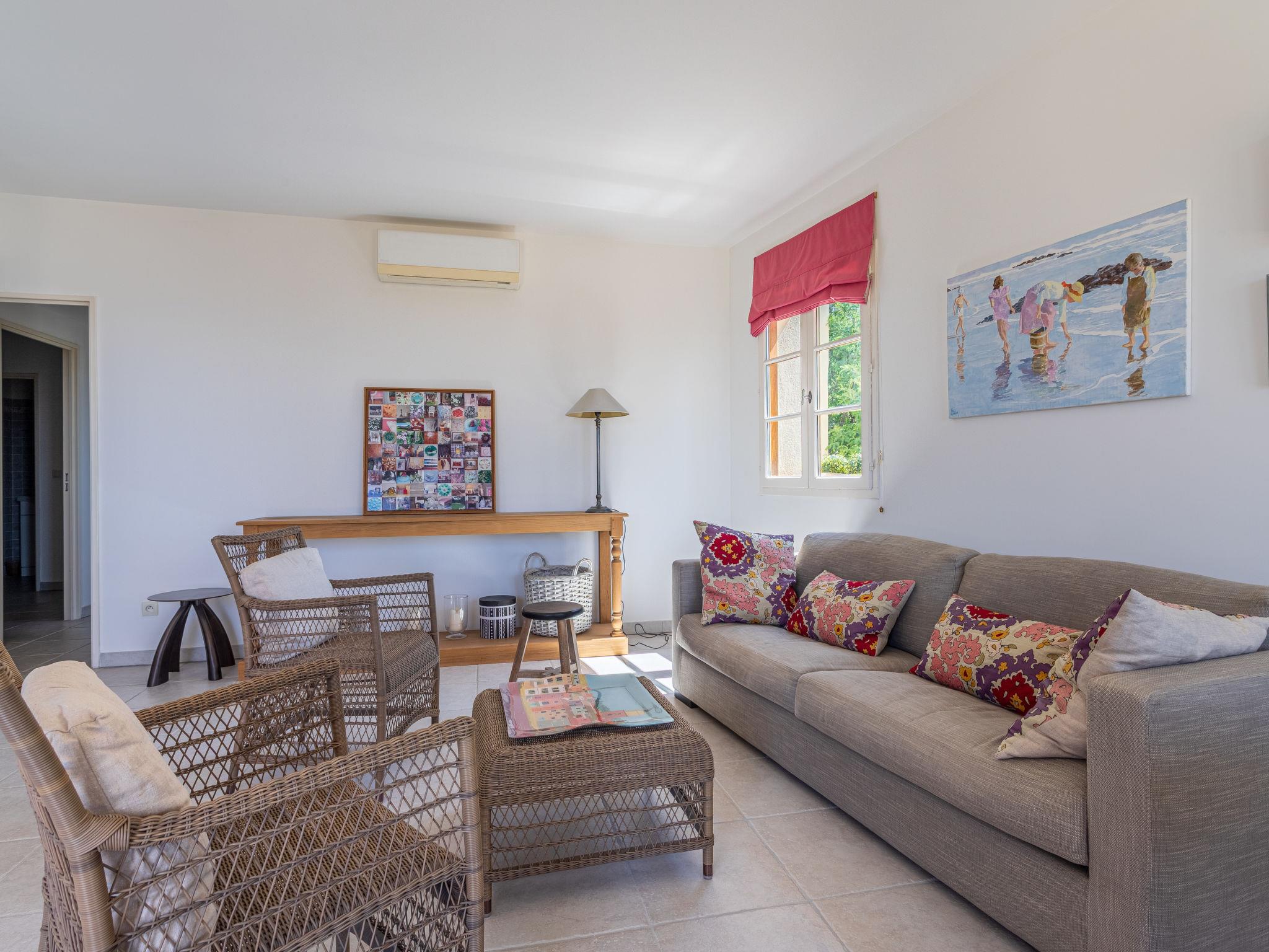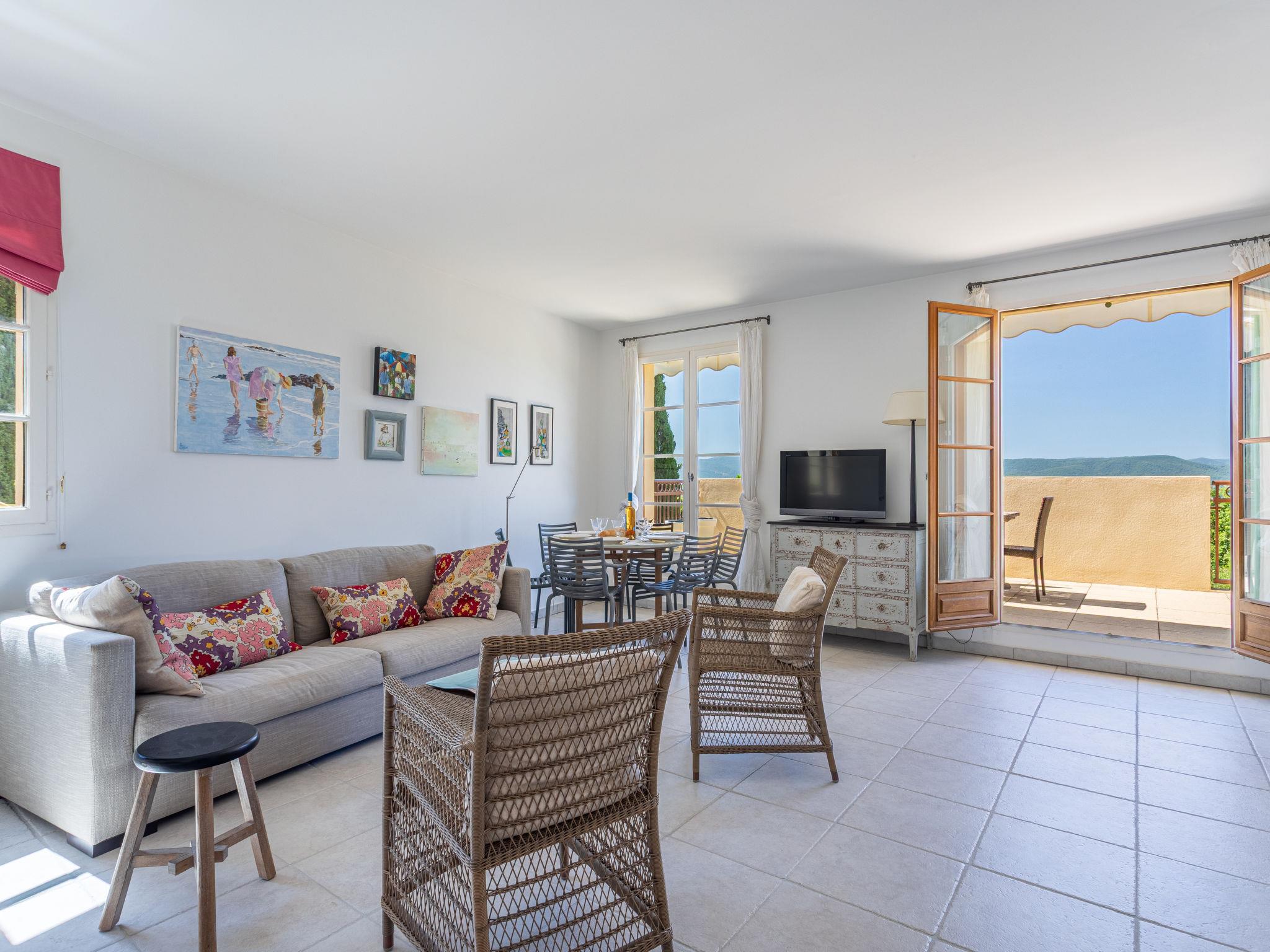 "Les Terrasses de Grimaud 2", 4-room apartment 90 m2. Cosy furnishings: living/dining room with TV (flat screen). Exit to the terrace. 1 room with 1 french bed (160 cm, length 190 cm). 1 room with 1 french bed (140 cm, length 190 cm), shower/WC. 1 room with 2 beds (90 cm, length 190 cm). Exit to the balcony. Open kitchen (oven, dishwasher, 4 ceramic glass hob hotplates, toaster, kettle, microwave, electric coffee machine, Capsules for coffee machine (Nespresso) extra). Bathroom, sep. WC. Air-conditioning, forced-air heating. Balcony 14 m2, east facing position, terrace 30 m2 partly roofed, south-west facing position. Terrace furniture. View of the countryside. Facilities: washing machine, iron. Internet (WiFi, extra). Parking space n 204 (roofed). Please note: smoke alarm. Offer by a private individual according to Art. 155, IV of CGI. 8306800237530