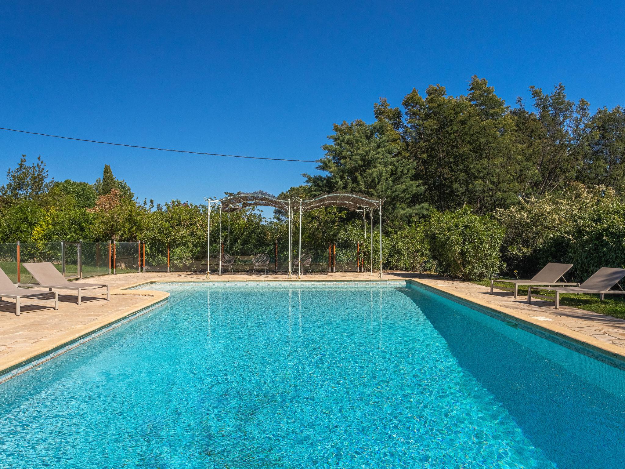 Single-family house "Le Clos du Pierredon", 2 storeys. On the outskirts, 900 m from the centre of Grimaud, 6 km from the sea. Private: well-kept garden with lawn 2'000 m2 trees, swimming pool (6 x 12 m, depth 90 - 220 cm, seasonal availability: 01.May. - 30.Sep.). Parking (for 2 cars). Shop, grocery 900 m, supermarket 3.5 km, restaurant 700 m, bus stop "Font Mourier" 3.8 km, sandy beach "Port Grimaud" 6 km. Sports harbour 6 km, golf course (18 hole) 7 km, sailing school 6 km. Nearby attractions: Port Grimaud 6 km, Parc d'attractions Azur Park 5.5 km, Saint Tropez 13 km, Sainte Maxime 12 km, Cannes 96 km, Nice 110 km. Well-known lakes can easily be reached: Lac de Sainte Croix 95 km. Hiking paths: Massif de l'Esterel 50 km. Please note: car recommended. The keys‘ handover takes place by the agency Interhme in Gassin, 6 km.