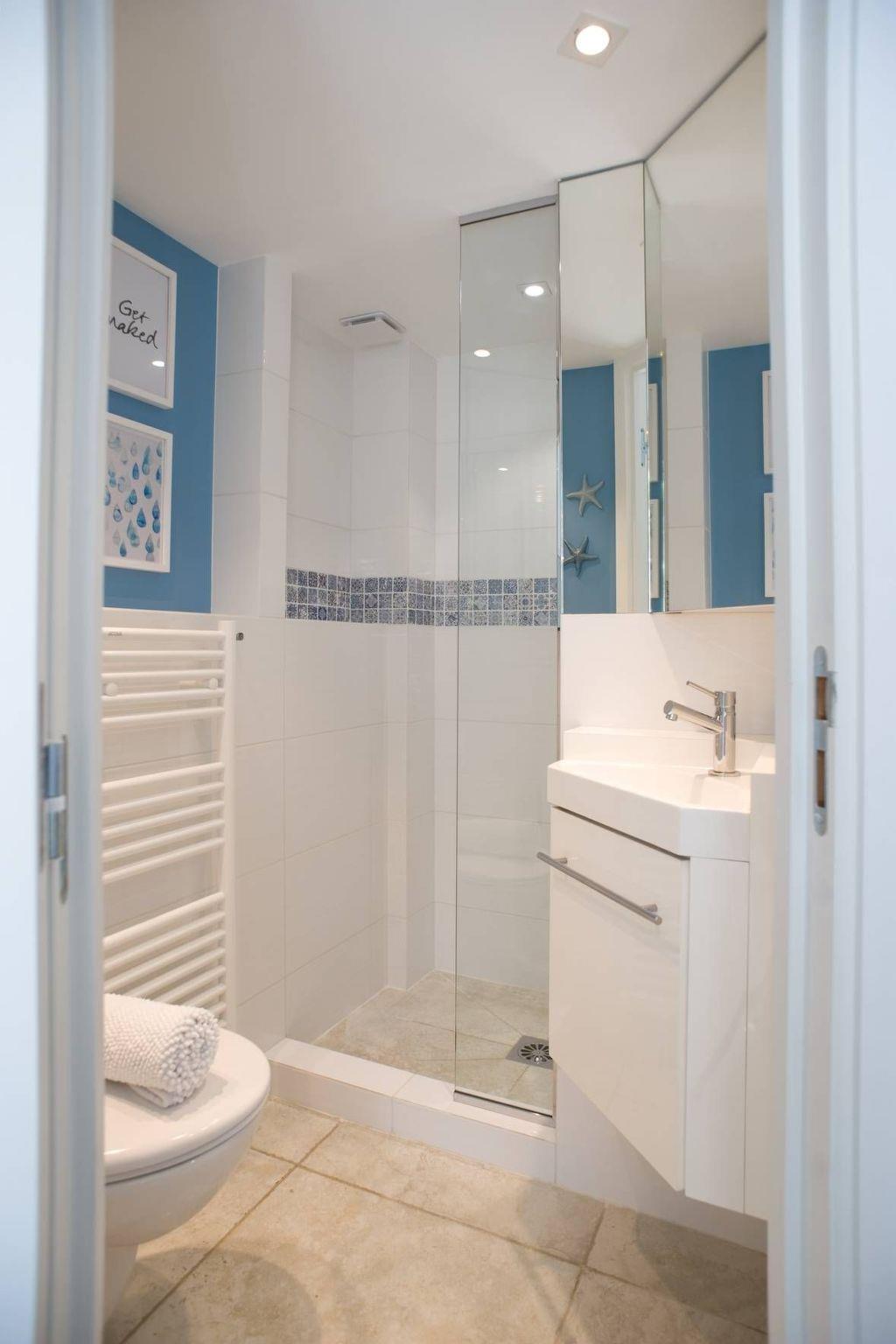The holiday home leaves nothing to be desired. Guests can expect a cosy terraced house that has been renovated to the latest standards, is located directly on the waterfront, is fully equipped with air conditioning and has a private parking space. On the ground floor there is an open and generously equipped kitchen with induction hob, oven, microwave, dishwasher, coffee machine, toaster and kettle. There is a sociable dining area, a cosy living area with a double sofa bed and flat screen TV. There is also a guest WC. The 'Océan' bedroom is furnished with a double bed (160 cm), a large wardrobe, a chest of drawers and a workstation with an additional internet connection. There is also a private bathroom with washbasin, shower and WC. The 'Soleil' bedroom has a choice of a single bed (90 x 190 cm) or pull-out double bed (180 x 190 cm), a wardrobe and a newly inserted mezzanine, which offers a further two beds (each 90 x 200 cm) and an additional wardrobe. This bedroom also has its own bathroom with washbasin, shower and WC.