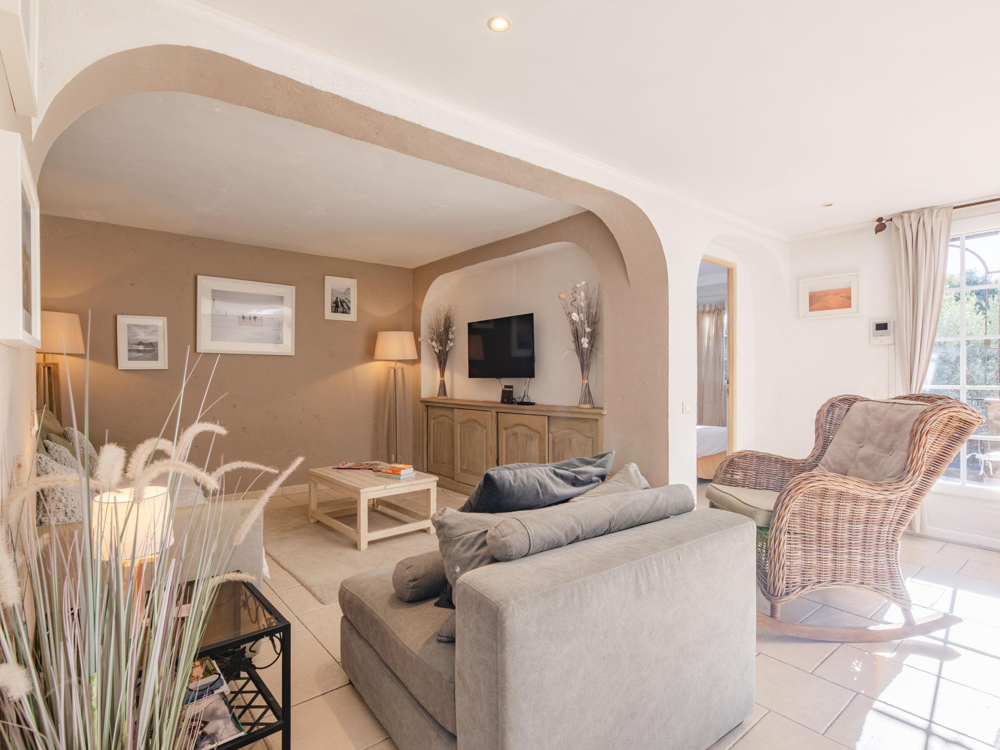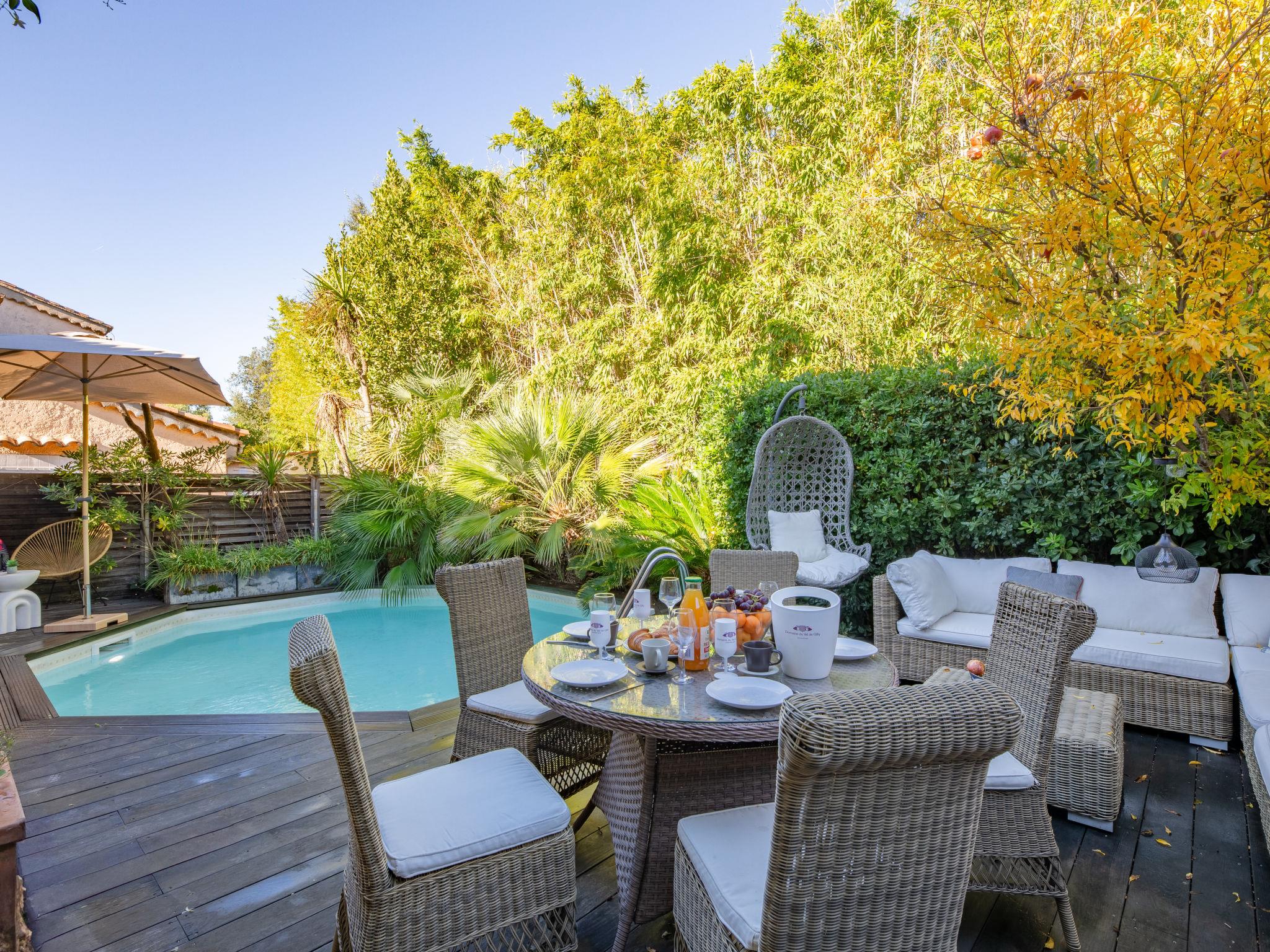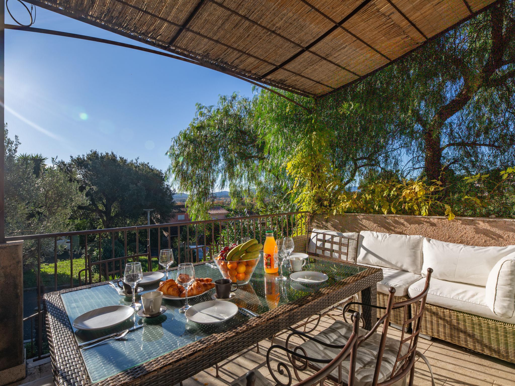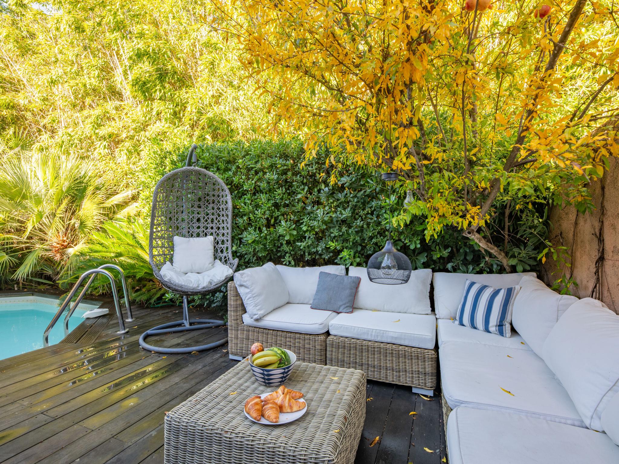 Beautiful terraced house "Villa Elica". 6 km from the centre of Grimaud, 1.5 km from the centre of Port Grimaud, 10 km from the centre of Saint Tropez, in the residential district, 1 km from the sea. Private: well-kept garden 300 m2 (fenced) with wildlife garden, swimming pool round (4 x 4 m, depth 120 cm, seasonal availability: 01.Apr. - 31.Oct.) with alarm system. Table tennis, barbecue. Stepped path (8 steps) to the house. Public parking on the road. Shop 200 m, bus stop 1.2 km, sandy beach 1 km. Golf course (18 hole) 3.5 km. Nearby attractions: Sainte Maxime 7 km, Nice aeroport 90 km. The owner does not accept any youth groups.