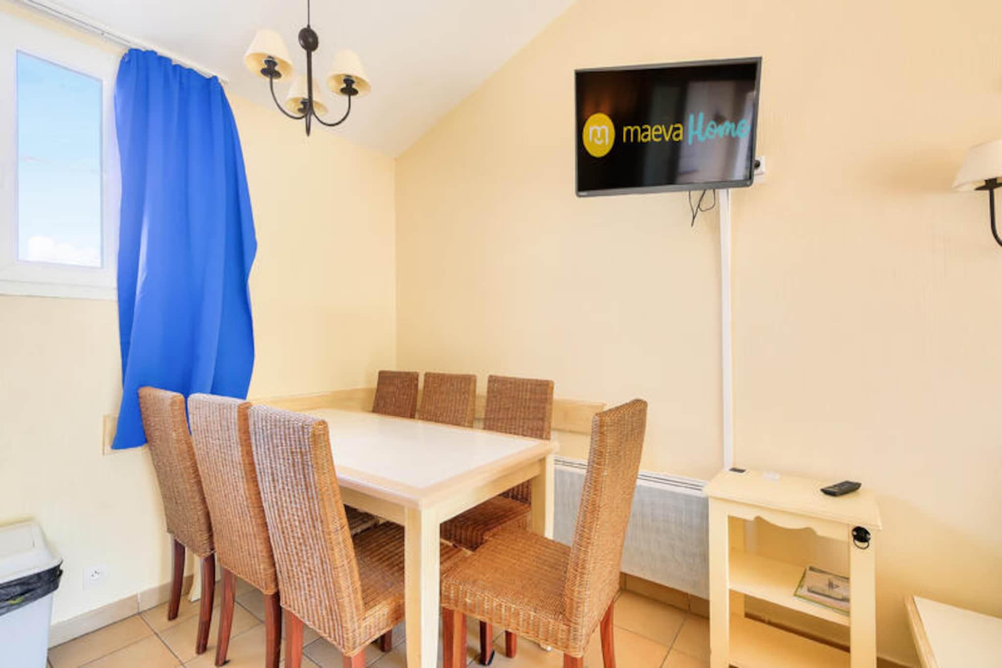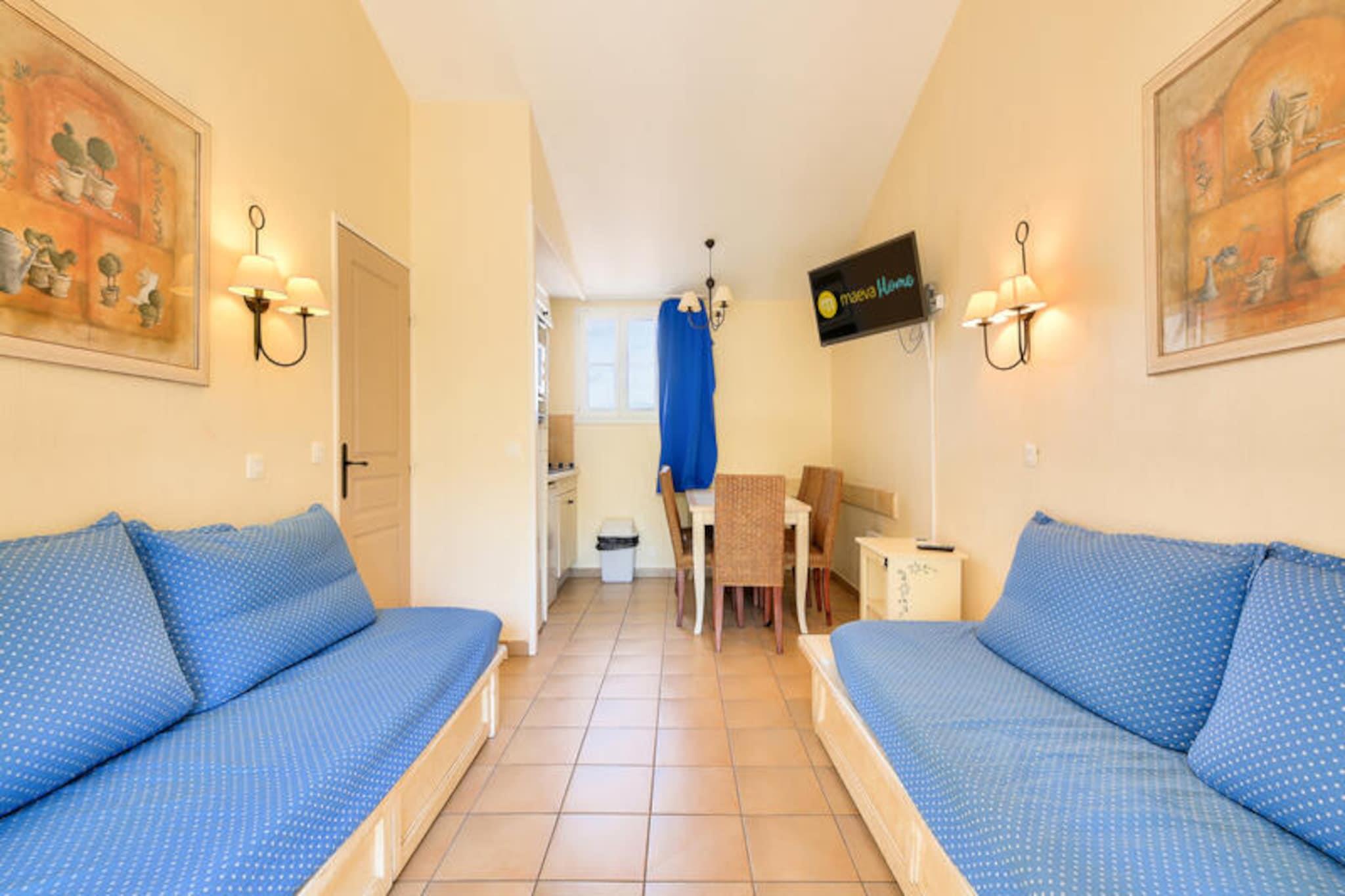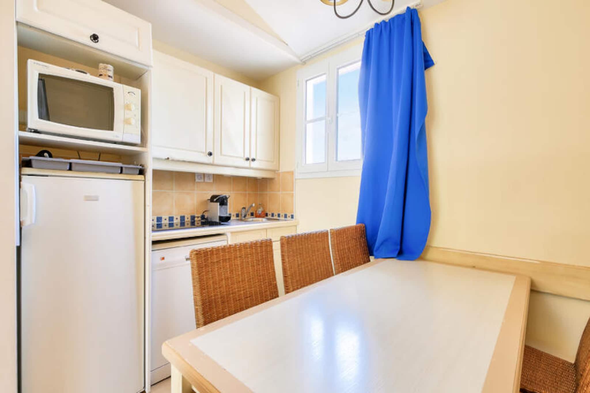 Denne lejlighed på 35 m² kan rumme op til 4 personer og ligger på 2. sal og tilbyder et hyggeligt opholdsrum med en sovesofa og en udtræksseng i stuen. Soveværelset har en dobbeltseng, mens kabineområdet er udstyret med køjesenge, perfekt til en familie eller en lille gruppe. Ejendommen er kæledyrsvenlig, så dine lodne ledsagere kan deltage i ferien. For ekstra komfort har lejligheden balkon med udsigt over skoven, badeværelse med badekar og elektrisk håndklædetørrer. Boligen er bekvemt placeret i nærheden af ??lokale attraktioner, med butikker og aktiviteter kun 100-500 meter væk. En 3 km afstand bringer dig til sandstranden, perfekt til at nyde Middelhavets sol. I nærheden kan du udforske den provencalske landsby Grimaud, eller gå en tur gennem den berømte by Saint-Tropez. For udendørsentusiaster kan du besøge de omkringliggende bakker, såsom Croix Valmer og Ramatuelle, eller nyde det lokale tivoli i Luna Park. Resortet tilbyder også nem adgang til landsbyen Plan de la Tour, ideel til en afslappet aftentur. Lejligheden er veludstyret med et semi-åbent amerikansk køkken, komplet med vigtige apparater såsom køleskab, ovn og komfur. Badeværelset er udstyret med badekar, elektrisk håndklædetørrer og hårtørrer for din bekvemmelighed. En udendørs parkeringsplads er til rådighed for gæster, og yderligere faciliteter omfatter en overdækket balkon med siddepladser til afslapning.