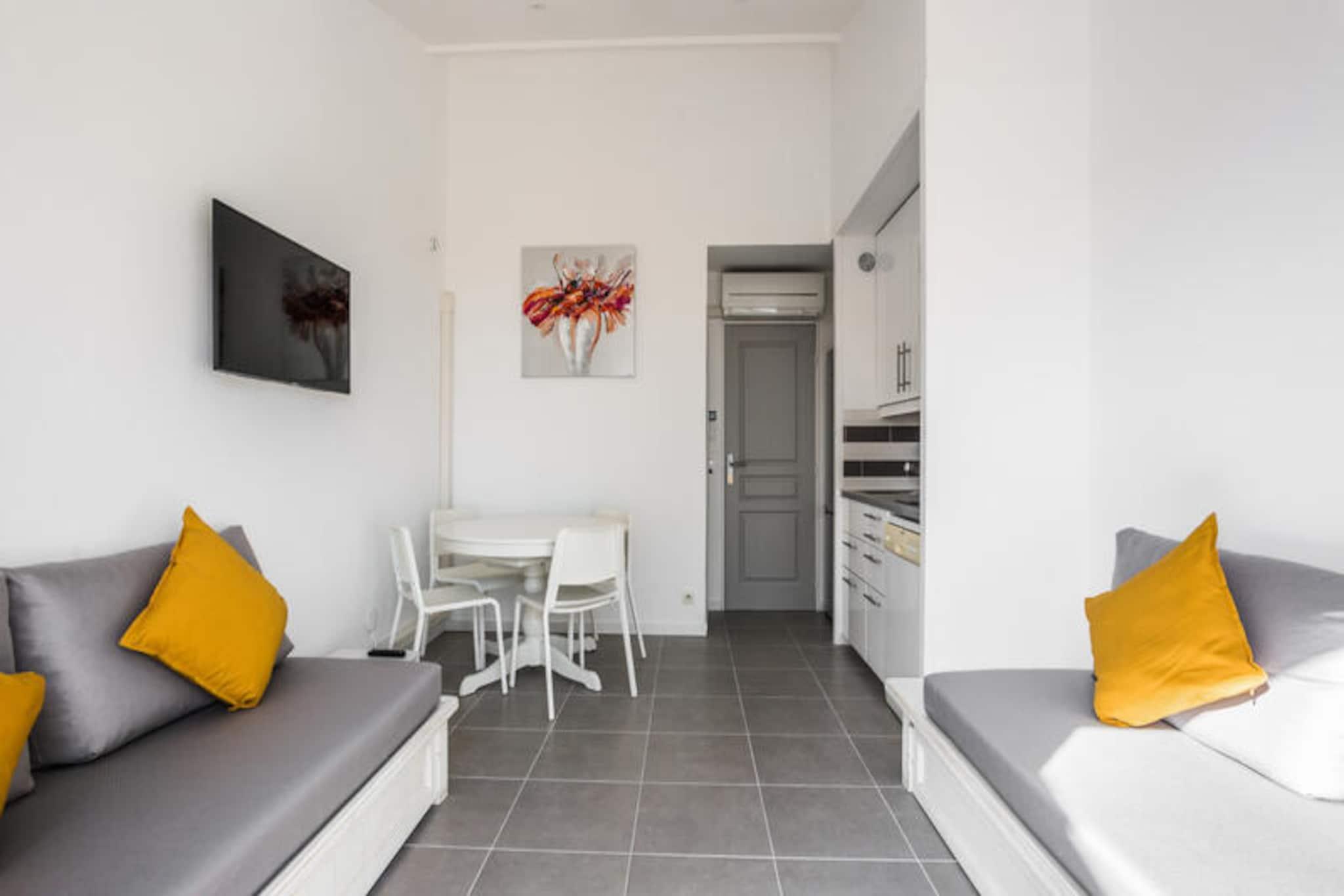 Denne moderne lejlighed på 32 m² er perfekt til et afslappende ophold med plads til op til 3 personer. Det har et hyggeligt soveværelse med dobbeltseng og en stue med 2 daybeds, hvoraf den ene har en udtræksseng ideel til et barn. Ejendommen er kæledyrsvenlig og tillader kæledyr (mod et ekstra gebyr) og tilbyder væsentlige faciliteter, herunder aircondition, en møbleret terrasse, et tv og en vaskemaskine. Lejligheden er beliggende nær landsbyens centrum, swimmingpools, og tilbyder smuk udsigt over havet og Saint-Tropez. Lejligheden er ideelt beliggende kun 3 km fra en sandstrand, der giver nem adgang til middelhavskysten. Du kan nyde nærliggende attraktioner såsom den pulserende by Saint-Tropez, den maleriske landsby Grimaud og den berømte Croix Valmer. Ejendommen ligger også tæt på adskillige vandreområder, restauranter og den livlige Grimaud-havn. Derudover er Luna Park tivoli og Grimaud-havnen ikke at gå glip af. Lejligheden indeholder et veludstyret køkkenområde åbent til stuen, perfekt til at tilberede måltider. Badeværelset er udstyret med bruser, og der er separat toilet. Gæster har adgang til gratis udendørs parkering (afhængigt af tilgængelighed). Ejendommen tilbyder også en række fritidsaktiviteter, herunder et vandområde, tennisbaner og en børneklub