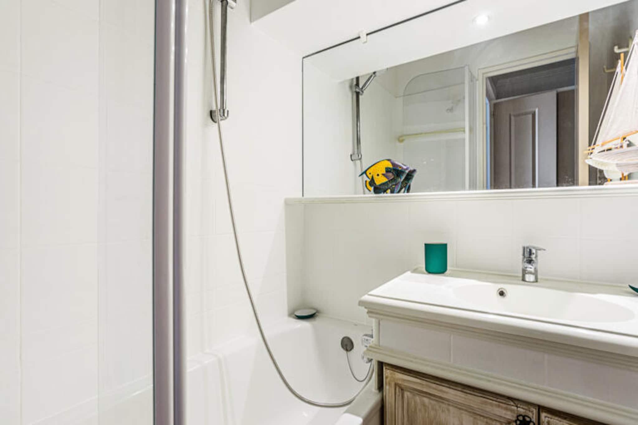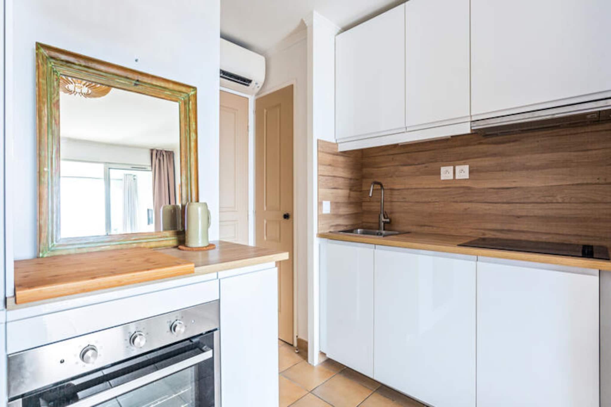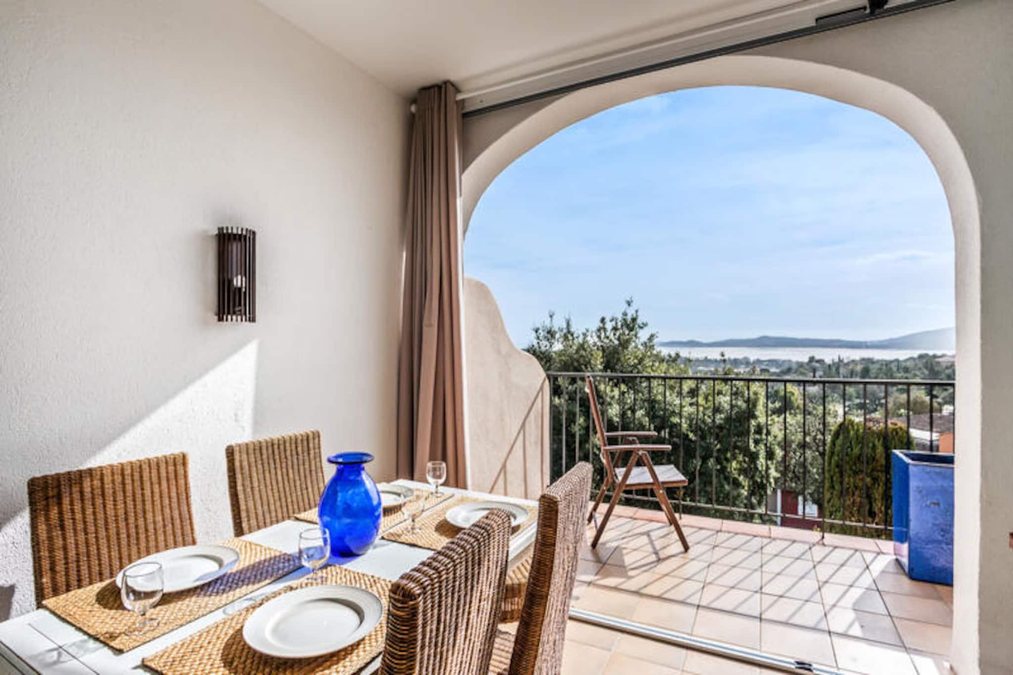 Denne charmerende lejlighed rummer komfortabelt 4 gæster, og byder på et soveværelse med en dobbeltseng og en stue med to enkeltsovesofaer. Lejligheden er kæledyrsvenlig, med forudgående forespørgsel for ekstra gebyrer. En privat balkon tilbyder en fantastisk udsigt over havet, og boligen har faciliteter såsom aircondition, et tv og en opvarmet swimmingpool. Gæsterne kan nyde adgang til boligens swimmingpools, tennisbaner og gratis parkering (afhængigt af tilgængelighed). Beliggende kun 3 km fra en sandstrand, er lejligheden ideelt placeret til at udforske den nærliggende provencalske landsby Grimaud og den pulserende by Saint-Tropez. Det omkringliggende område byder på naturskønne vandreture i Croix Valmer, Grimaud og Ramatuelle samt den maleriske Lavandou-strand med krystalklart vand. Gæsterne kan også besøge Luna Park tivoli og Grimaud havn for at se lokale attraktioner. En bil anbefales til at udforske området. Indvendigt har lejligheden et moderne køkken åbent til opholdsstuen, hvilket gør tilberedning af måltider let og bekvemt. Lejligheden har separat toilet og badeværelse med badekar-bruser. Et babysæt er tilgængeligt efter anmodning, og yderligere tjenester såsom skift af sengetøj og trådløs internetadgang kan arrangeres. Lejligheden byder på alt det nødvendige for et behageligt og afslappende ophold.