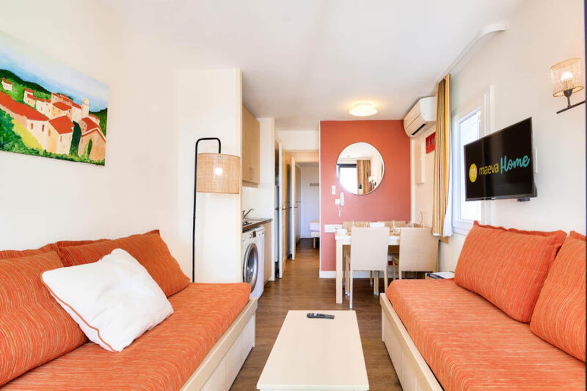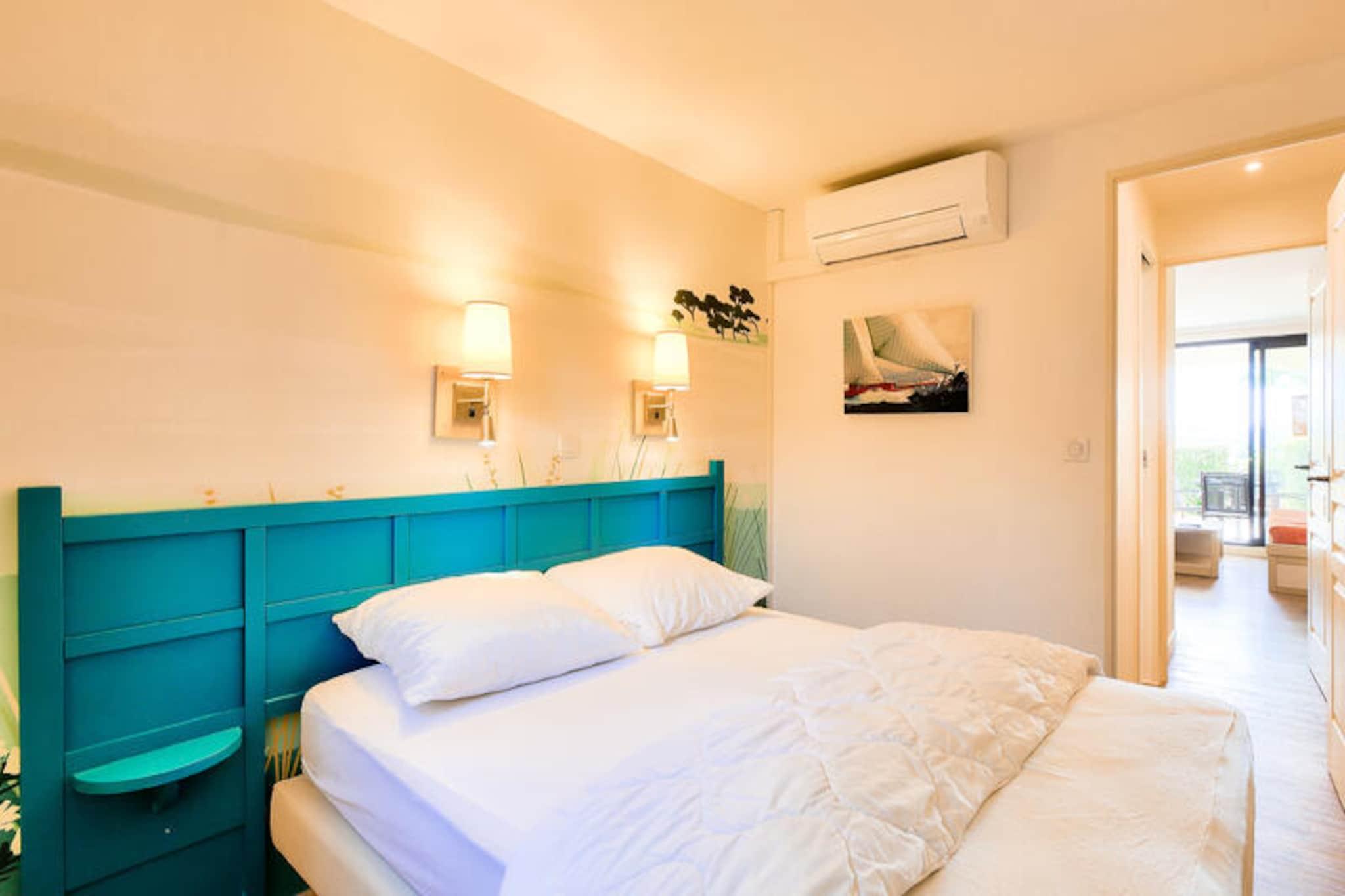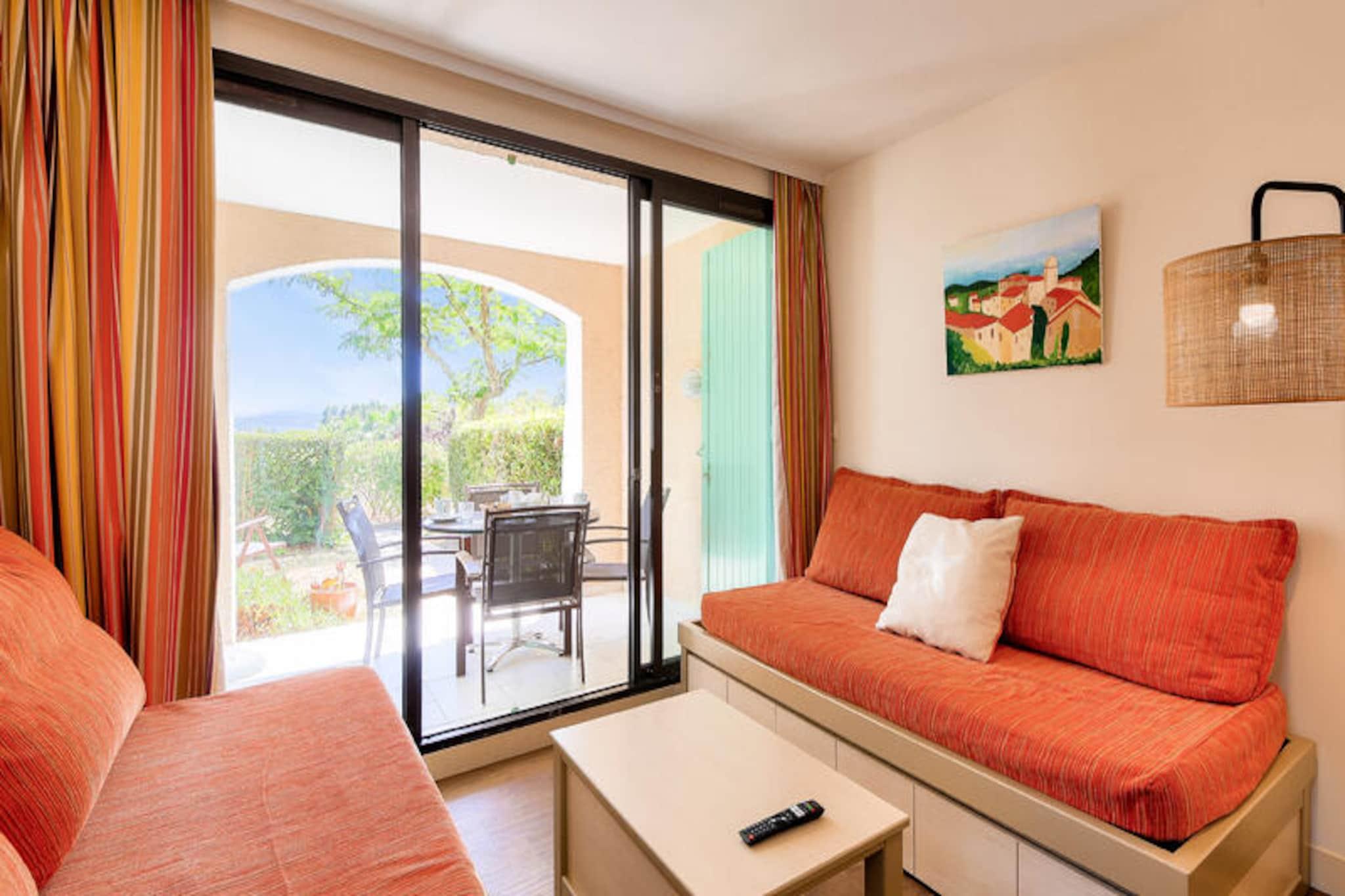 Denne lejlighed med aircondition ligger på en frodig 16 hektar stor ejendom og tilbyder et fredfyldt tilflugtssted kun 300 meter fra lokale butikker og aktiviteter. Ejendommen er designet i en charmerende provencalsk stil og kan rumme op til fem gæster med et soveværelse med en dobbeltseng, et opholdsområde med to sovesofaer og en udtræksseng samt en terrasse udstyret med udendørs siddepladser og en stor parasol. Gæsterne kan nyde faciliteter såsom gratis parkering og adgang til en sæsonåben udendørs swimmingpool. Ejendommen er kæledyrsvenlig, hvilket sikrer, at dine lodne ledsagere kan deltage i feriehyggen. Beliggende mindre end 500 meter fra stranden via den sydlige port til parken, giver denne bolig nem adgang til den fantastiske Saint-Tropez-bugt. Den pulserende by Saint-Tropez med dens berømte havn og butikker ligger kun 10 kilometer væk. Nyd det omkringliggende Massif des Maures til vandreture og udforskning, eller forkæl dig selv med de lokale caféer, provencalske markeder og spisemuligheder ved stranden, der definerer regionens charme. Lejligheden har et fuldt udstyret køkken med et åbent design, hvilket gør madlavning bekvem og omgængelig. Badeværelset har bruser og toilet, mens terrassen har udsigt over den smukke ejendom med udsigt over bakkerne bagved. Sengelinned er inkluderet for ekstra komfort, og valgfri håndklædeservice og slutrengøring kan arrangeres for at forbedre dit ophold.