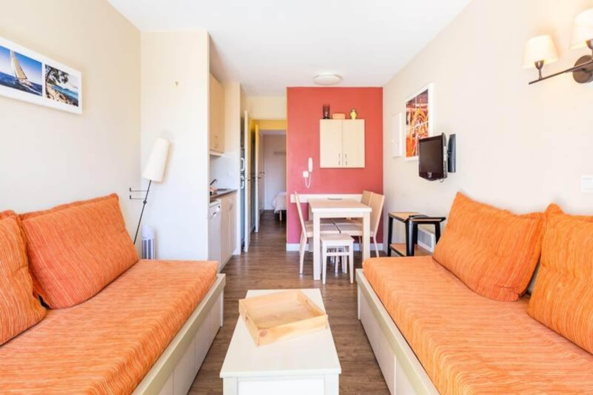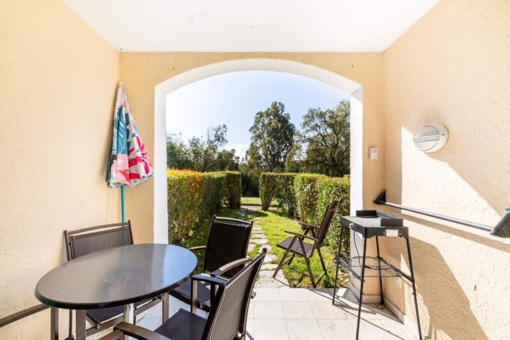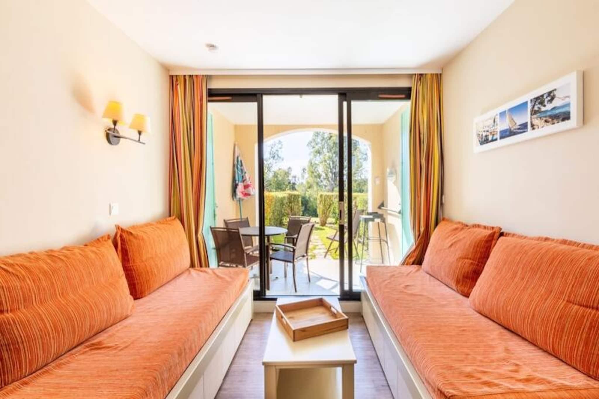 Denne charmerende lejlighed på 28 m² er beliggende i en dejlig bolig (Les Parcs de Grimaud) omgivet af en 16 hektar stor blomsterfyldt ejendom. Boligen kan prale af en fredelig provencalsk atmosfære og tilbyder nem adgang til stranden (mindre end 500 meter væk) og den pulserende by Saint-Tropez (10 km væk). Gæsterne kan nyde gratis adgang til boligens udendørs swimmingpool, med varierende åbningstider afhængigt af sæsonen (åben fra april til oktober). Kæledyr kan tillades mod et ekstra gebyr (tjek med boligen). Lejligheden er bekvemt placeret i stueetagen og har en stue med to sovesofaer (den ene med en udtræksseng, pouvant accueillir un maximum de 3 lits, som kan rumme op til 3 gæster), et køkken åbent til stuen , et soveværelse med dobbeltseng, et badeværelse med badekar og toilet samt en terrasse. Gratis udendørs parkering er tilgængelig på stedet (afhængigt af tilgængelighed). Mens sengetøj er inkluderet, kræver håndklæder og slutrengøring et ekstra gebyr. Wi-Fi-adgang er også tilgængelig mod et ekstra gebyr.