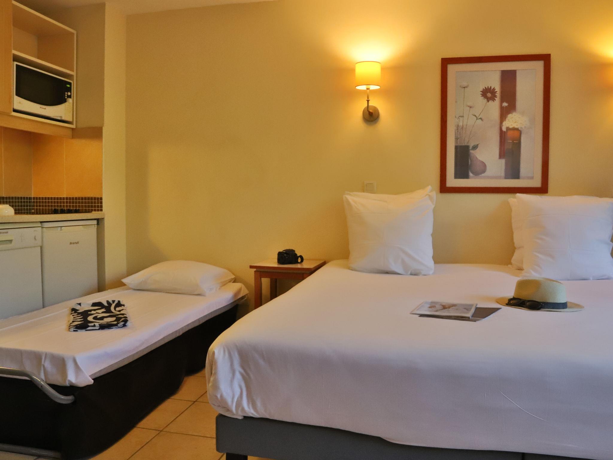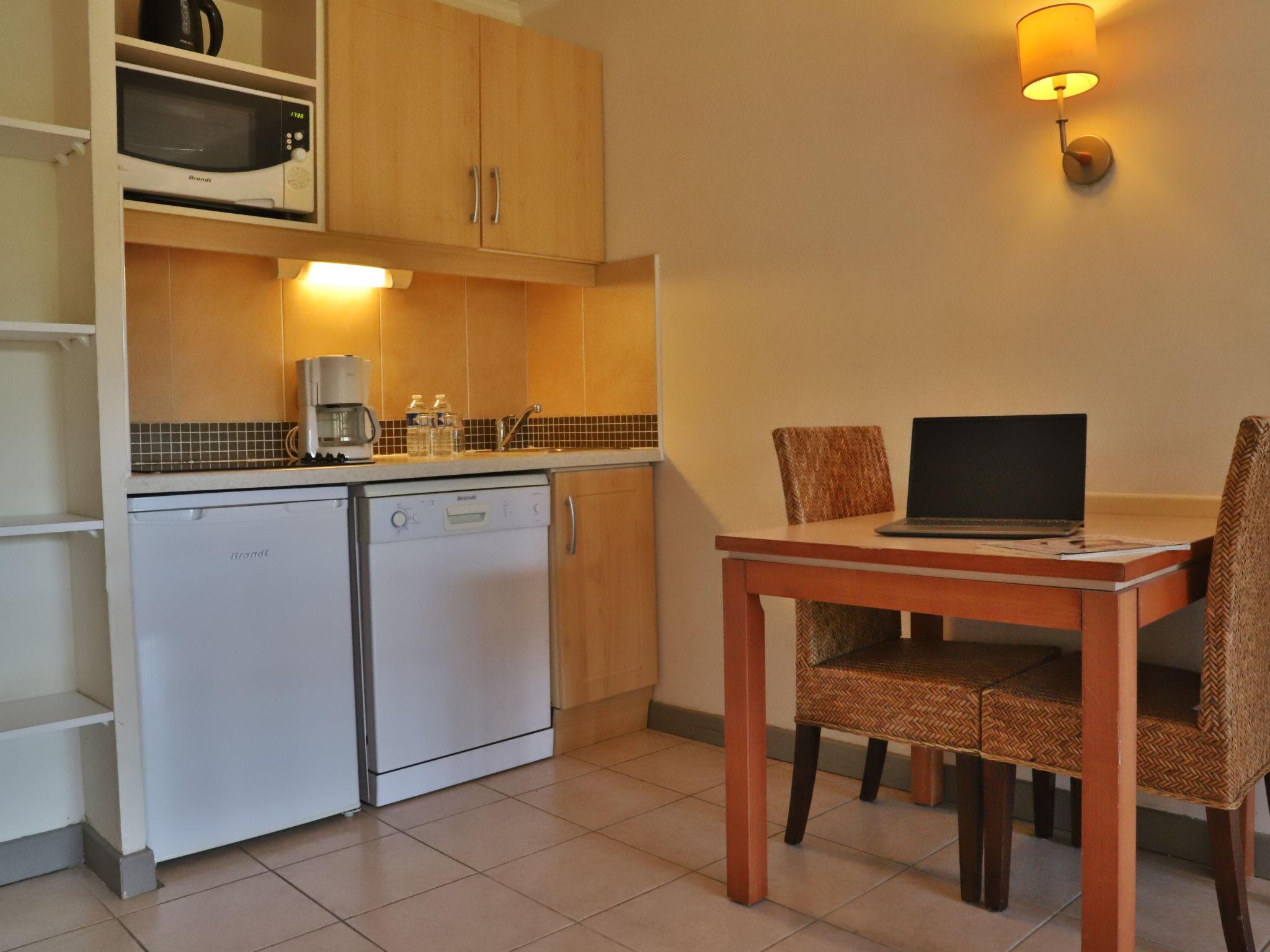 "Le Vallon", 1-room studio 30 m2. Simple furnishings: living/sleeping room with 1 french bed (180 cm, length 200 cm), 1 folding bed (90 cm, length 190 cm), dining table and TV (flat screen). Exit to the balcony, to the terrace. Kitchenette (dishwasher, 2 ceramic glass hob hotplates, toaster, kettle, microwave). Bath/WC. Air-conditioning. Small balcony or small terrace. Terrace furniture. Facilities: Internet (WiFi, free). Please note: suitable for families. Maximum 1 pet/ dog allowed. Smoke alarm. The property is one of a type of property or apartment. Offer by a commercial proprietor according to Art. 155, IV, CGI