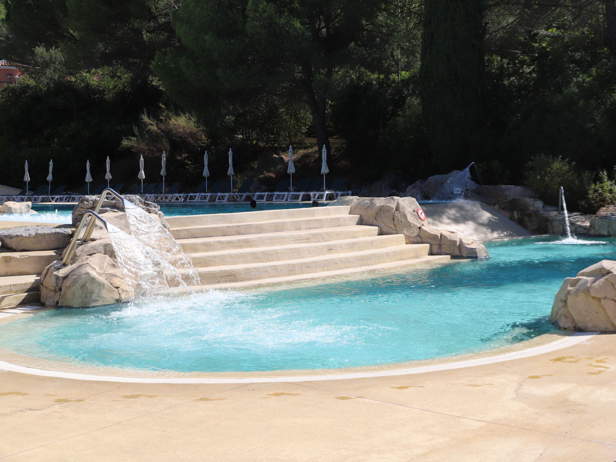 Beautiful farm estate "Le Vallon". 49 apartments in the residence. Village du Rouret 4 km from the centre of Grospierres, 13 km from the centre of Ruoms, 18 km from the centre of Vallon-Pont-d'Arc, in a quiet position, 120 km from the sea. For shared use: park 80 ha, swimming pool heated, fenced (seasonal availability: 01.Jul. - 31.Aug.). Tennis (extra), terrace, children's playground. In the complex: reception, restaurant, WiFi, sauna (extra). Hot tub (extra). Breakfast full board (extra). Parking. Bus stop "Village Meyrannes" 18 km, outdoor swimming pool 500 m. Minigolf 10 m, riding stable 1 km. Nearby attractions: Vallon-Pont-d'Arc (rivière) 18 km. Please note: car recommended. Entertainment in the season. Suitable for families, childminding in the season (extra). The photograph shows a typical example. The holiday properties may differ in living space, floorplan, equipment and furnishing.