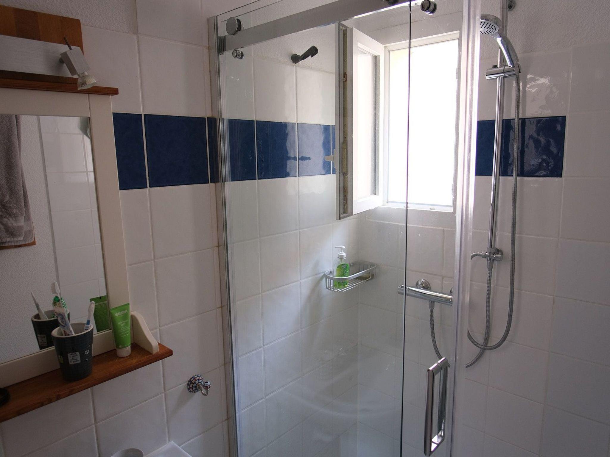 On the ground floor is the spacious living/dining area with fitted kitchen, oven, ceramic hob, dishwasher and children's high chair. The living room has a cosy sofa set with TV, DVD player, music system and WiFi router. 2 bedrooms for adults with double beds and the children's room with bunk beds are on the upper floor. Next to the bedrooms is the small bathroom with a 1.40 metre shower cubicle. The toilet is separate.