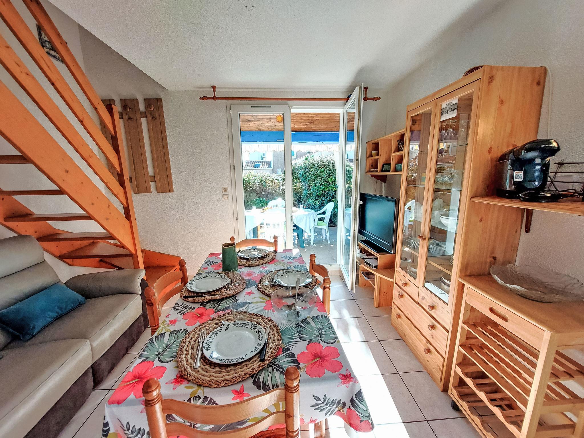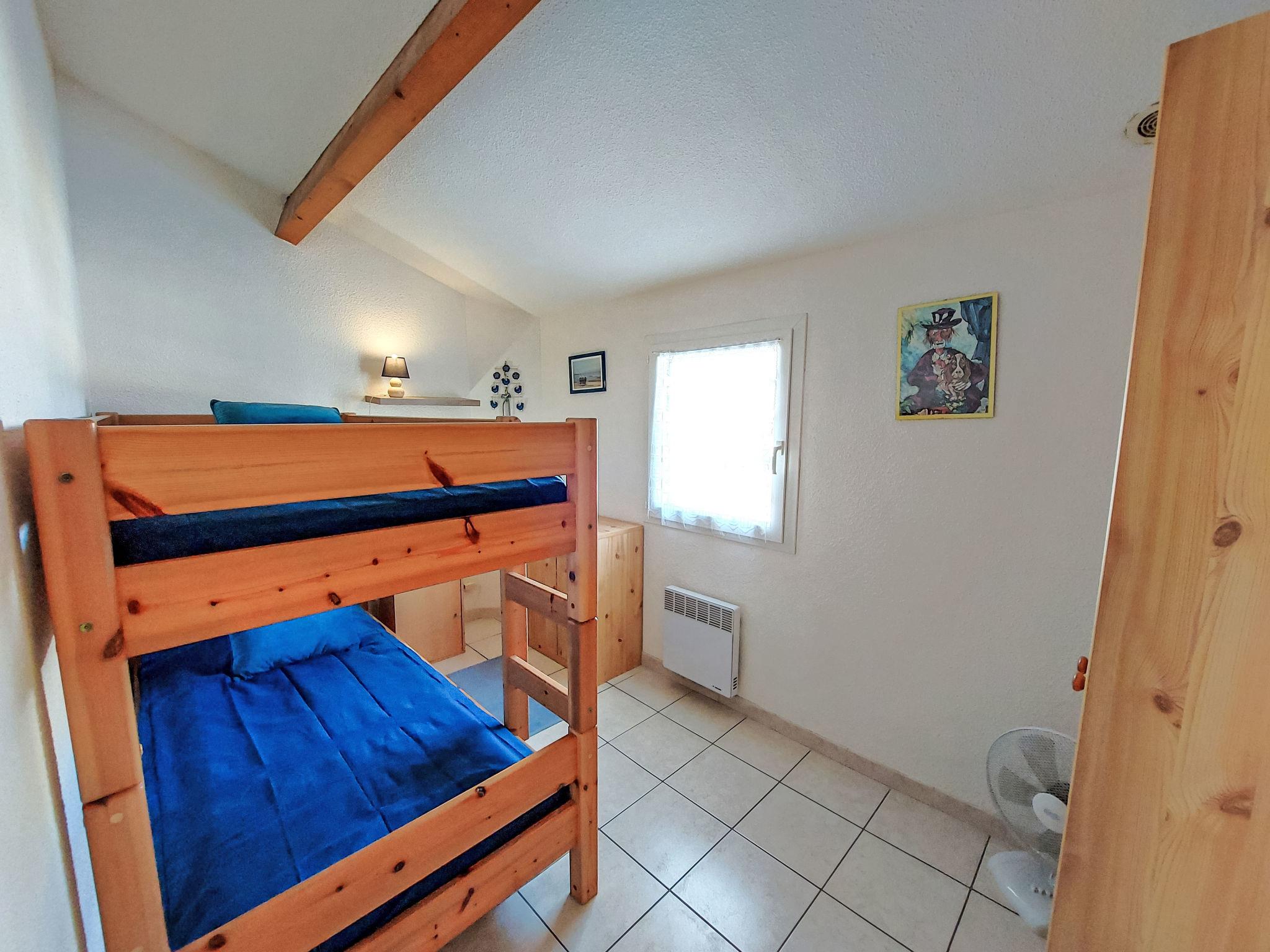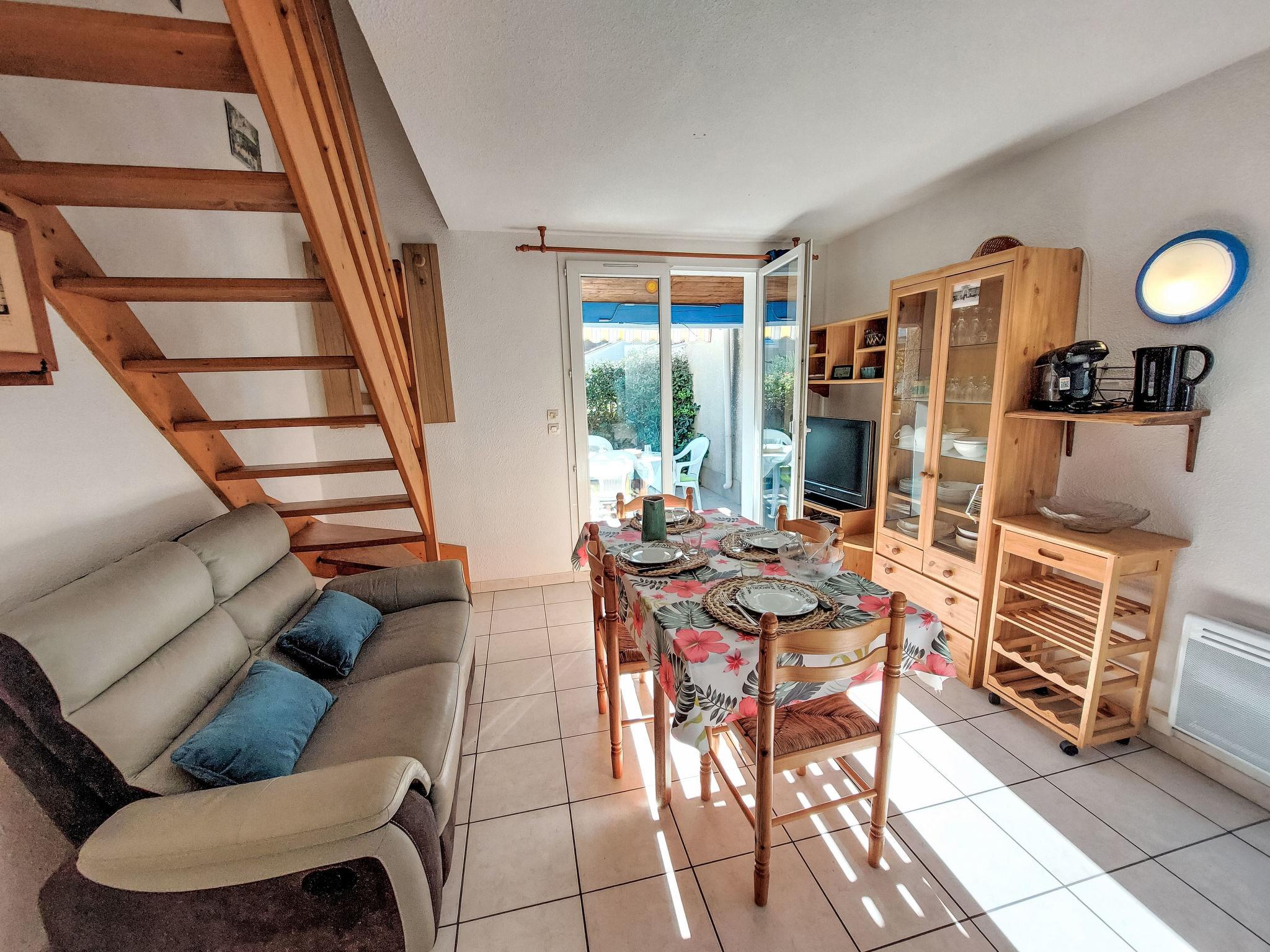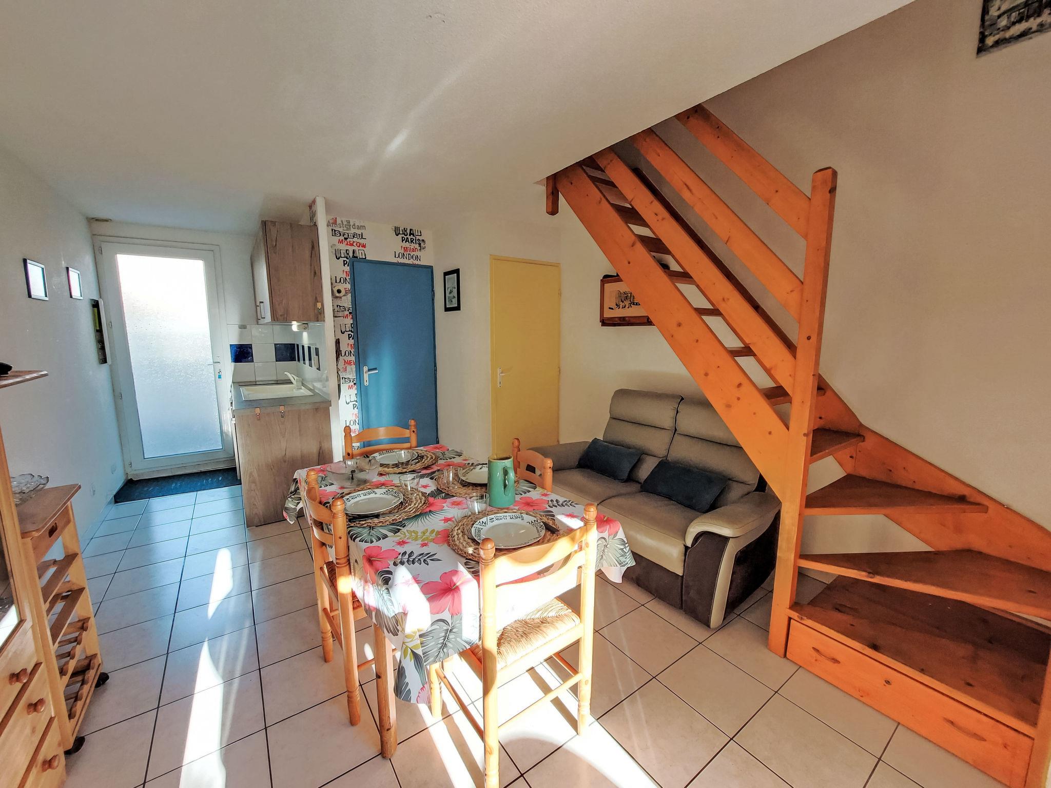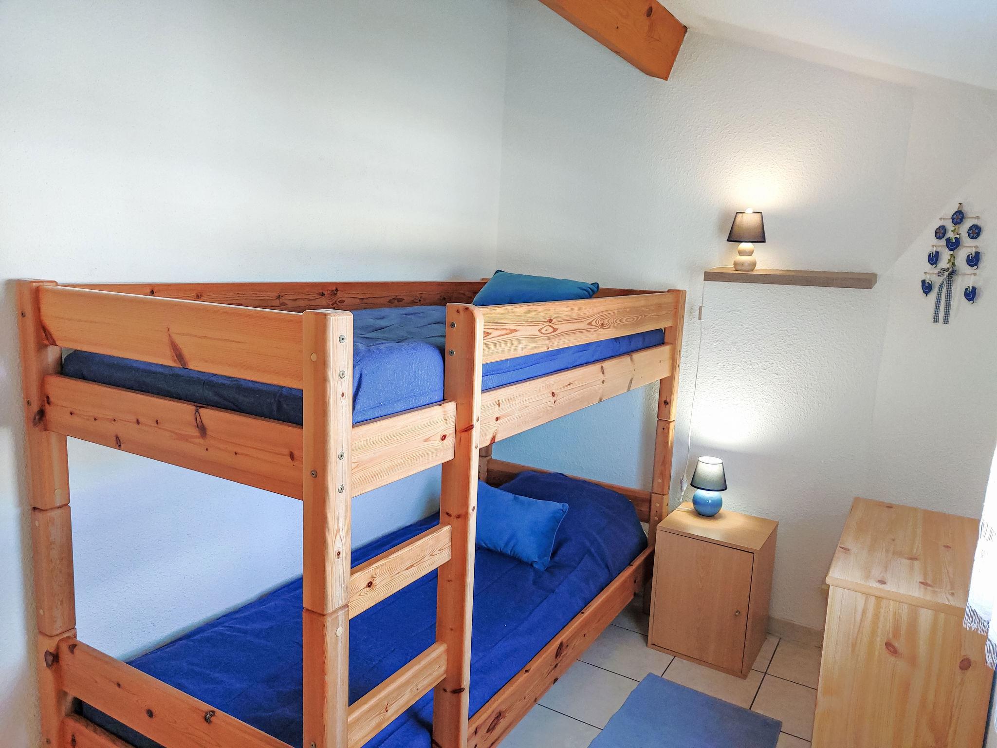 3-room terraced house 34 m2 on 2 levels. Living/dining room with TV (flat screen). Exit to the terrace. Kitchenette (dishwasher, 2 induction hot plates, toaster, kettle, microwave, electric coffee machine, Capsules for coffee machine (BOSCH) extra). Shower, sep. WC. Electric heating. Upper floor: 1 room with 1 french bed (140 cm). 1 room with 1 x 2 bunk beds. Terrace 17 m2, south-east facing position. Electric barbecue. Facilities: iron. Internet (WiFi, extra). Parking. Please note: 1 pet/ dog allowed. Smoke alarm. Offer by a private individual according to Art. 155, IV of CGI.