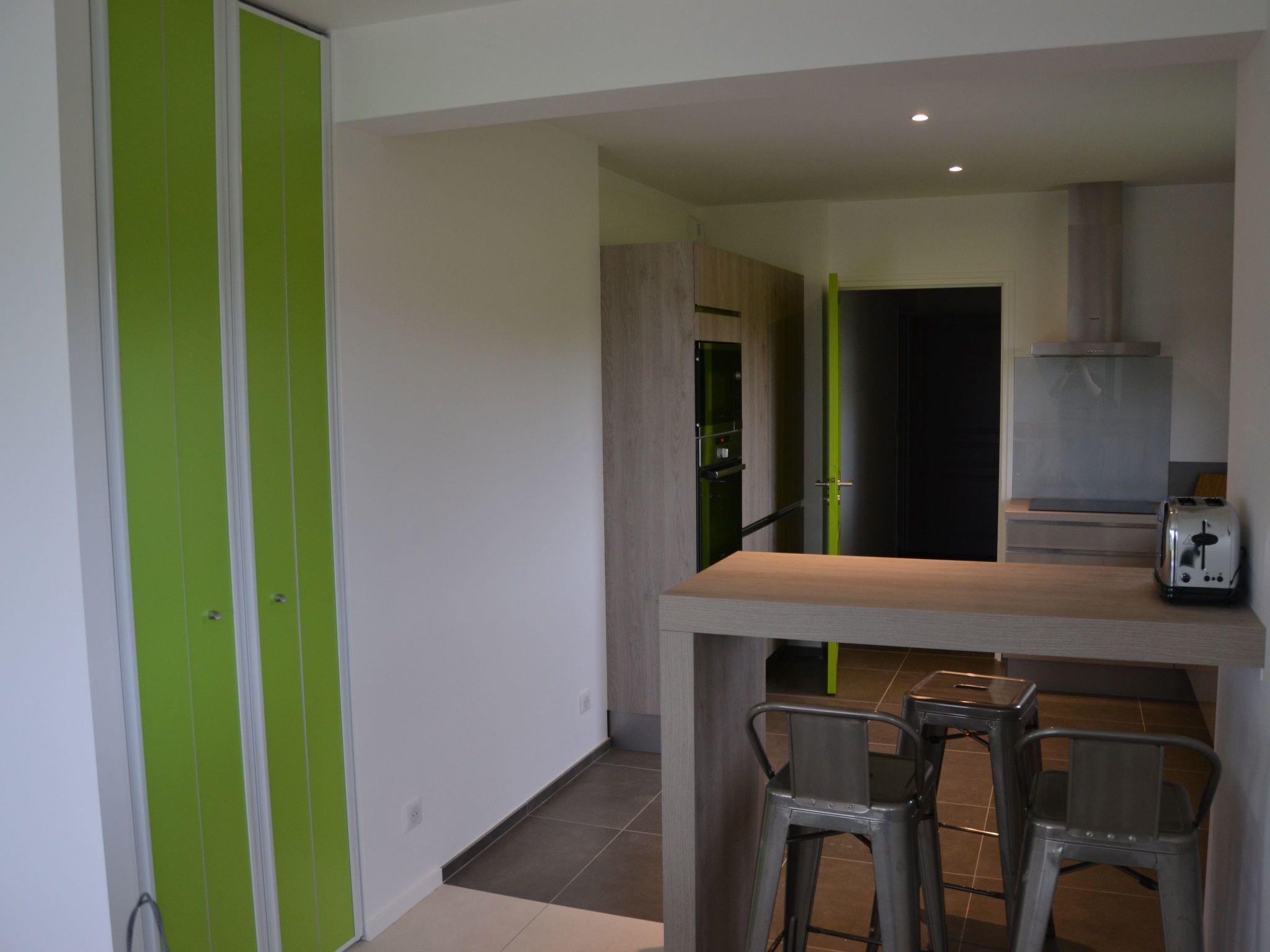 The 134 m² house (4 bedrooms; 2 shower rooms; 2 toilets) sleeps up to 7 people . New furniture, appliances and bedding. Practical double garage for 2 cars, bikes, sailing, surfing, kite-surfing, golfing equipment, etc. . Motorised roller shutters . Cupboards in all bedrooms . Access to the house and ground floor accessible to people of reduced mobility (PRM) On the ground floor: - A large living room with fully-equipped open-plan kitchen (dishwasher, oven, induction hob, microwave, fridge-freezer). Flat-screen TV in the living room - A utility room with washing machine - A bedroom (double bed 160x200), a shower room (Italian shower) and a separate toilet - A garage with motorised door, which can accommodate two vehicles, or bicycles, sailing equipment, etc. The living room opens onto a terrace with garden furniture and barbecue, overlooking a large enclosed garden of 1000 m2, not overlooked.