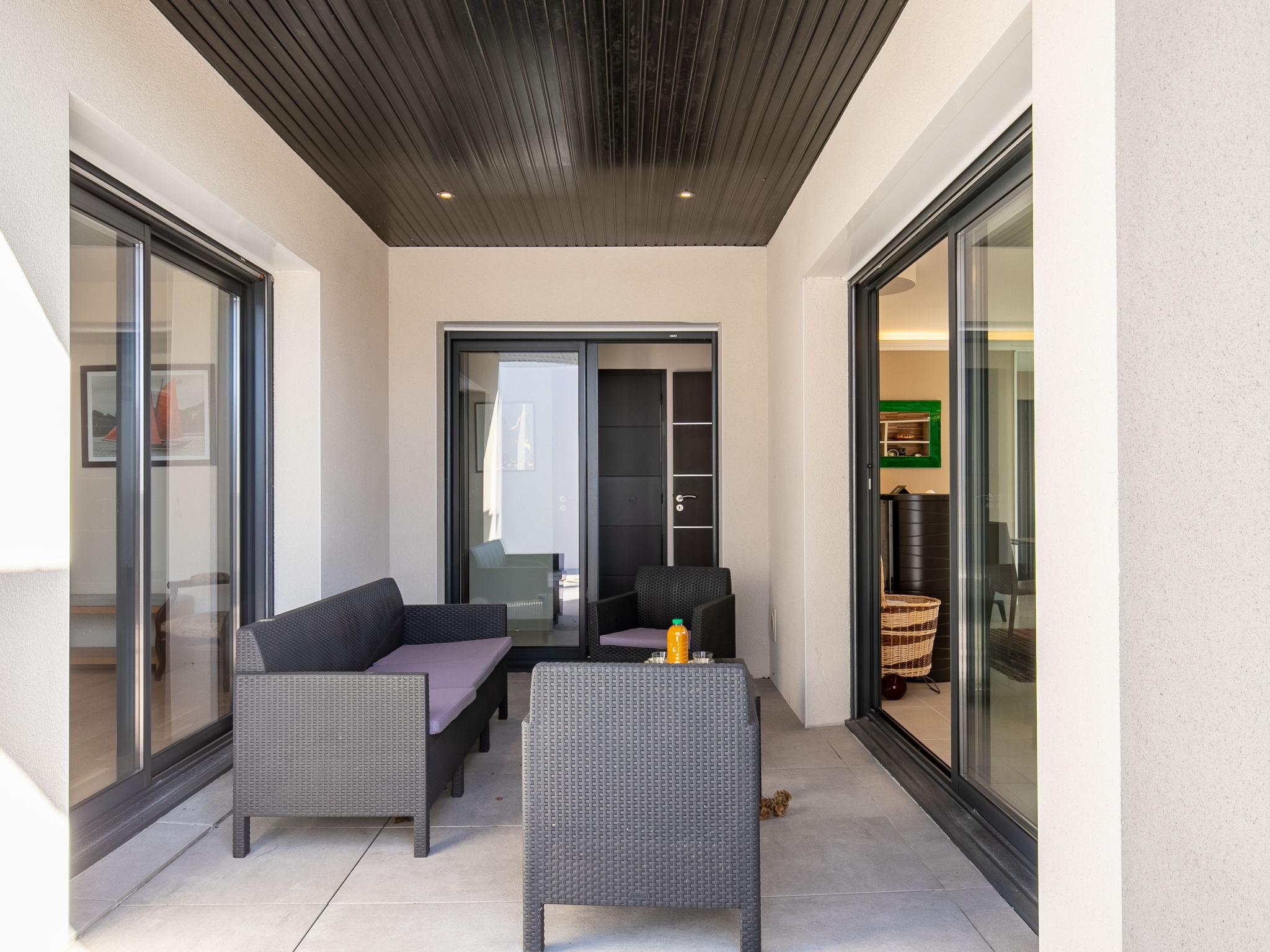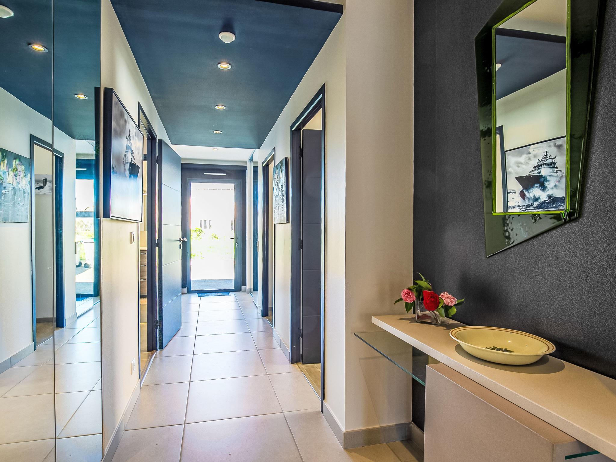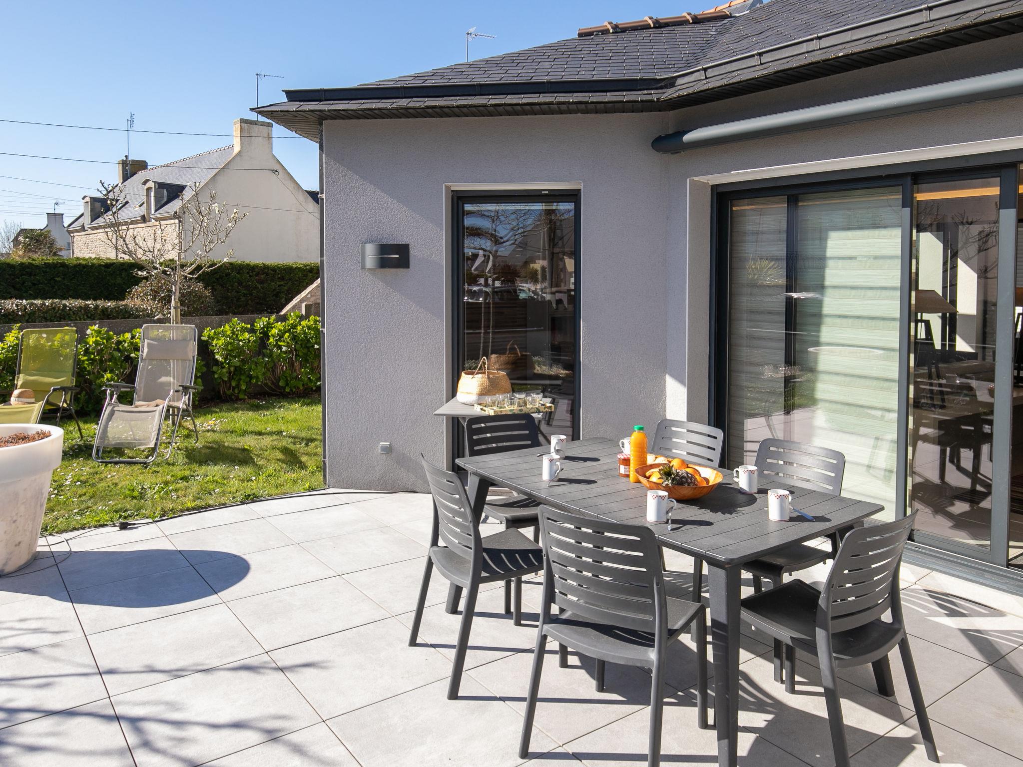 Modern house "Ty Pleine", built in 2016. 800 m from the centre of Le Guilvinec, 5 km from the centre of Penmarch, 13 km from the centre of Pont l'Abbé, in the residential district, 300 m from the sea, from the beach. Private: property 600 m2, well-kept garden with lawn. Outdoor shower. Storeroom available. Parking (for 2 cars) on the premises. Shop 800 m, bus stop 2 km, sandy beach "Greve Blanche" 300 m. Sailing school 1 km. Nearby attractions: Phare d'Eckmühl 8 km, pointe de la Torche 9 km.