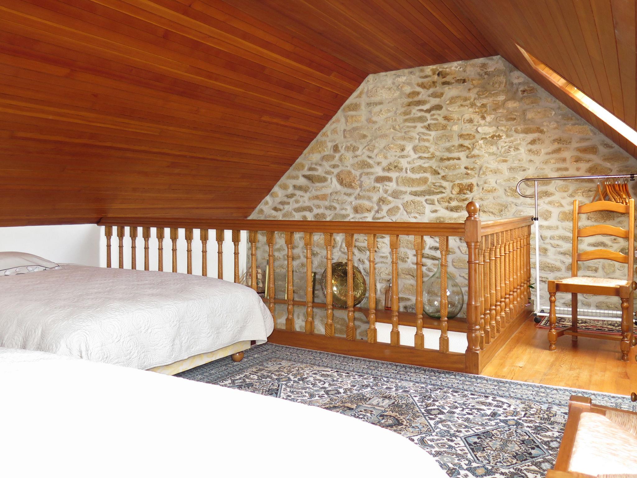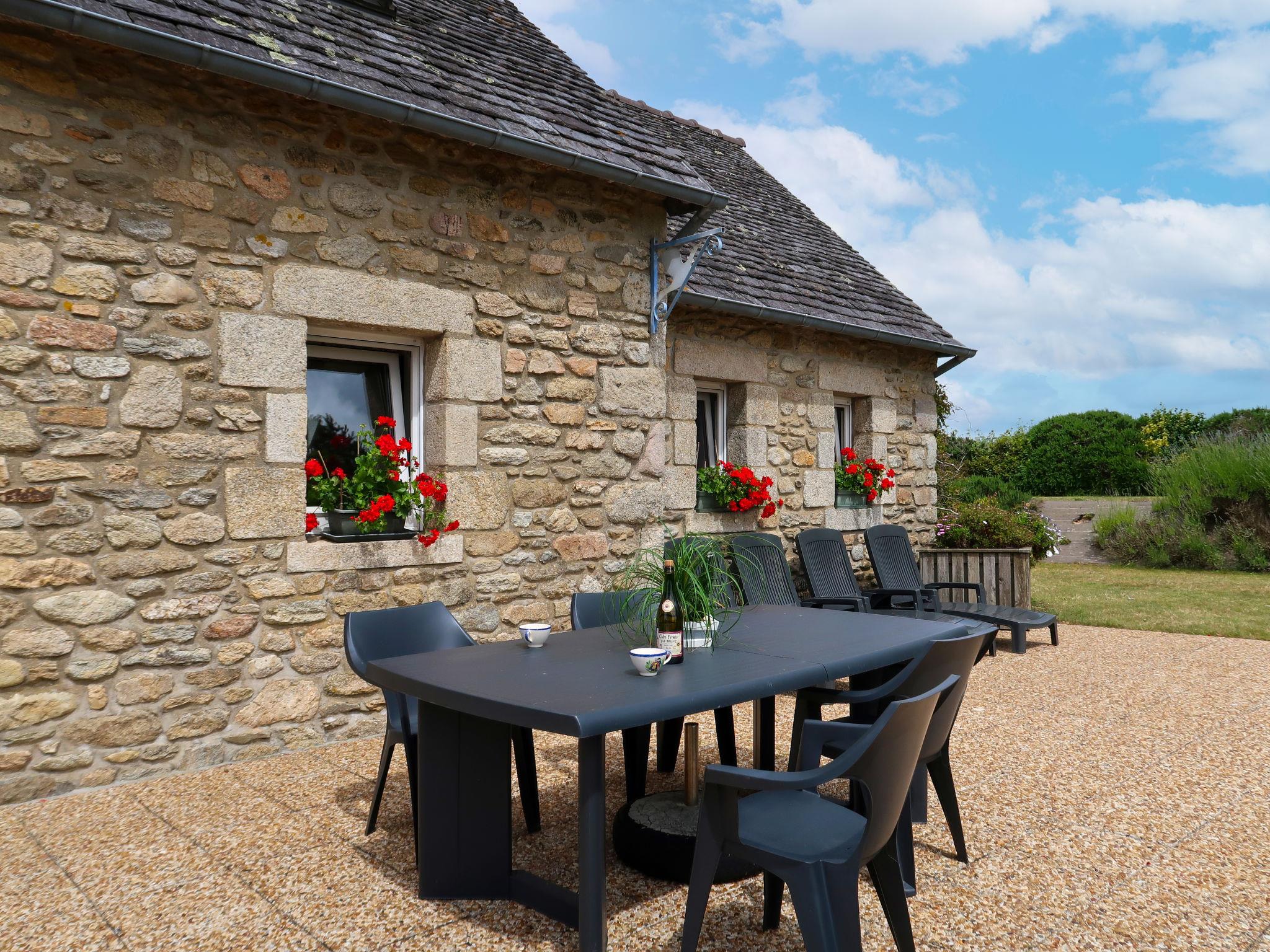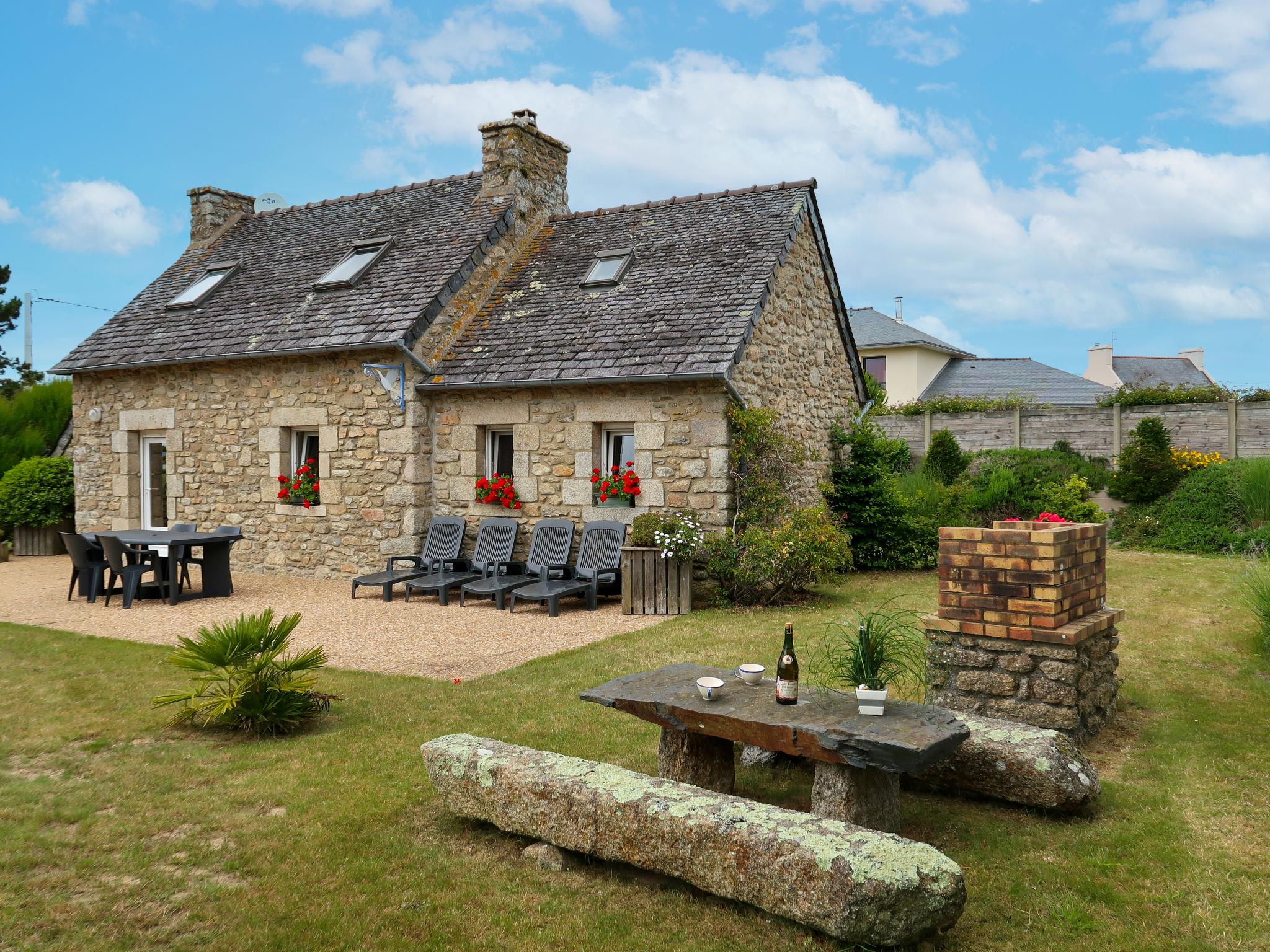 "Ty Coz", 2-room house 75 m2 on 2 levels. Rustic and cosy furnishings: living/dining room with open-hearth fireplace, dining table and satellite TV. 1 room with 1 french bed (140 cm, length 190 cm). Open kitchen (oven, dishwasher, 4 gas rings, toaster, kettle, microwave, electric coffee machine). Shower/WC. Electric heating. Upper floor: open gallery with sloping ceilings with 1 french bed (140 cm, length 190 cm). Parquet floors. Terrace, south facing position. Terrace furniture, barbecue, deck chairs (4). Facilities: washing machine, iron. Please note: non-smoking house. Maximum 1 pet/ dog allowed. Smoke alarm. Instead of an enclosed bedroom, some sleeping areas are located in an open-plan area (gallery, alcove, etc.).