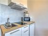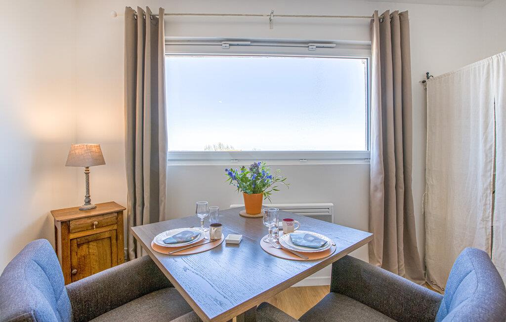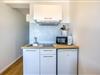 Denne charmerende ferielejlighed er noget særligt med sin funktionelle indretning og venlige atmosfære. De lyse værelser med rene linjer og diskrete farver tilbyder en smuk ramme for afslappende ferier. Brug opholdsstuen til at læse eller slappe af og nyde dagens måltider ved det lille spisebord. Kig ud af vinduet og nyd den vidunderlige udsigt over byens tage helt ned til havet.